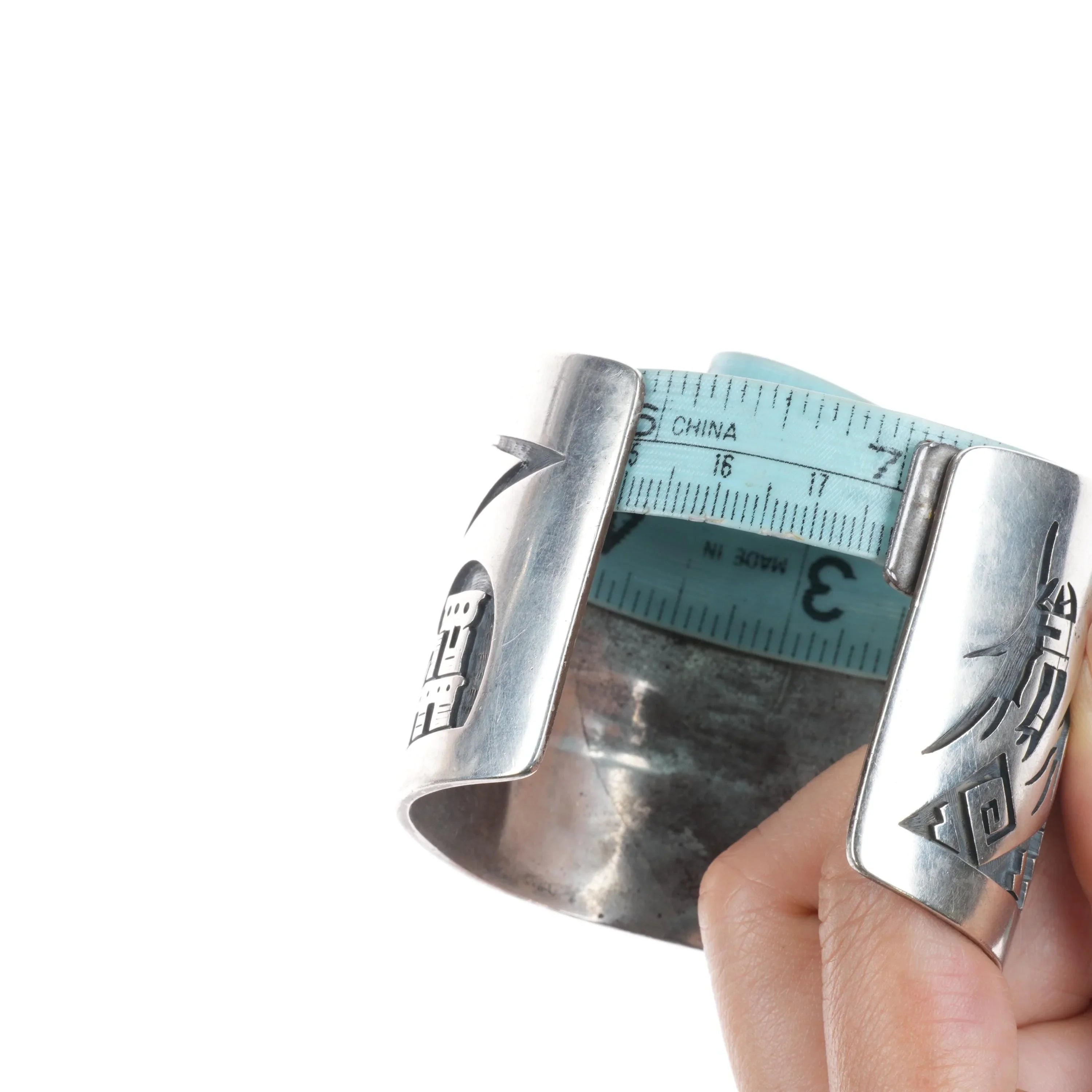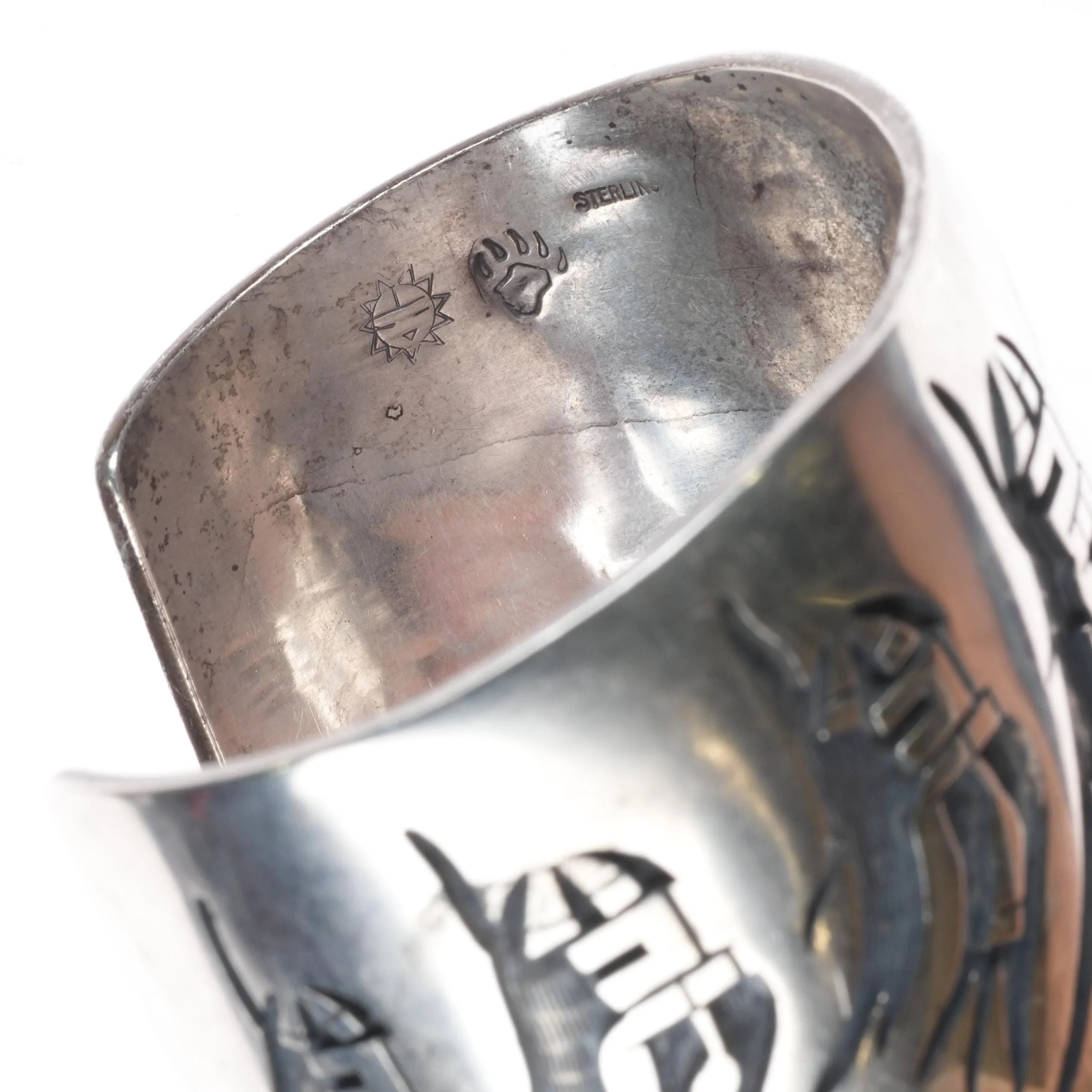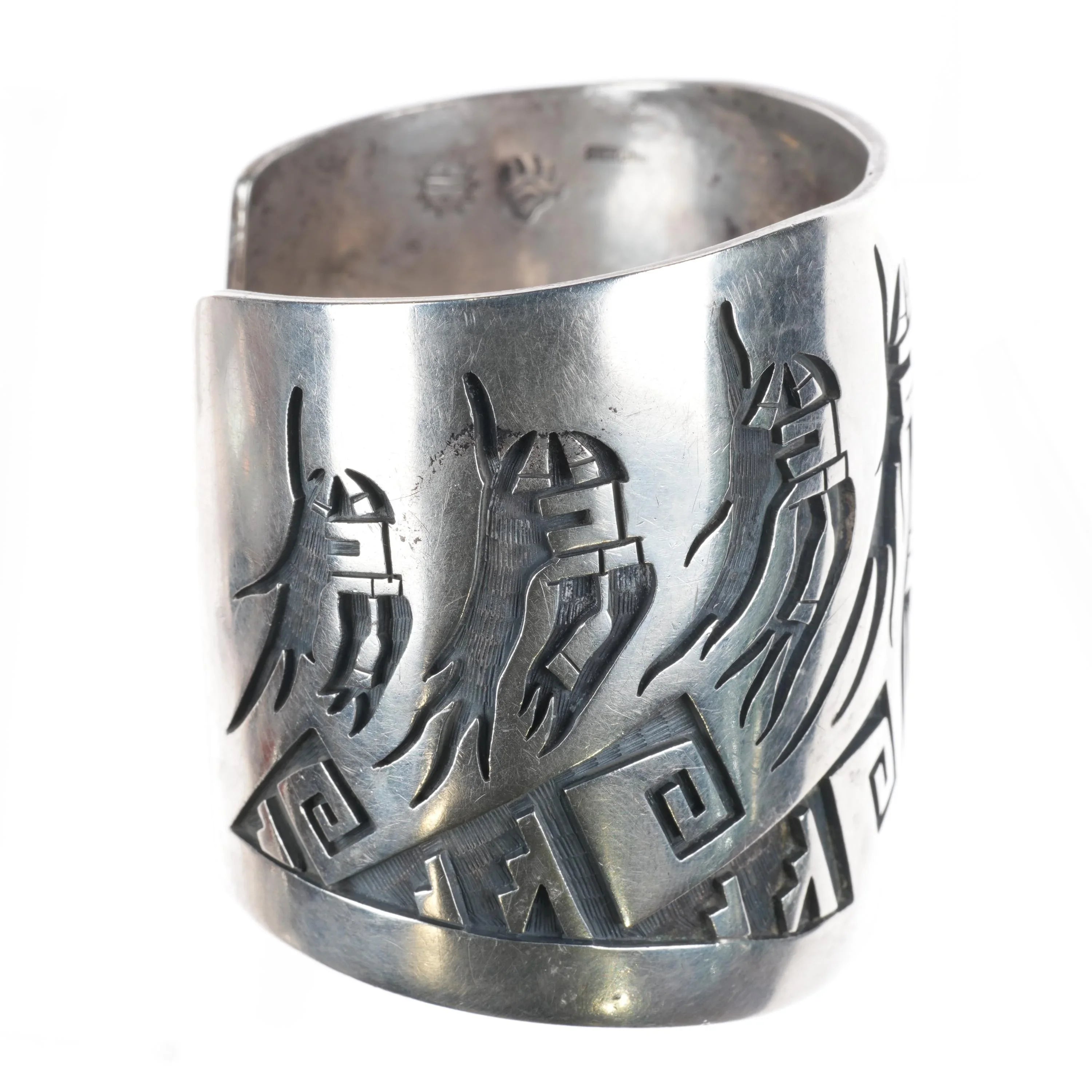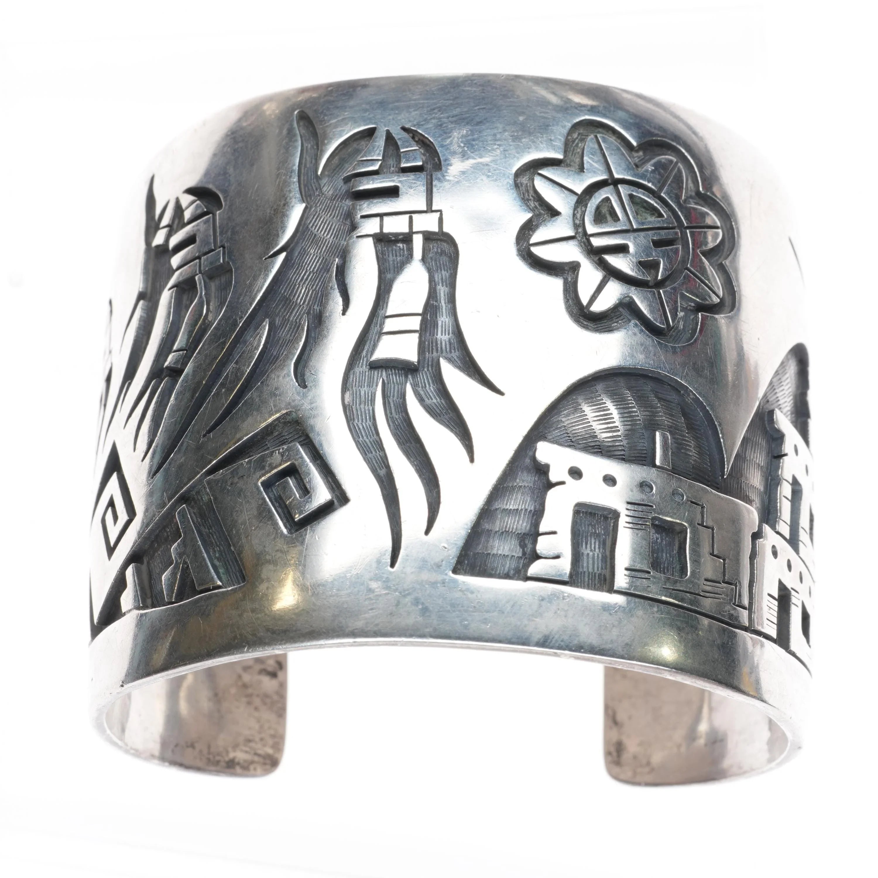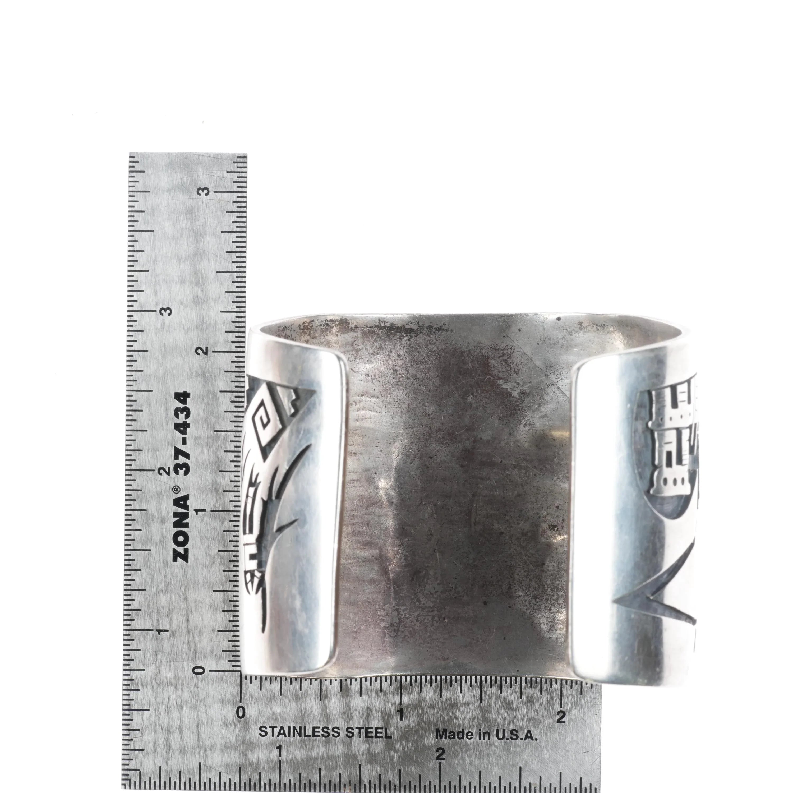 7" Large Hopi Silvercrafts Guild Overlay storyteller cuff bracelet sterling silver