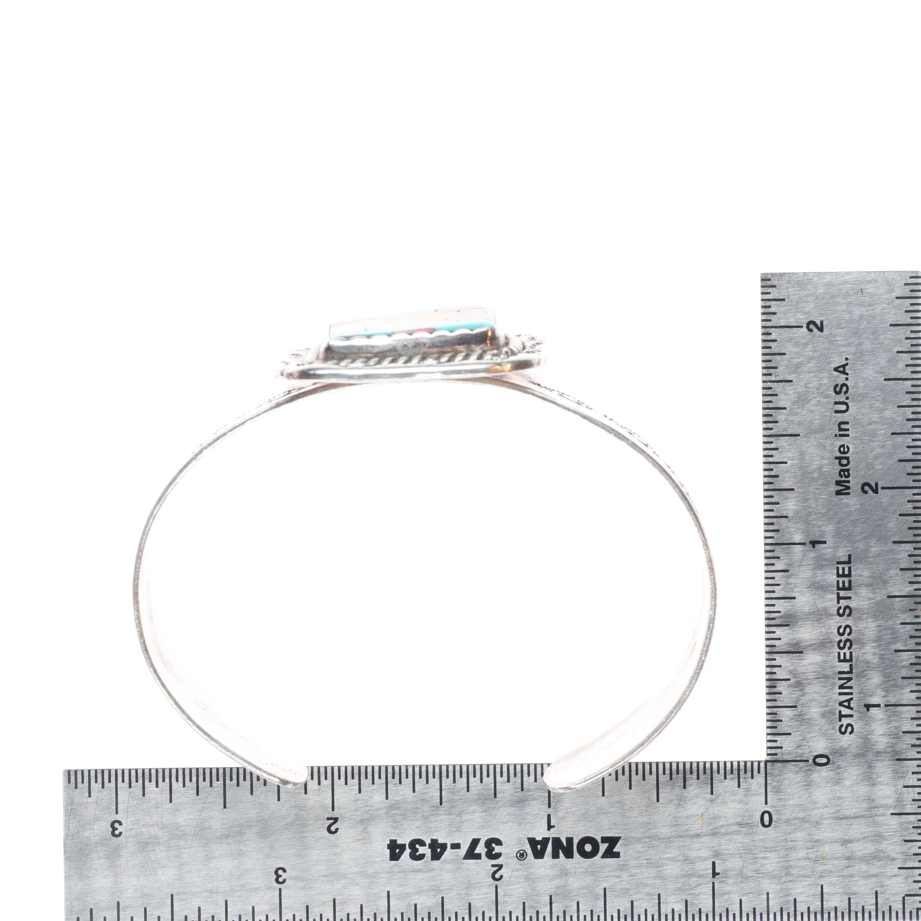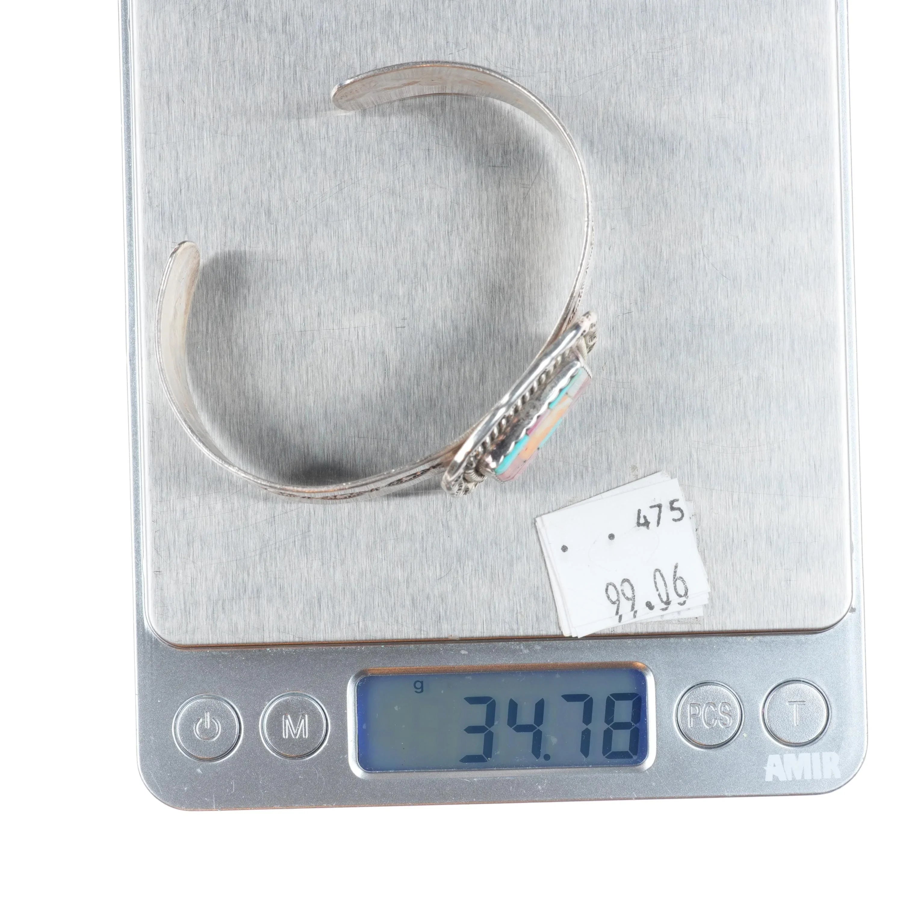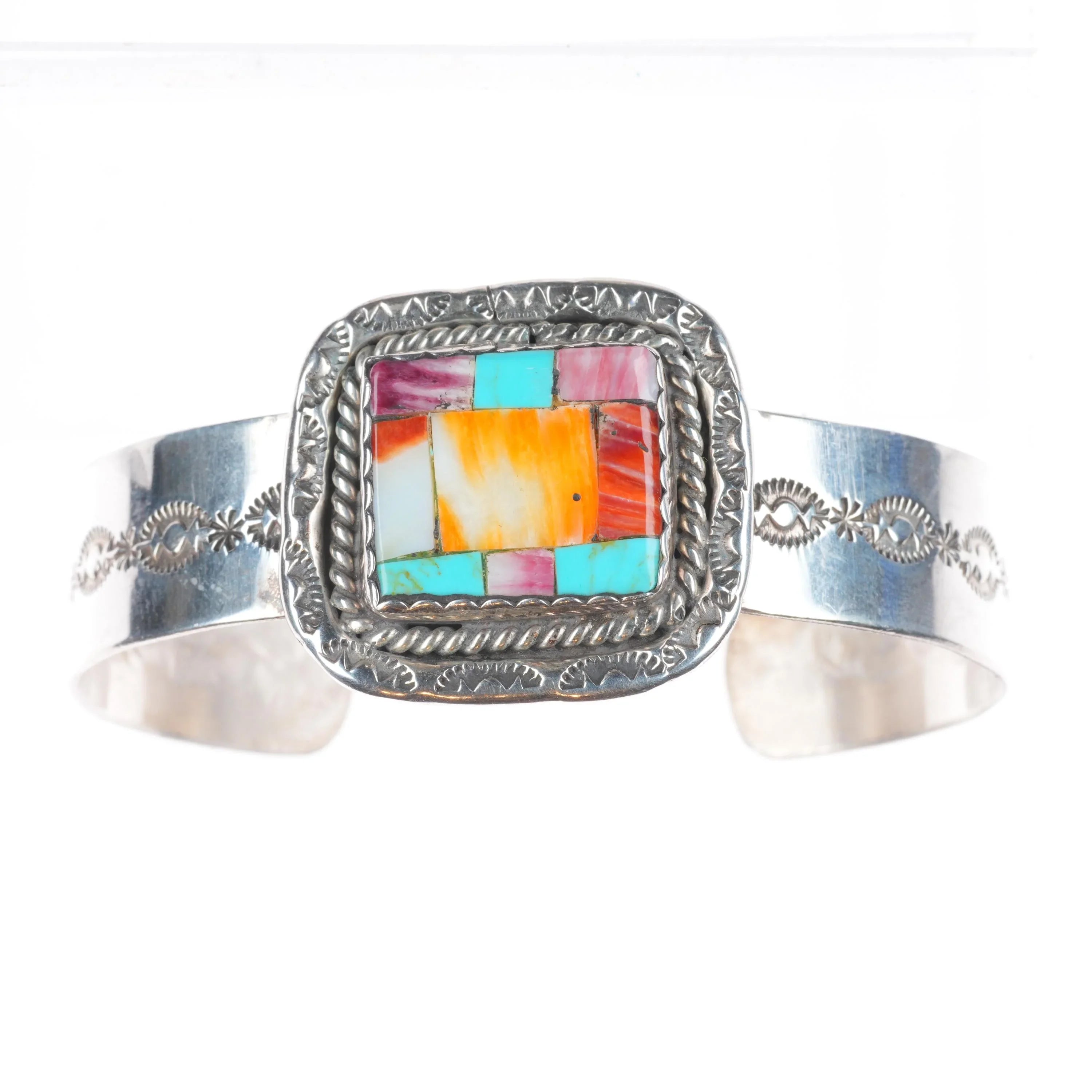 7" Osavio Crespin Santo Domingo sterling silver intarsia inlay cuff bracelet
