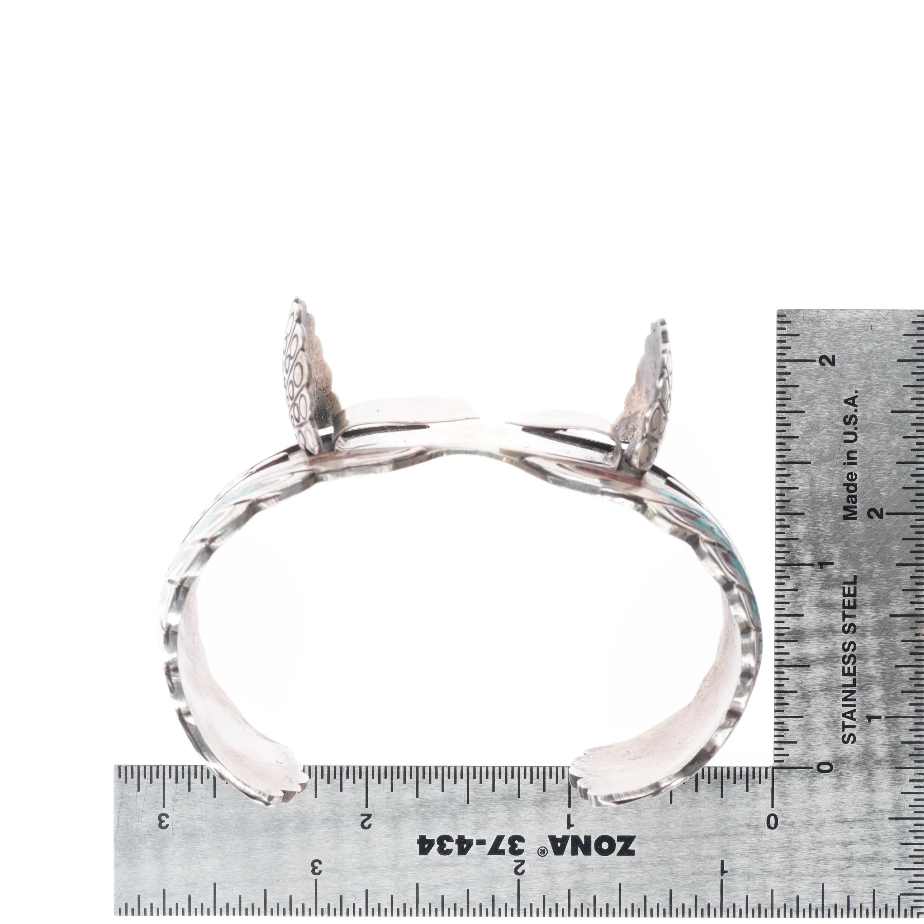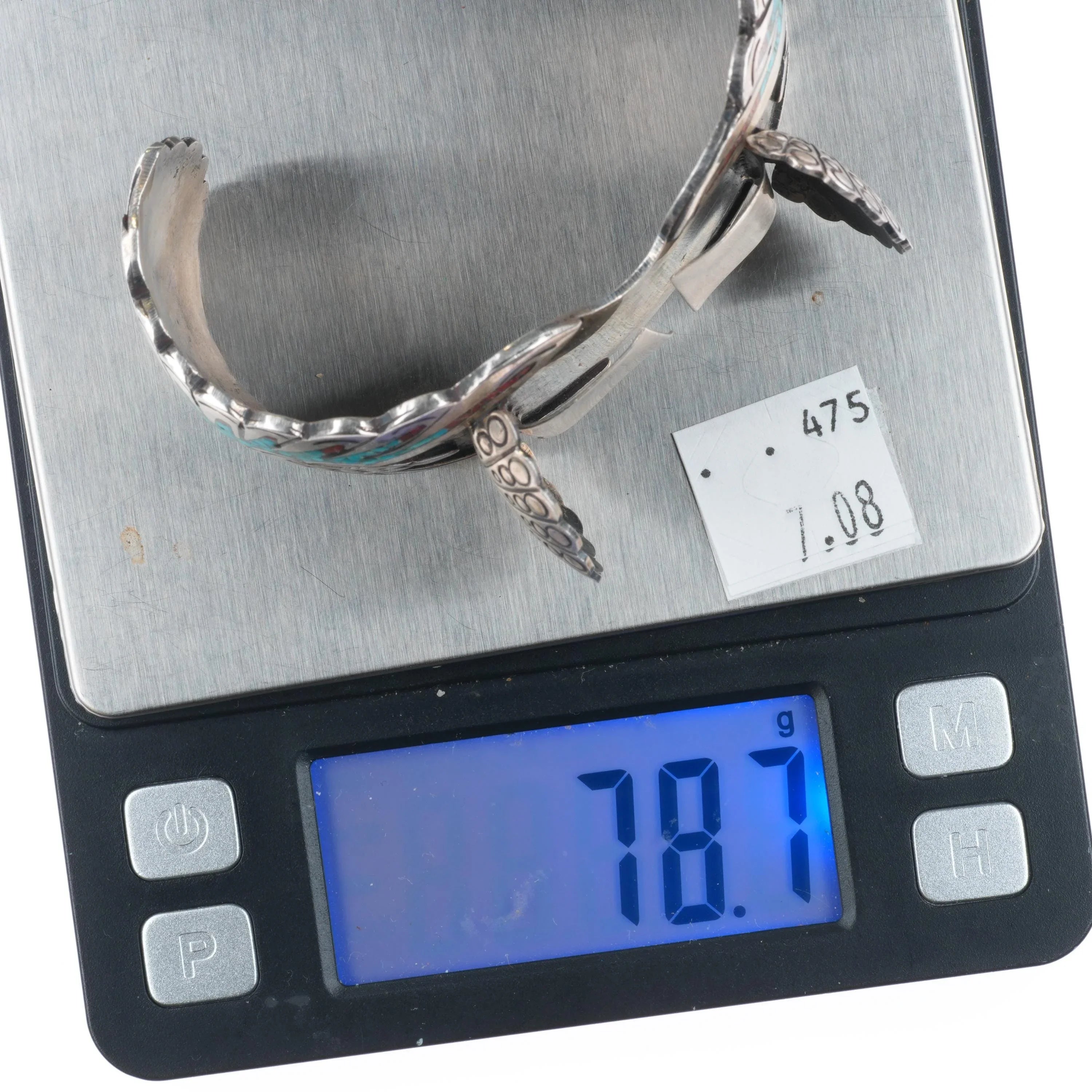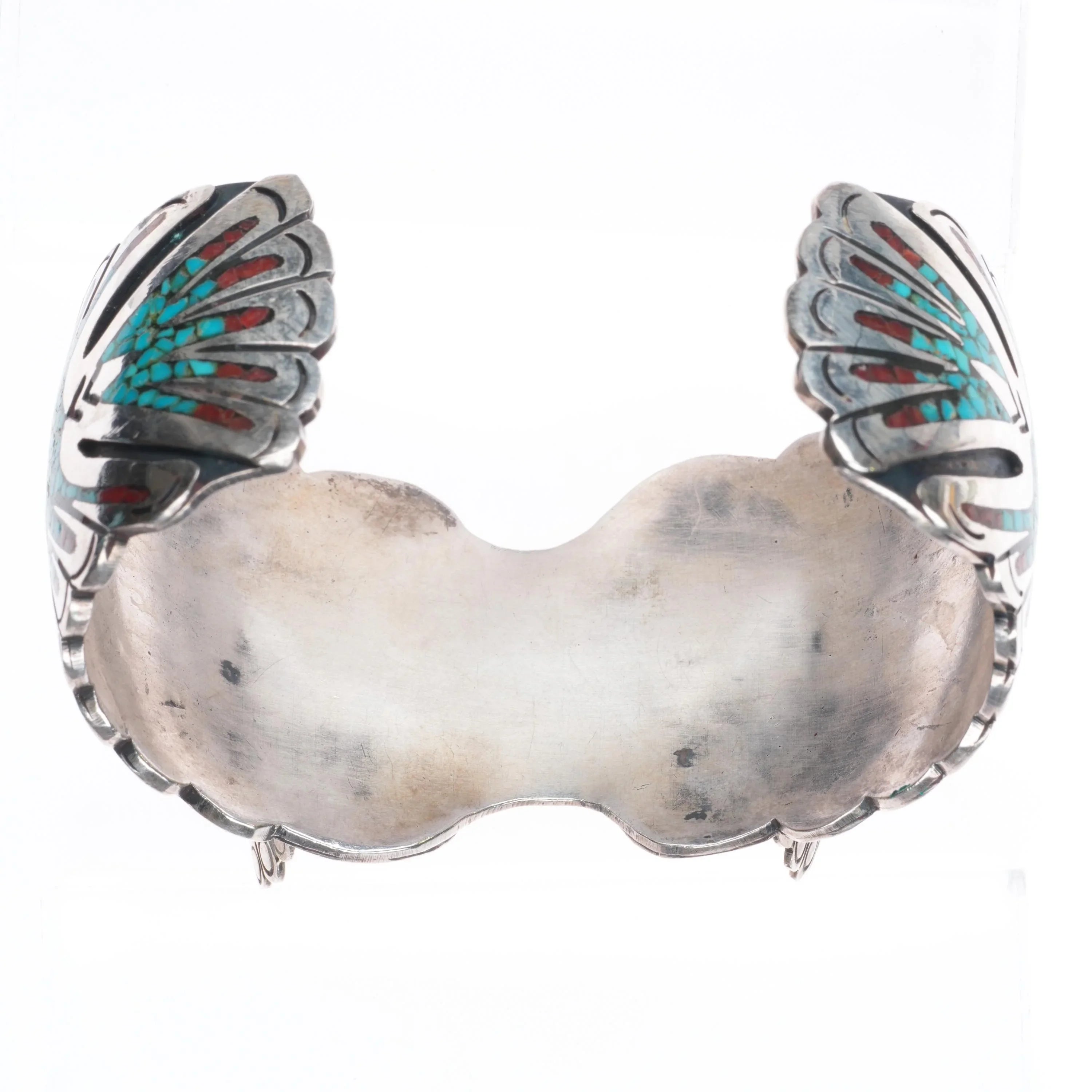7" Vintage Navajo sterling silver peyote bird chip inlay watch cuff bracelet