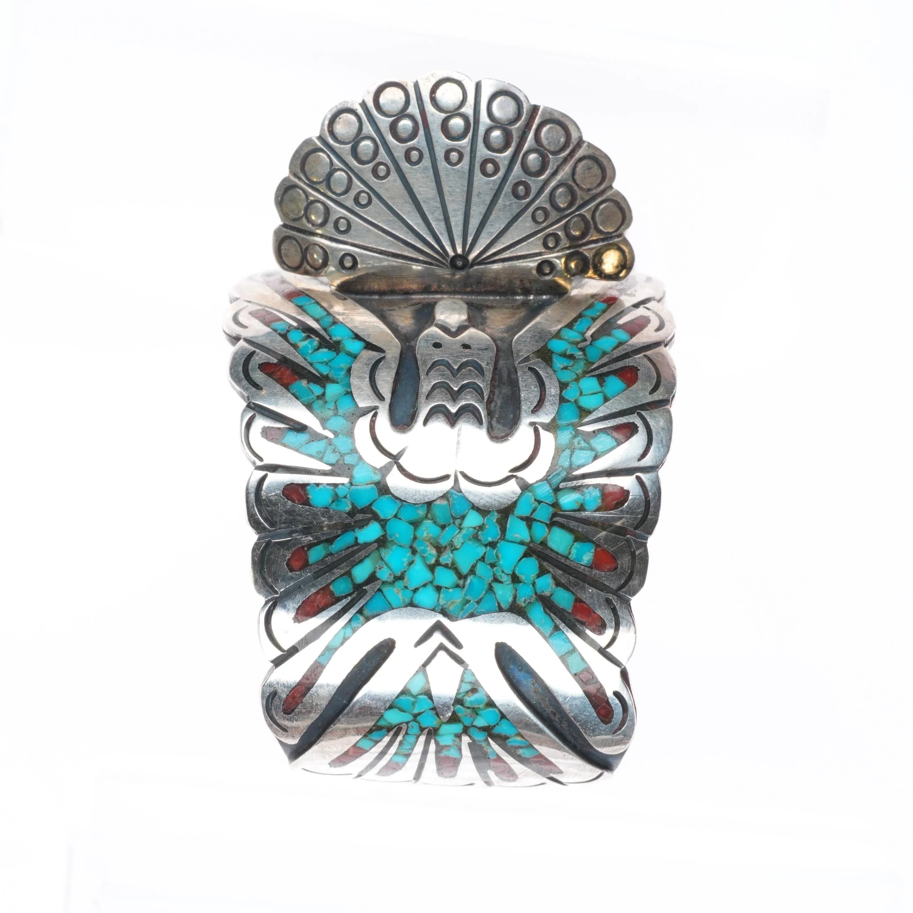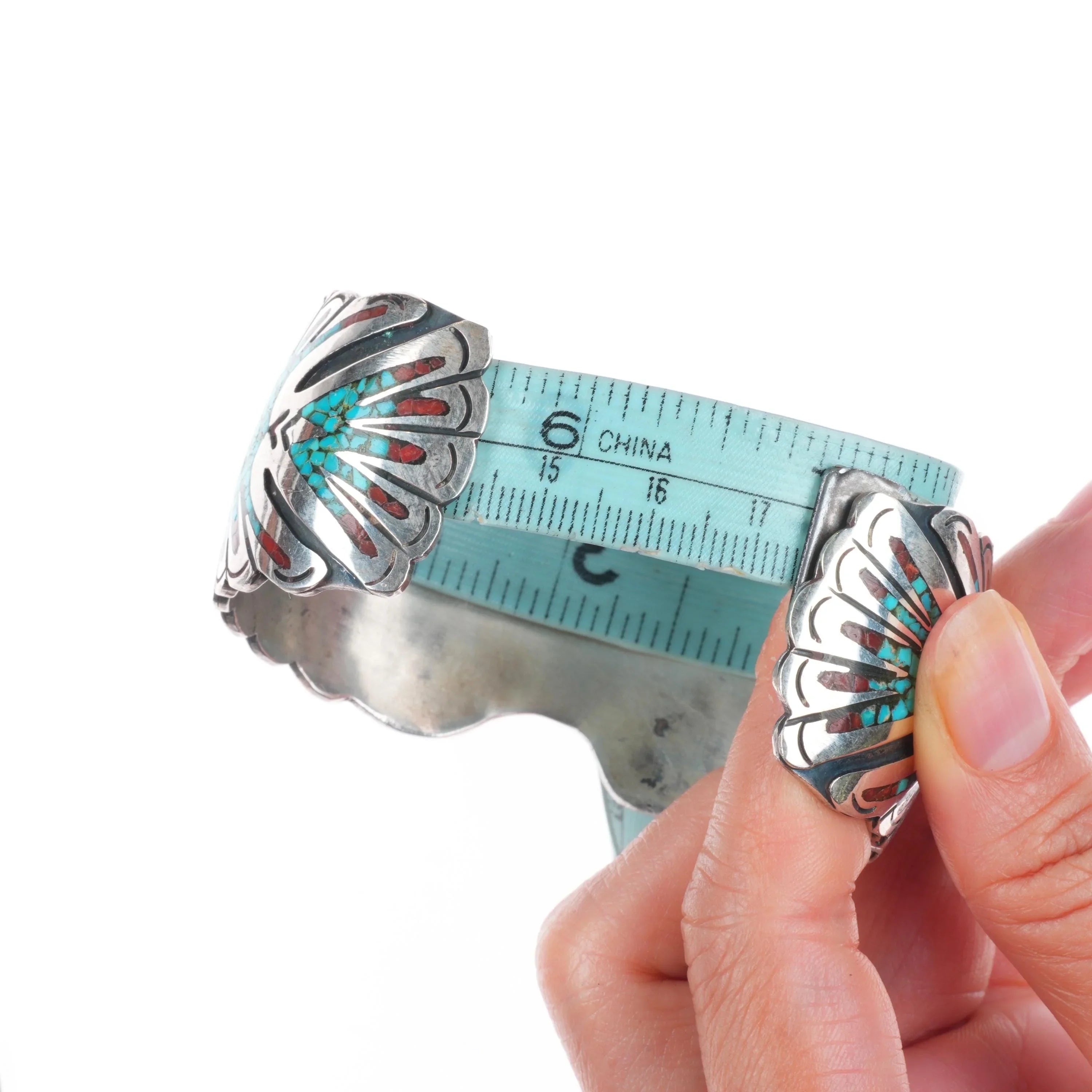 7 Vintage Navajo sterling silver peyote bird chip inlay watch cuff bracelet. Selling the watch bracelet shown, tested and guaranteed solid sterling silver. Weight and measurements in pictures. New old stock, approximately 50 years old and has never had a watch in it.