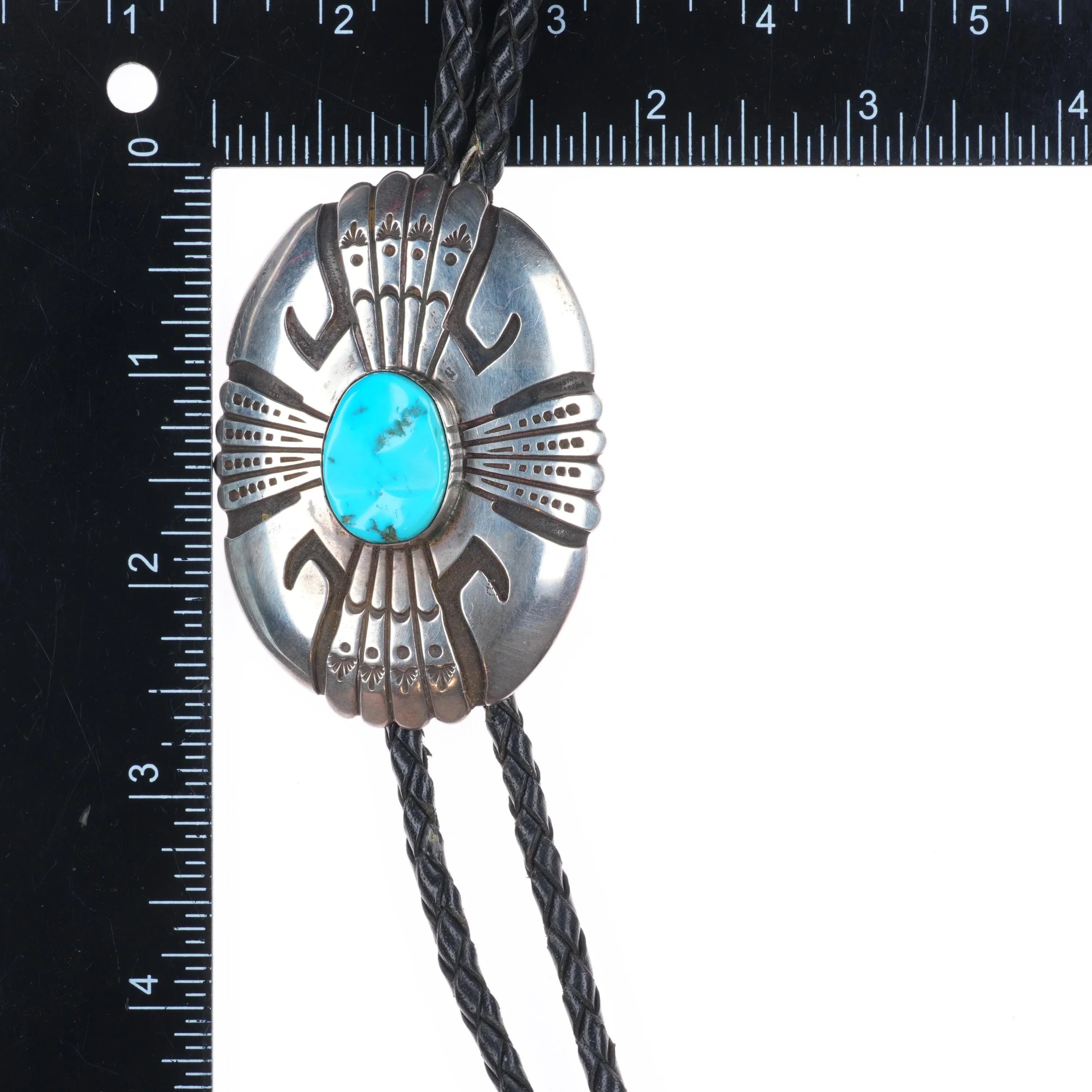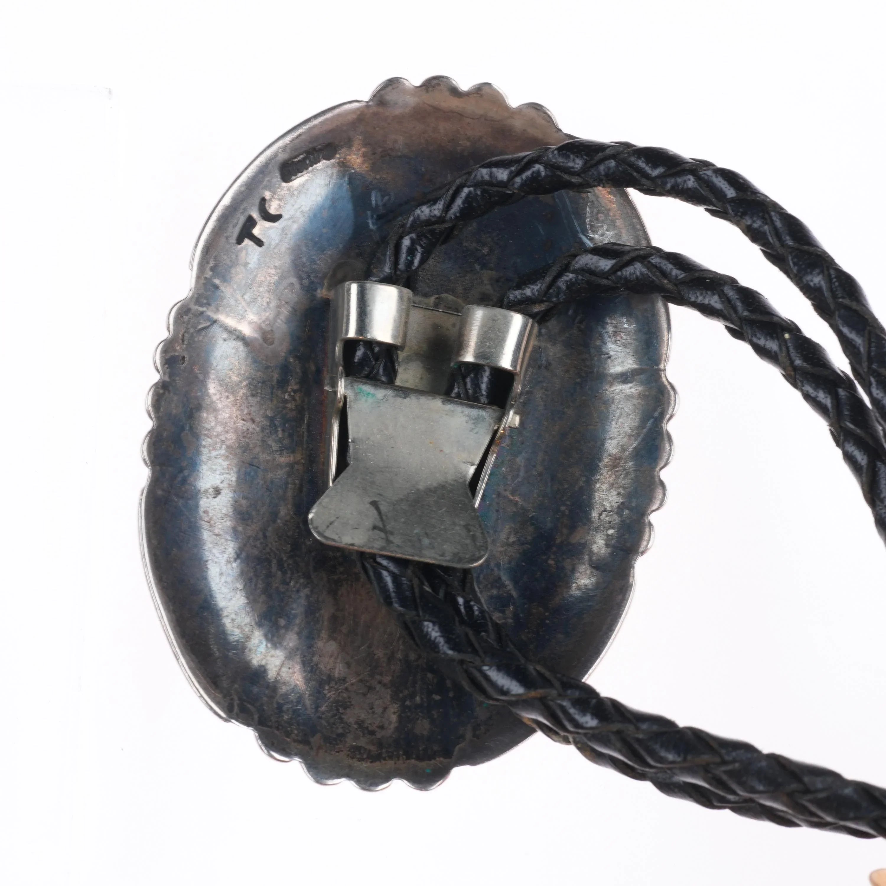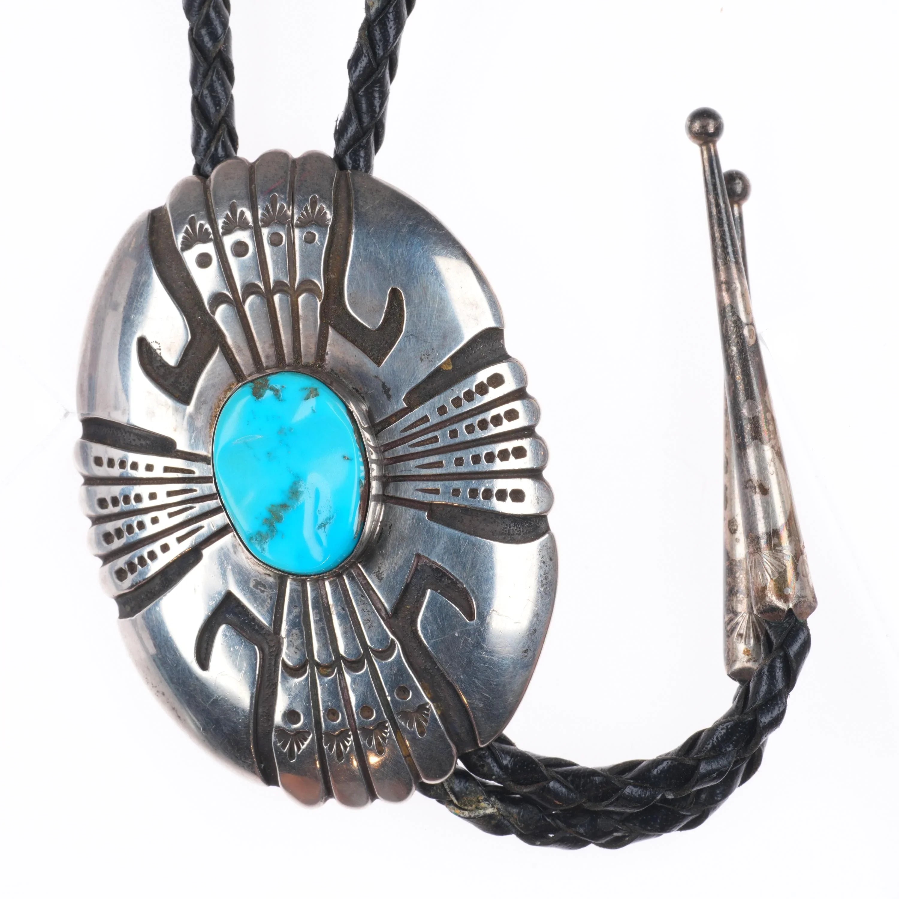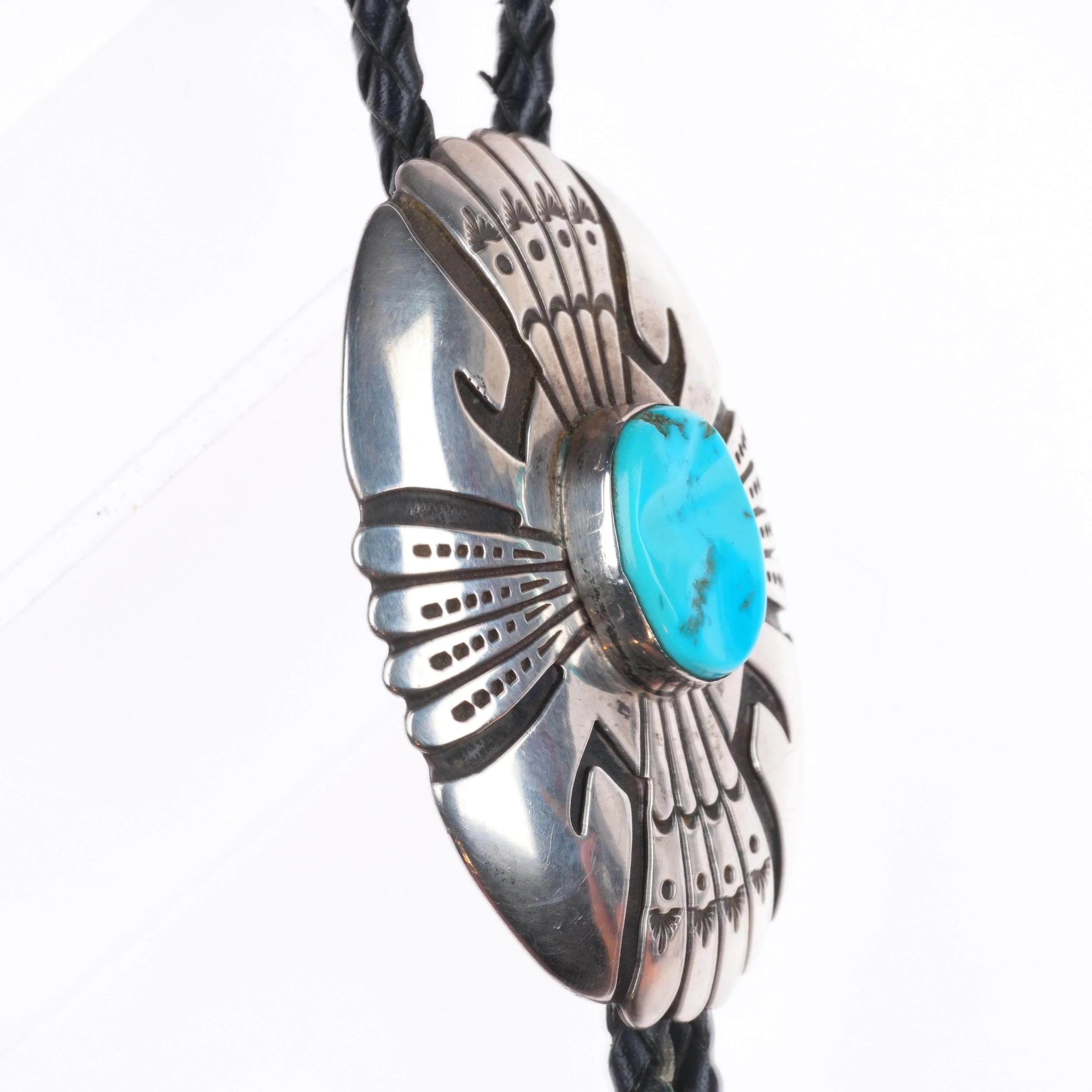70's-80's Tommy Singer Navajo sterling silver turquoise bolo tie overlay style