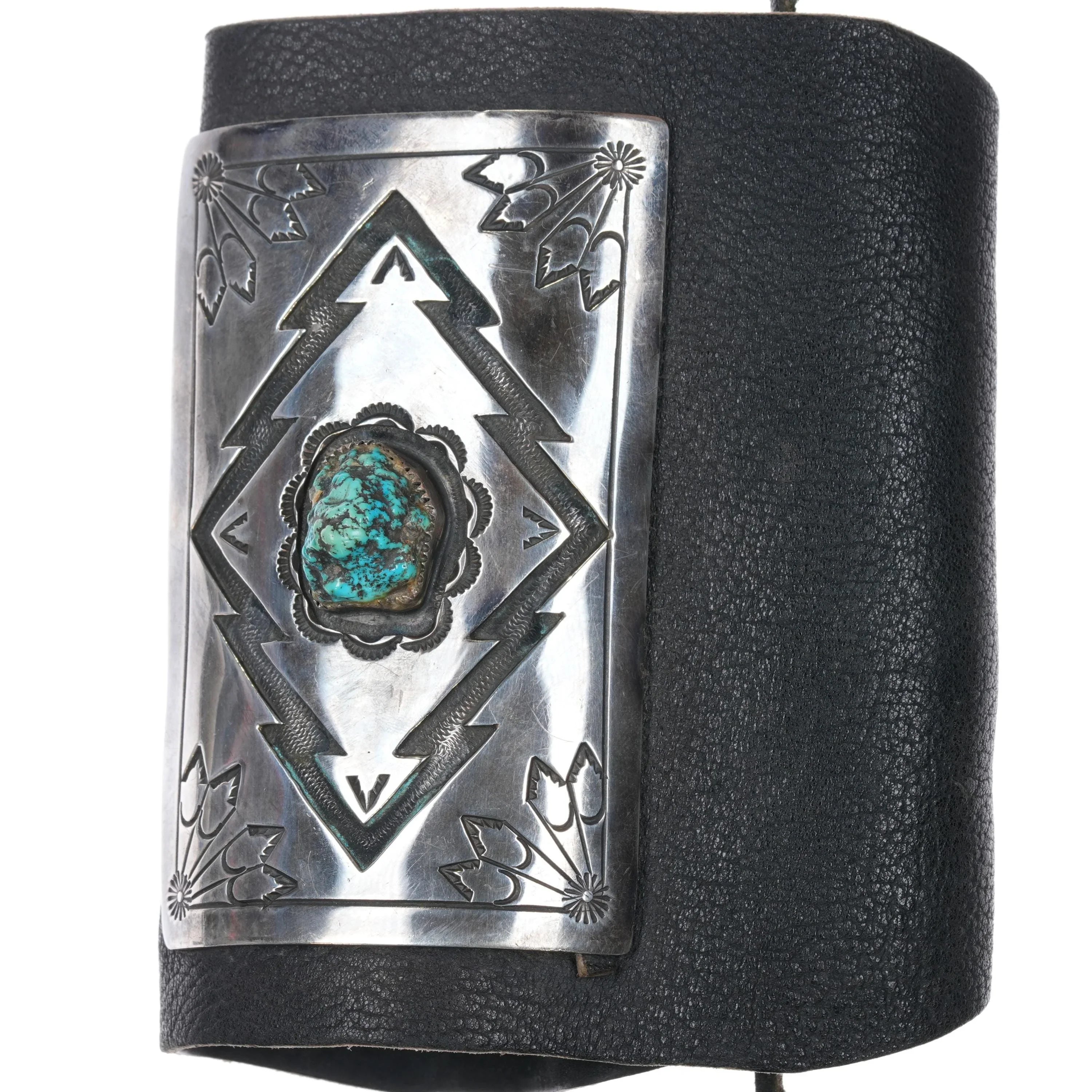 8" Heavy vintage Navajo sterling silver Ketoh bowguard bracelet. Weight and measurements in pictures, solid sterling silver. Very good condition with no damage or excessive wear. No apparent artist hallmarks, though I did not remove it from the leather.