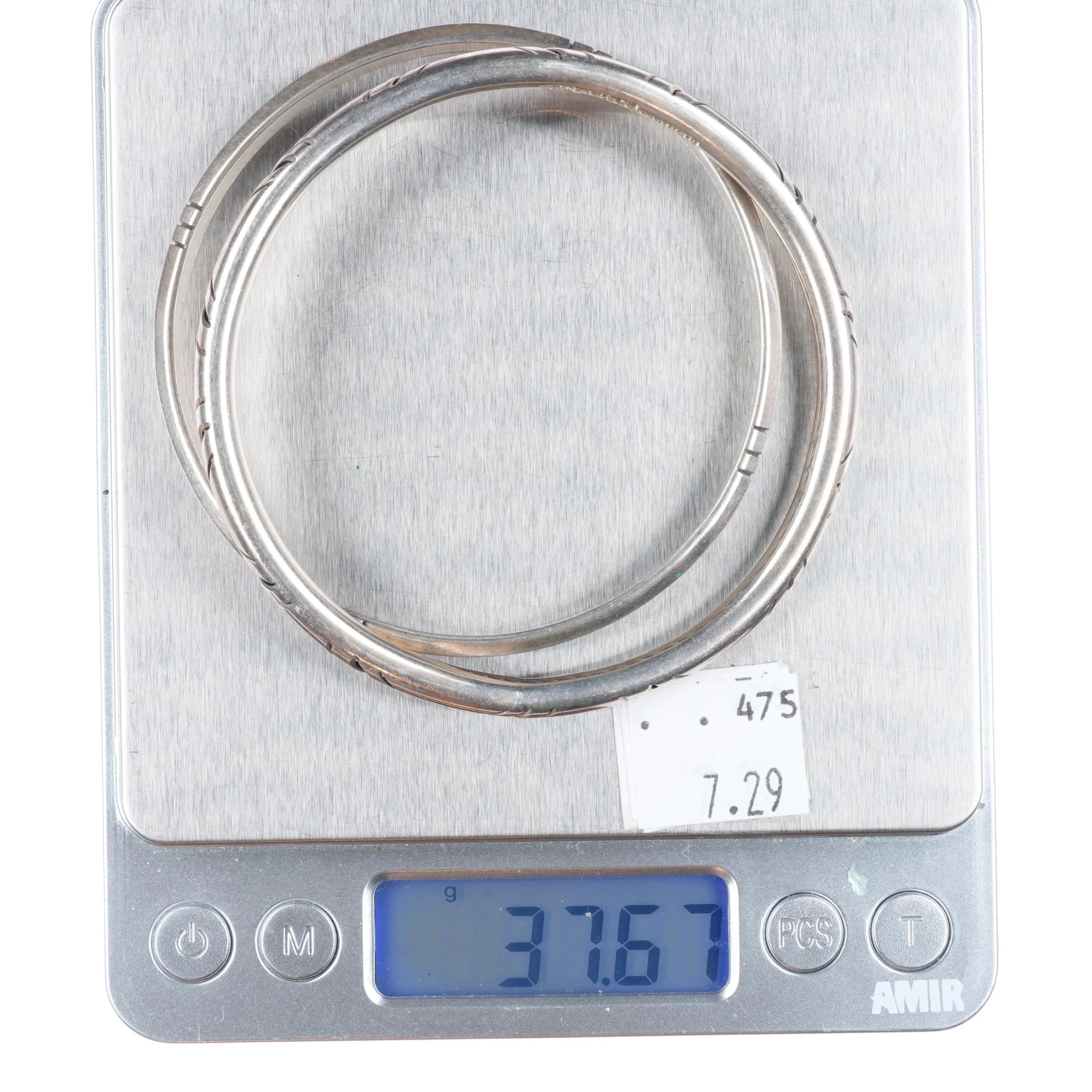 8" Tahe Navajo & Mexican sterling silver retro bangle bracelets