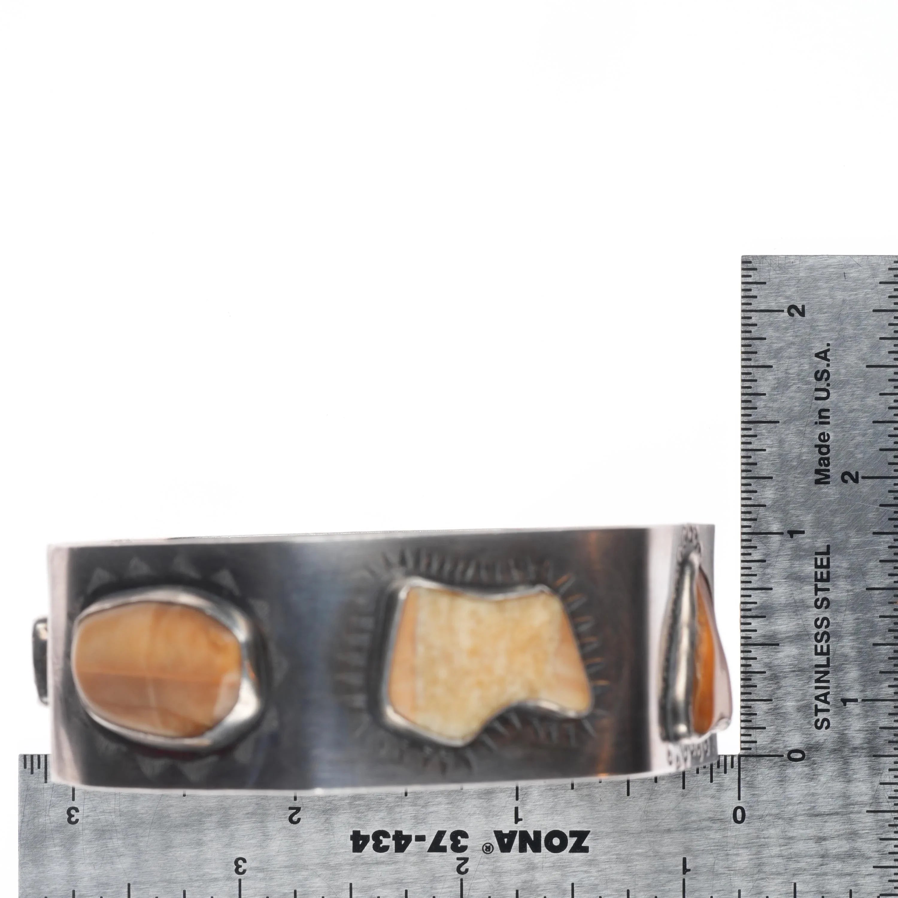 8" TH Southwestern sterling silver fossil/petrified bone/jasper bangle bracelet