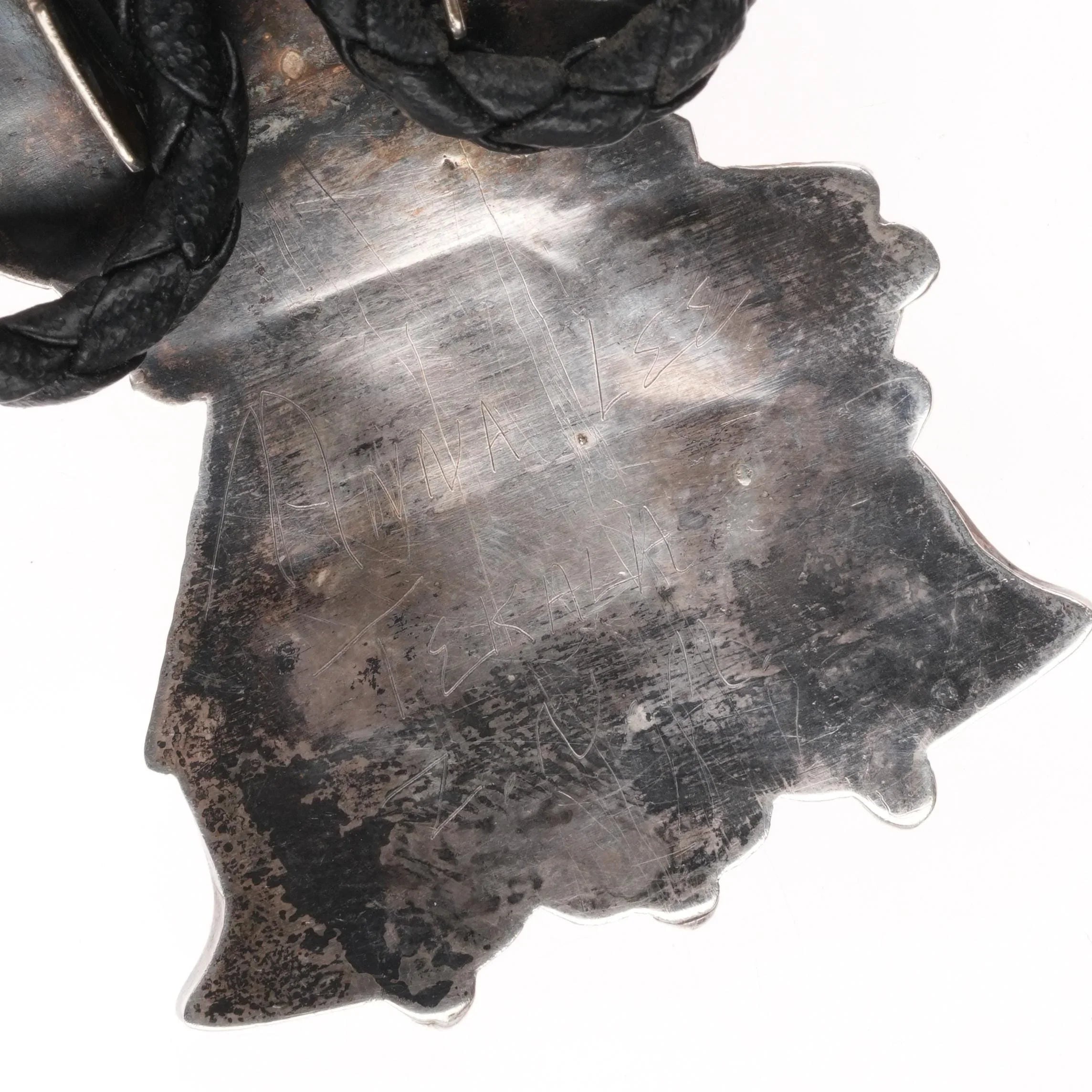 Anna Tekala Zuni sterling silver inlaid knifewing bolo tie turquoise/coral/shell. Solid sterling silver (tested), slide and tips. Weight and measurements in pictures. Great bolo with no issues. 36" long. Signed on the back by the Artist.
