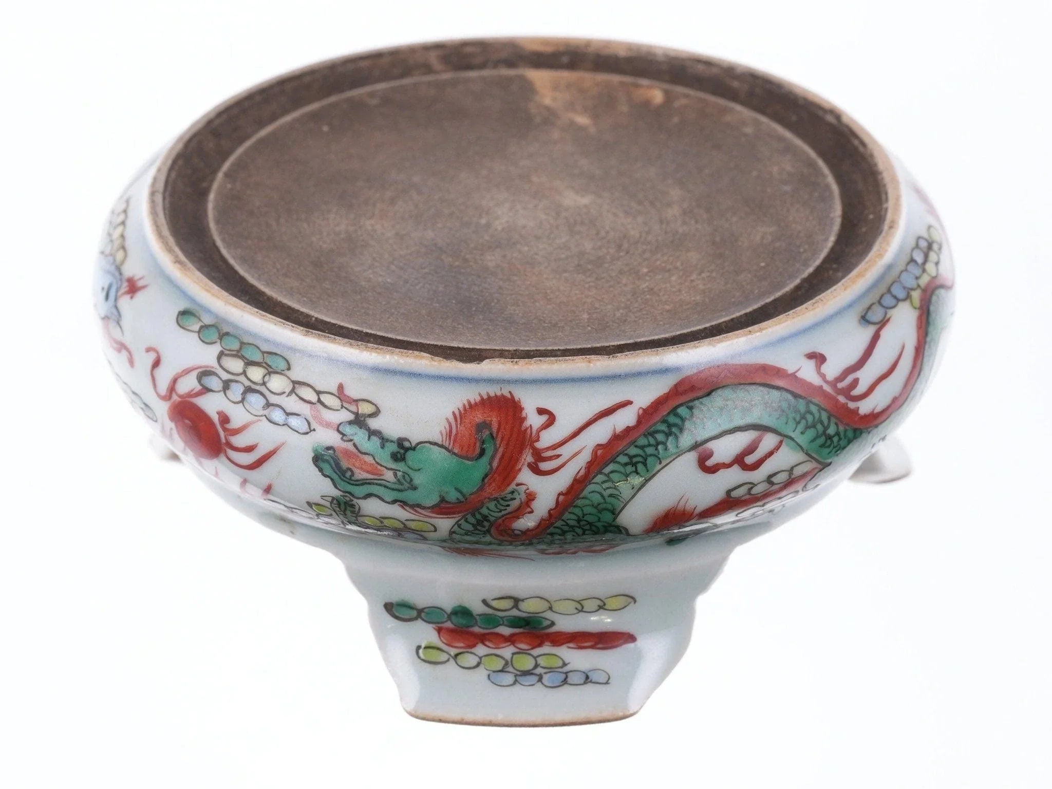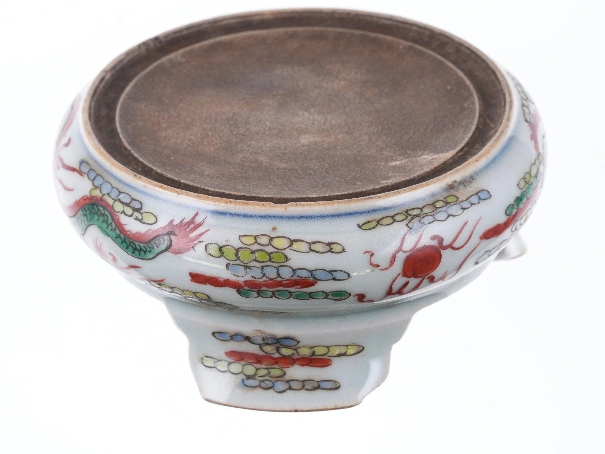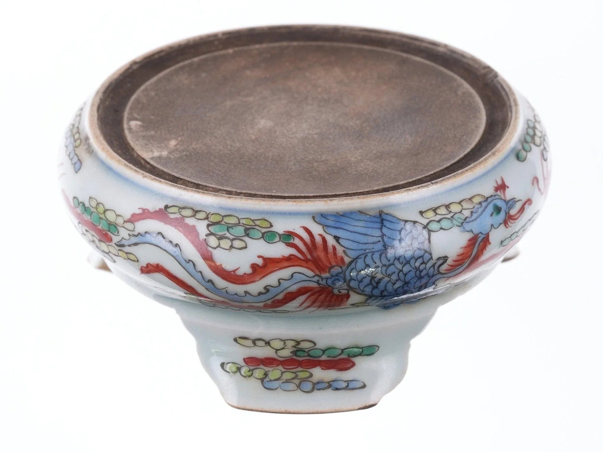 Antique Chinese Wucai Famille rose ink stand 5" wide x 2.25" tall, a few very<br>small nicks to inside of top rim, no other chips, cracks, or restorations.<br>chinadrawer
