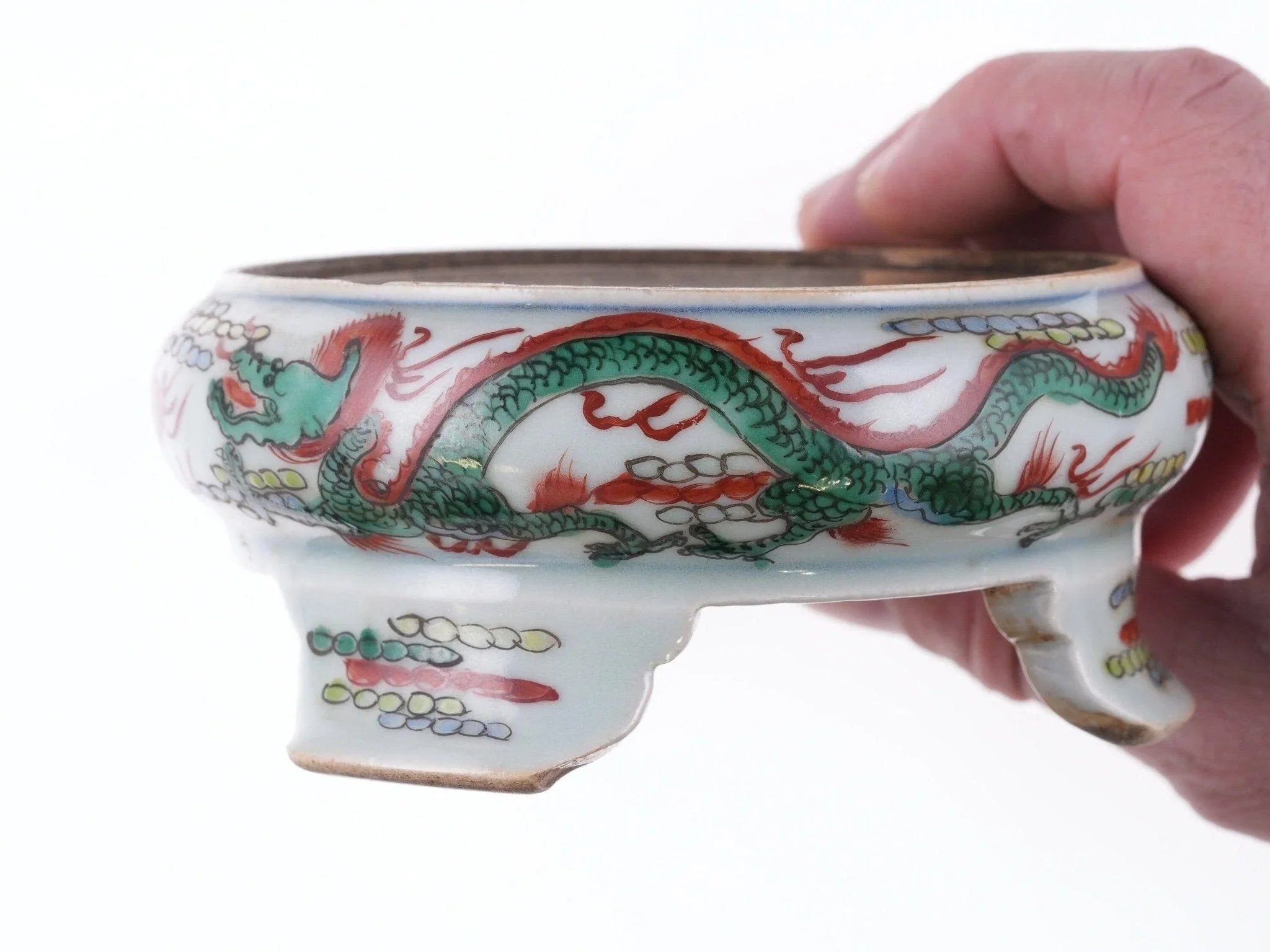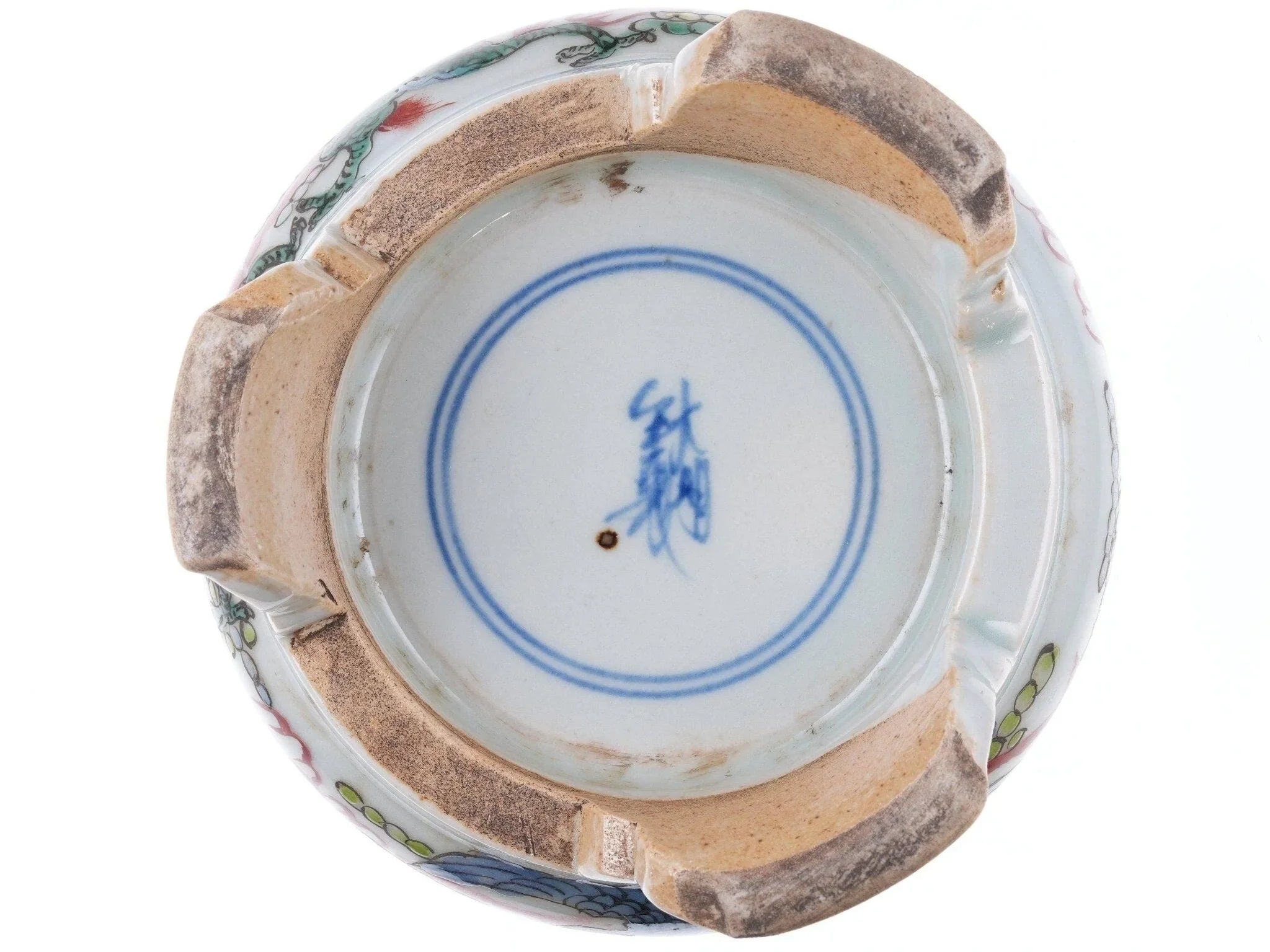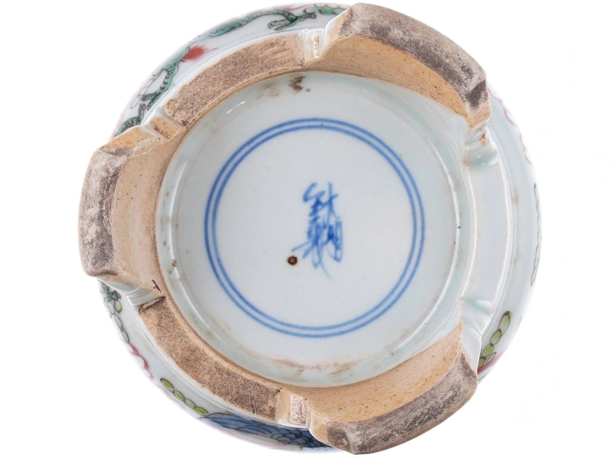 Antique Chinese Wucai Famille rose ink stand 5" wide x 2.25" tall, a few very<br>small nicks to inside of top rim, no other chips, cracks, or restorations.<br>chinadrawer