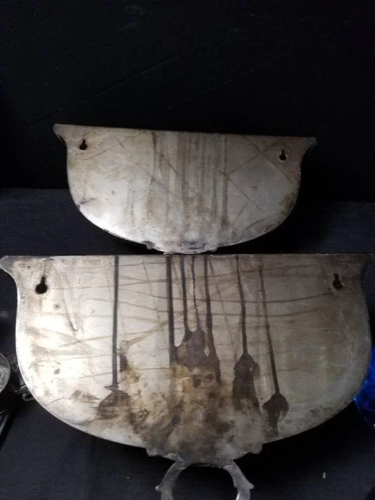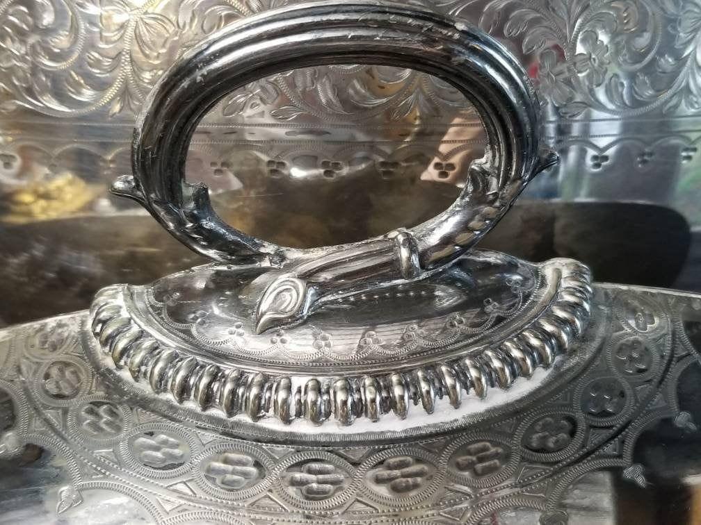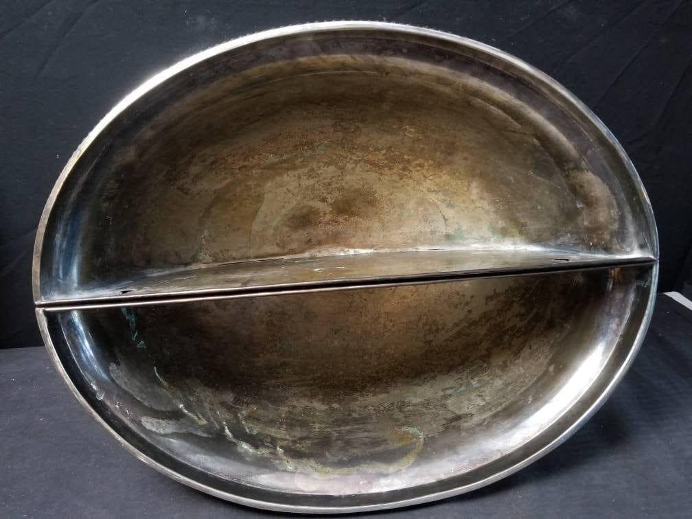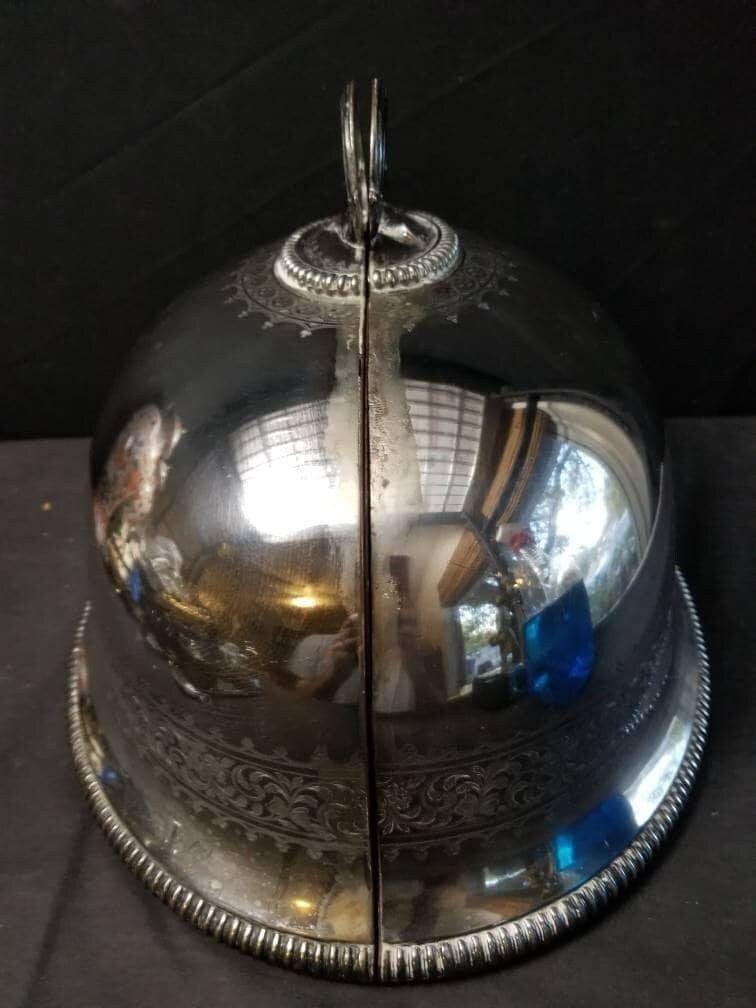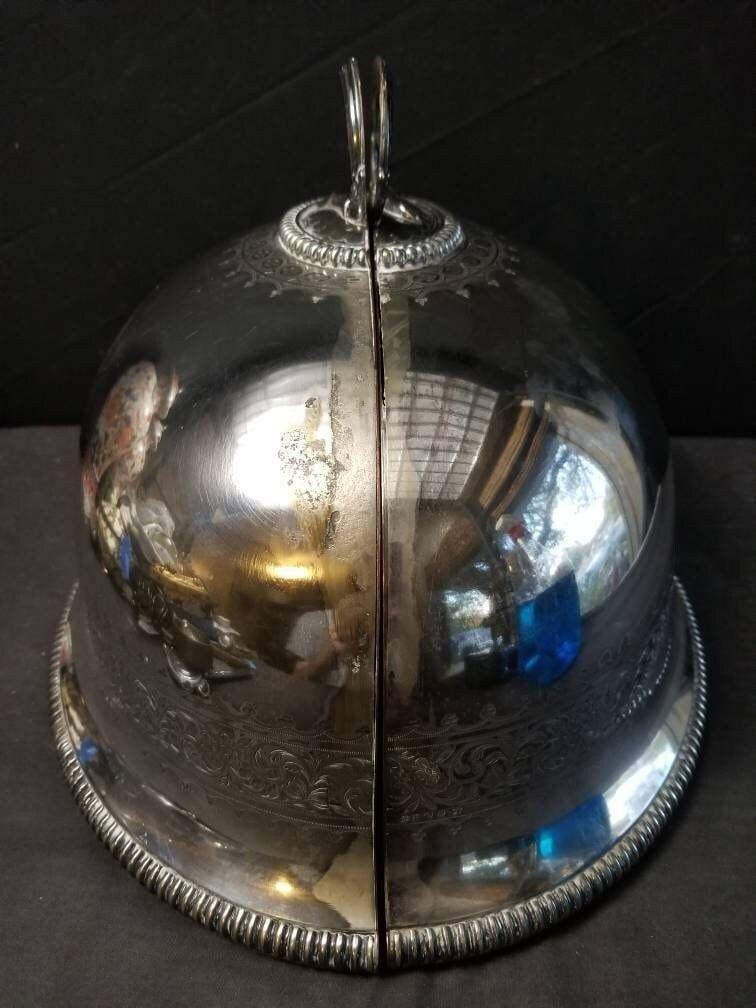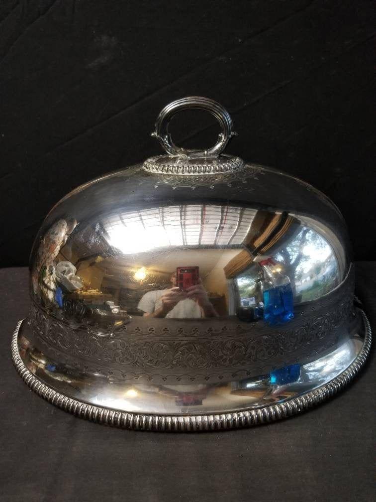 Armorial Silver Mitchell Crest Deo Favente Silverplate Wall Sconces made from antique Dome.  These measure 14 3/8" wide at rim x 9" tall x 6" deep each.  They were made from a 150-200 year old meat dome by someone other than me quite awhile back, even the back is Silverplate copper.  I don't believe they'll hold water. The one with the crest has the hallmark.