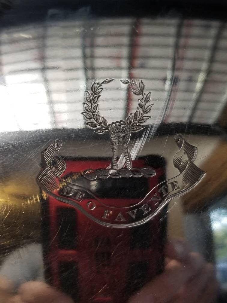 Armorial Silver Mitchell Crest Deo Favente Silverplate Wall Sconces made from an