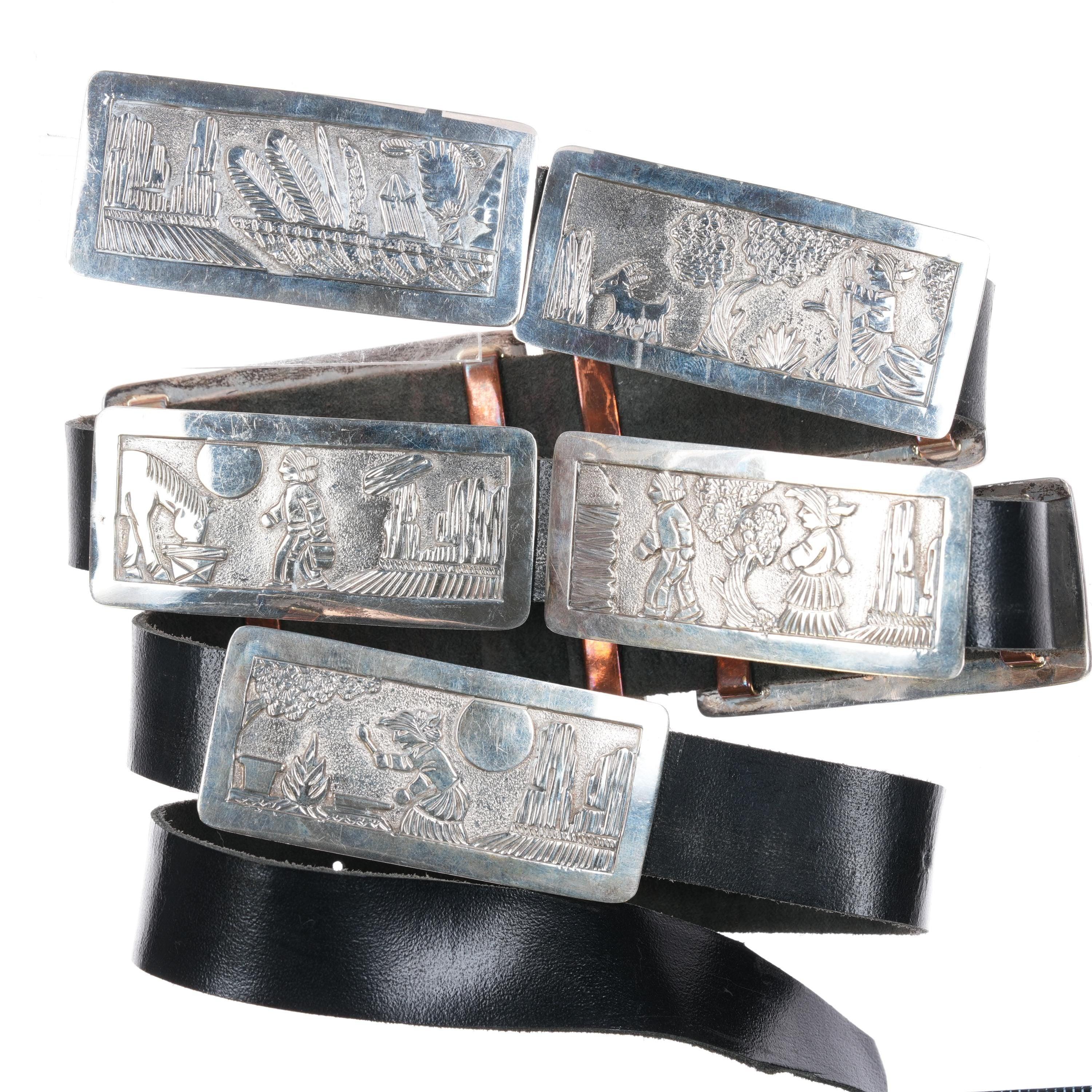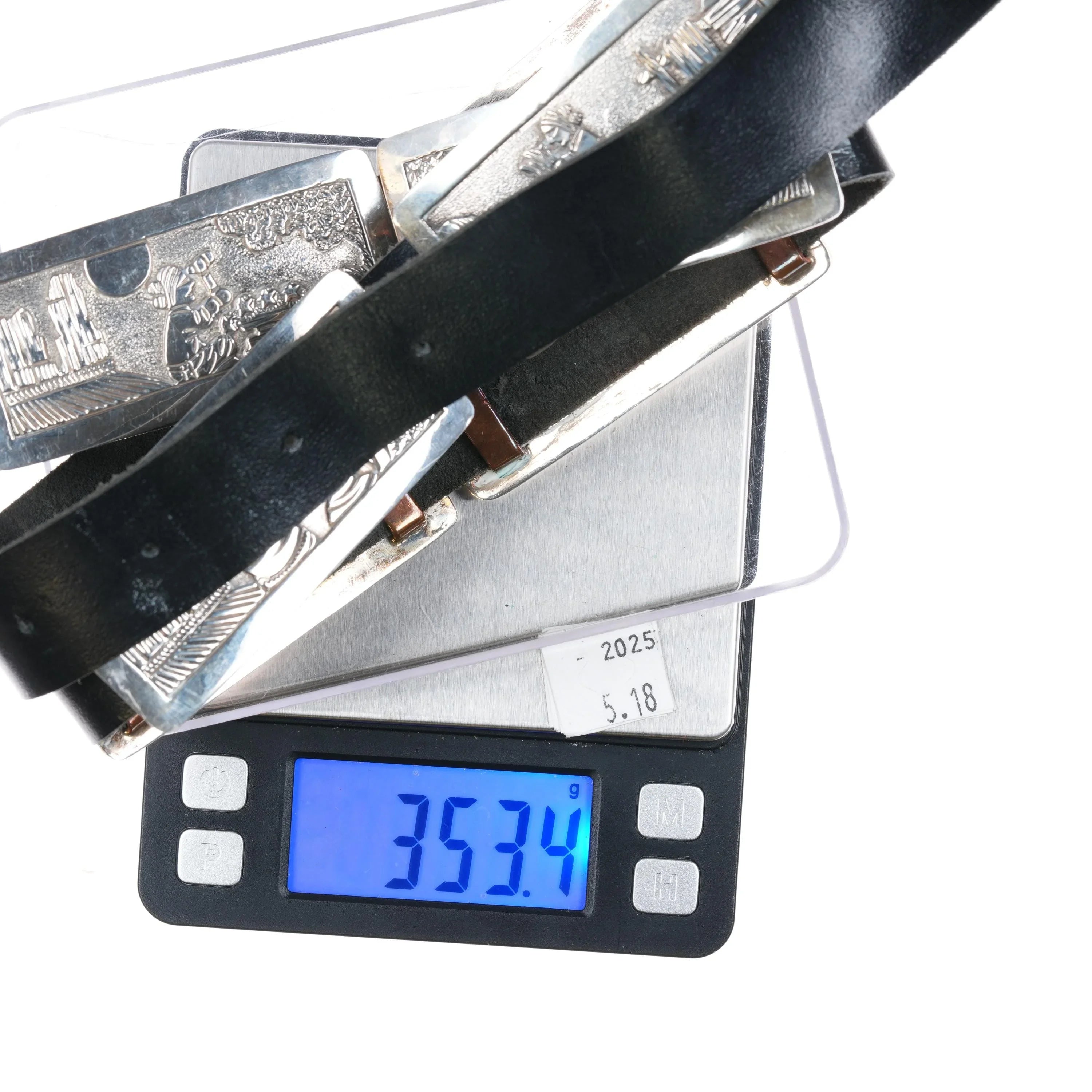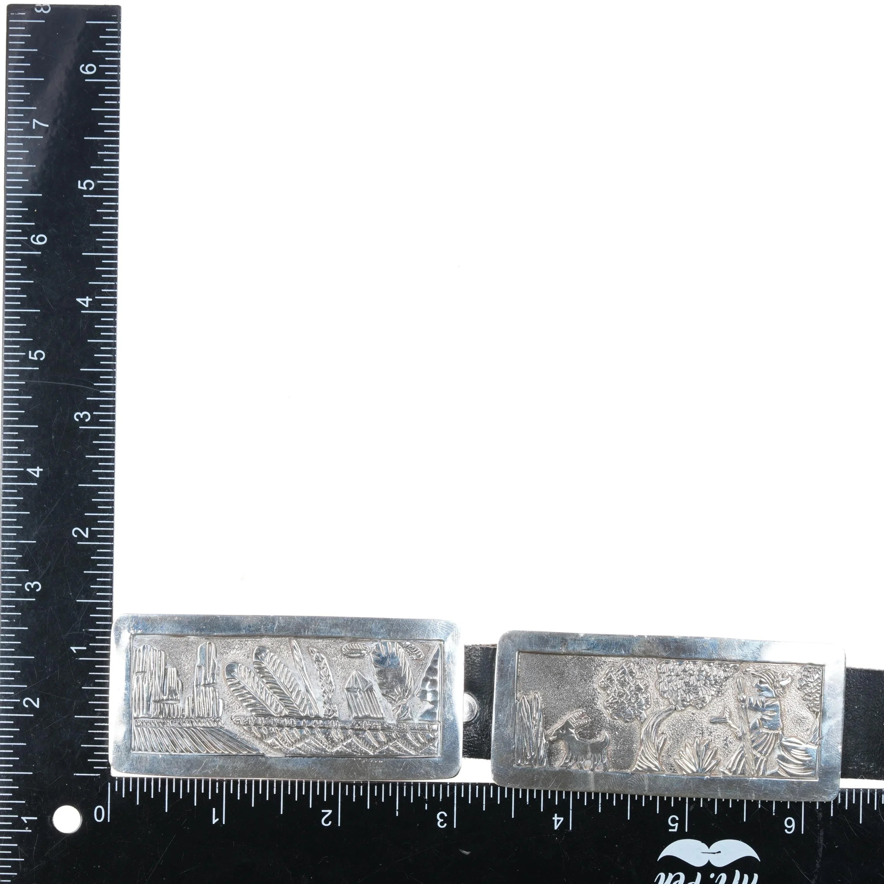 Becenti Navajo sterling silver Storyteller concho belt.. Solid sterling silver (tested) with weight and measurements in pictures.. Marked sterling as shown, all hand engraved, weight and measurements in pictures. 9 total conchos, 1 buckle 8 conchos. Holes from 35"-40", could be added on either side.