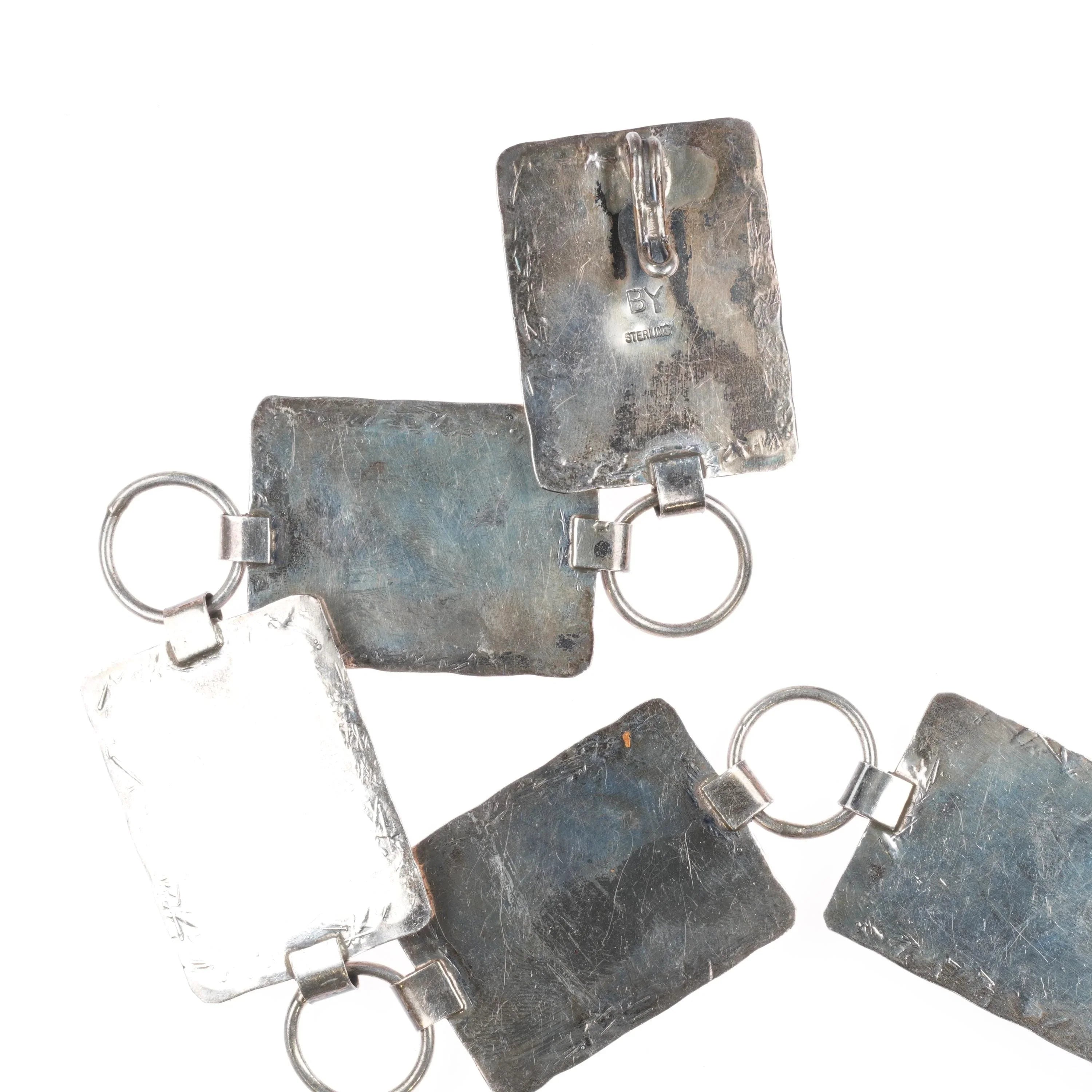 Benson Yazzie Navajo stamped Sterling silver square link concho belt . Tested and guaranteed sterling silver. Fits up to a 39.5" waist and can be hooked anywhere below. Marked as shown, high quality workmanship from the last quarter of the 20th century