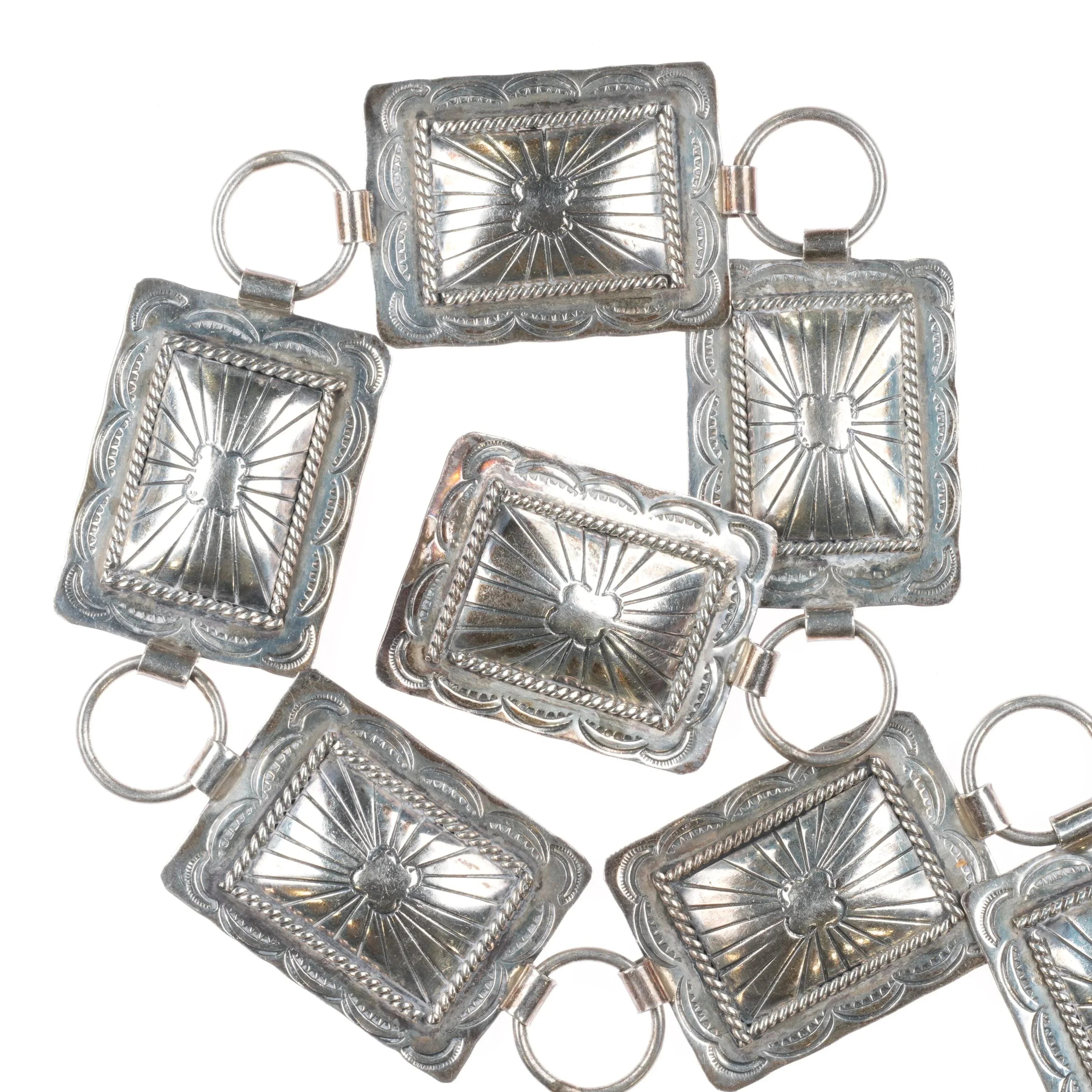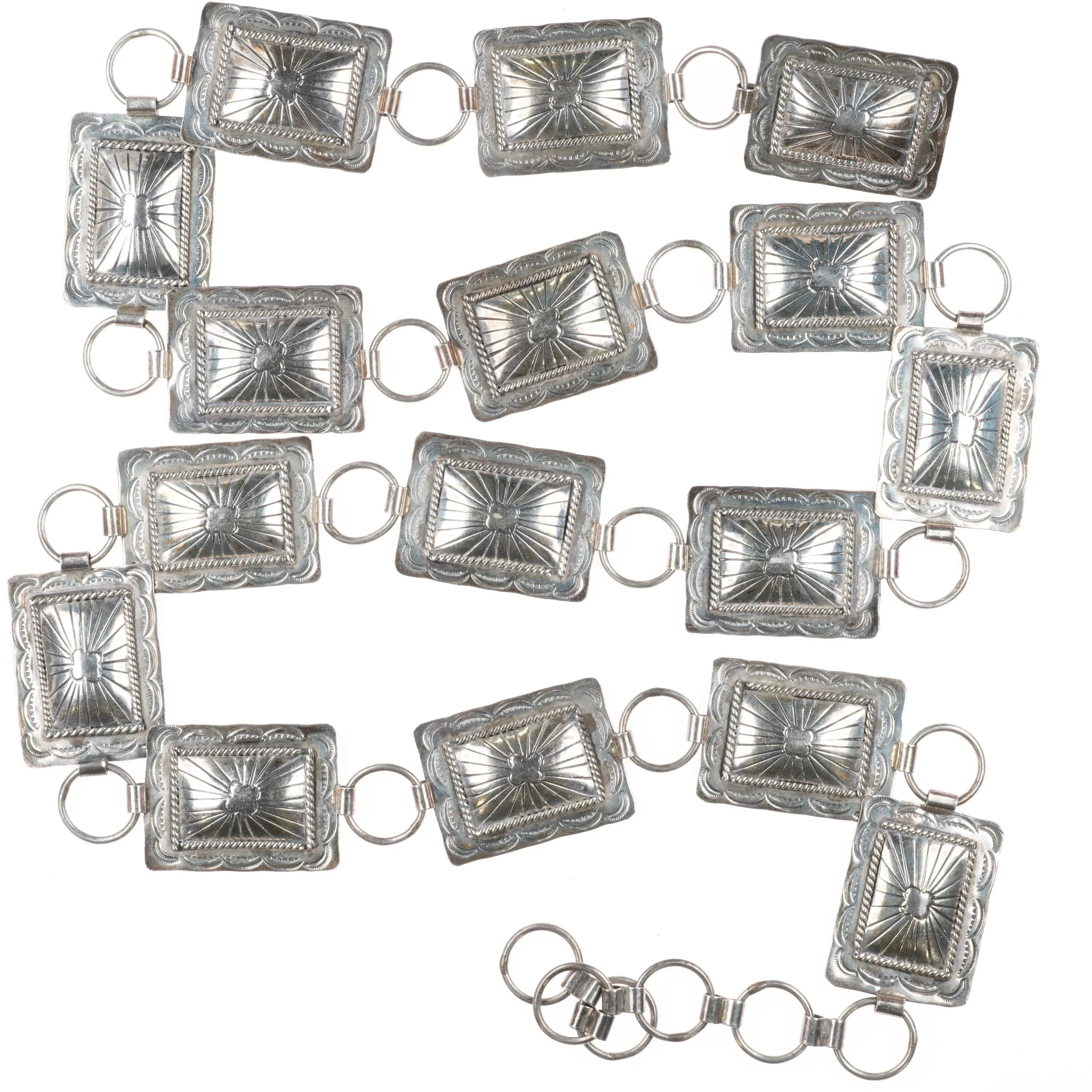 Benson Yazzie Navajo stamped Sterling silver square link concho belt
