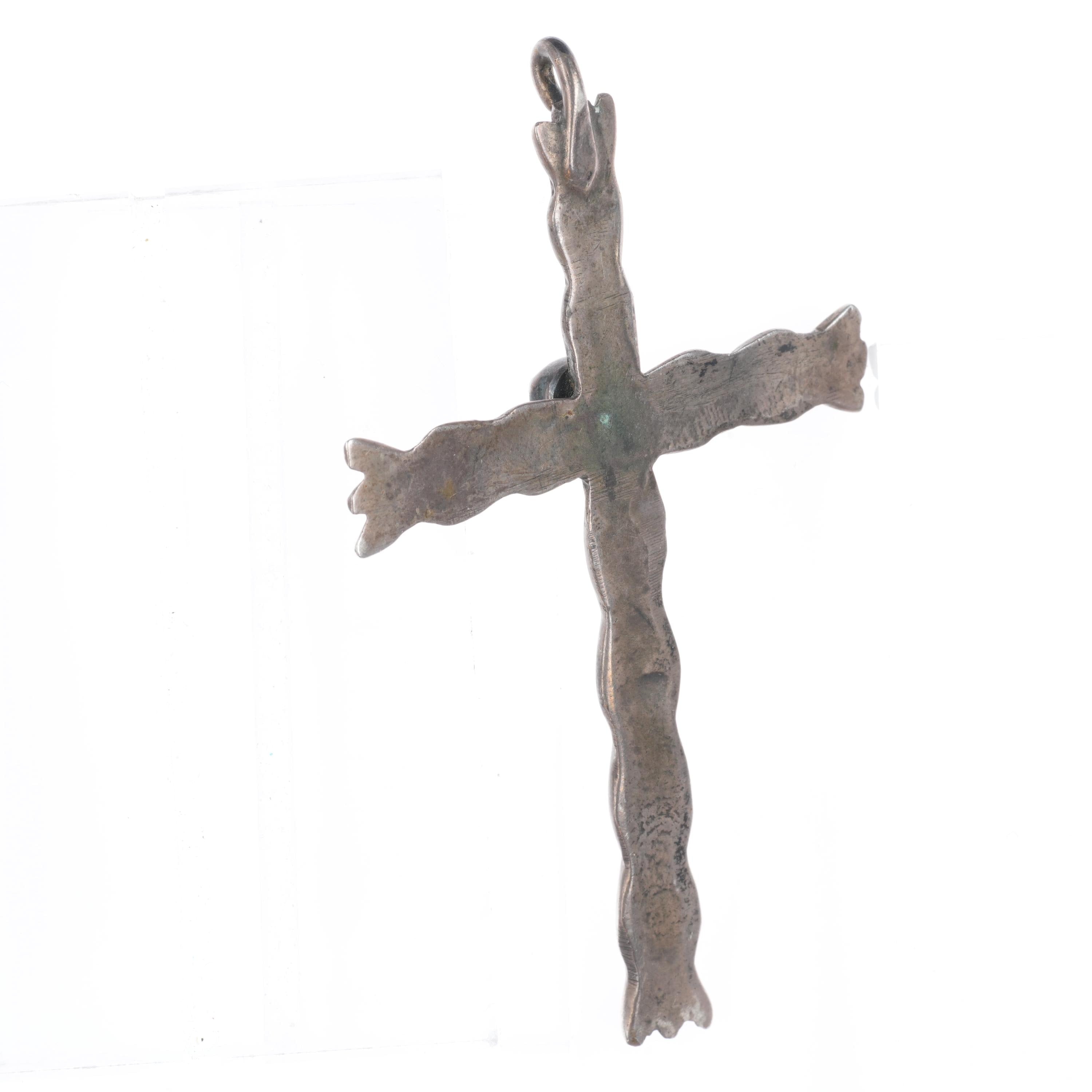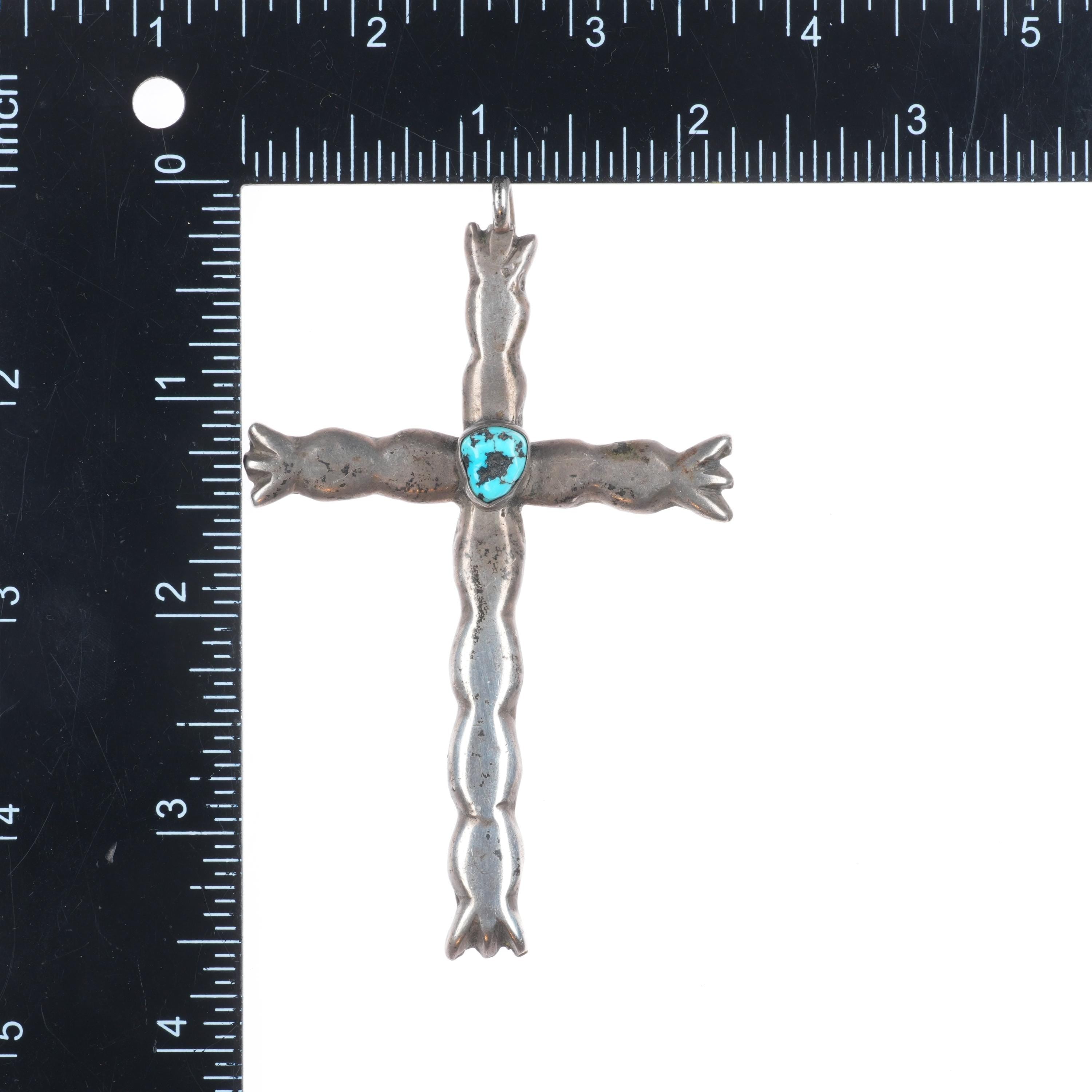 Big vintage Navajo sterling silver rippled cross with turquoise