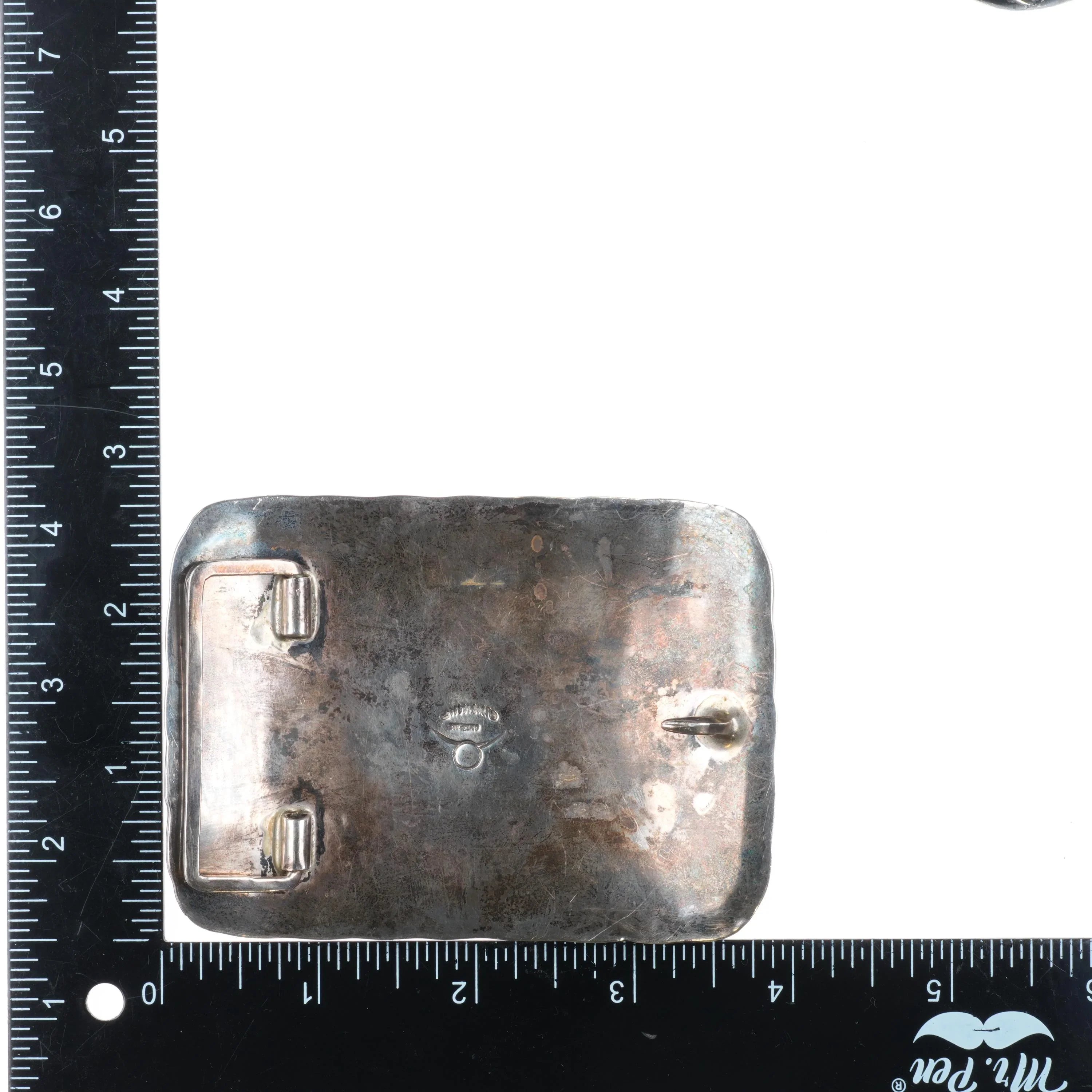 Big Vintage Southwestern sterling silver green Cerrillos turquoise belt buckle. Tested and guaranteed solid sterling silver. Fits up to a 1.75" wide belt. Some expected wear. Good condition, functional with no damage or unsightly wear.. Most likely Native American made, unrecognized hallmark.