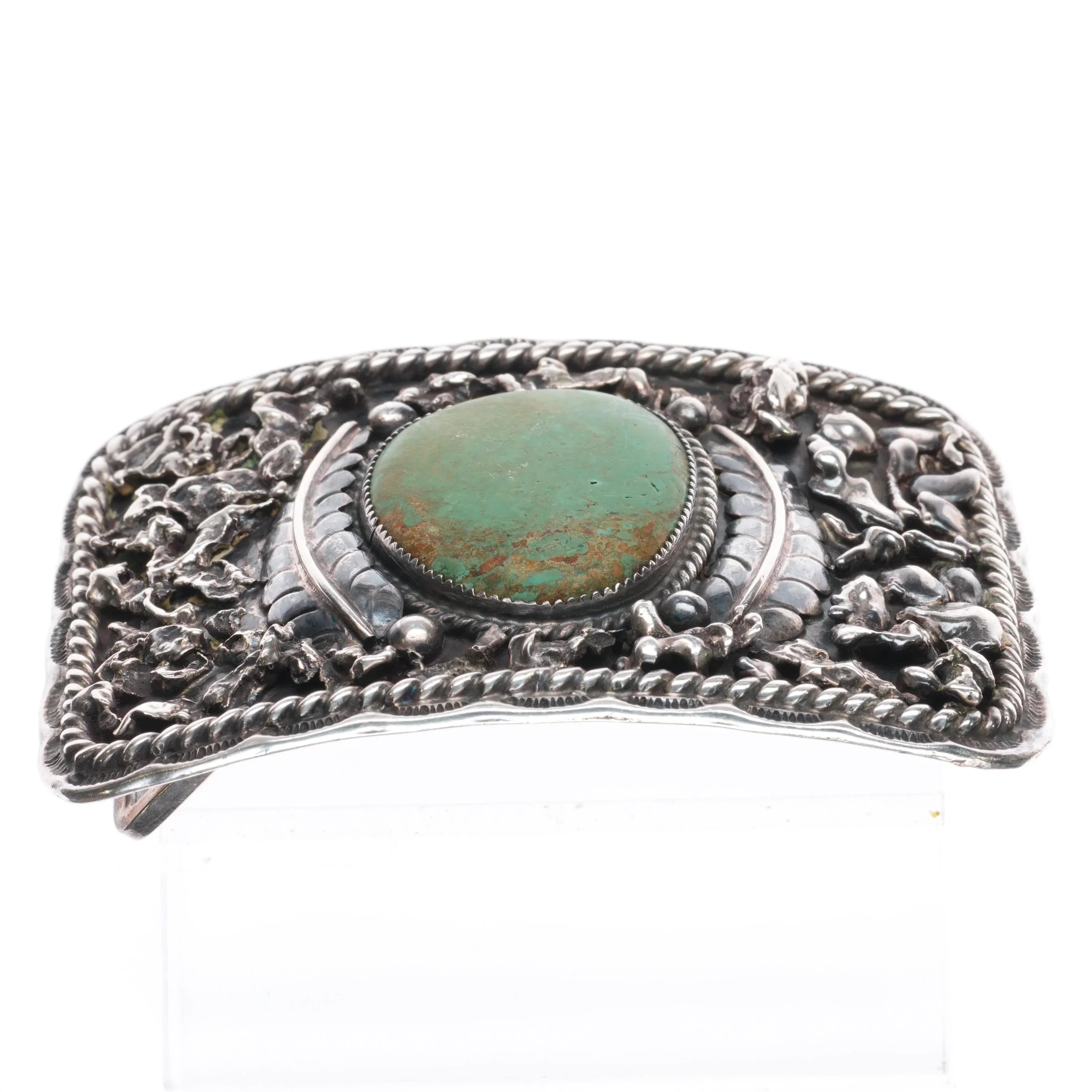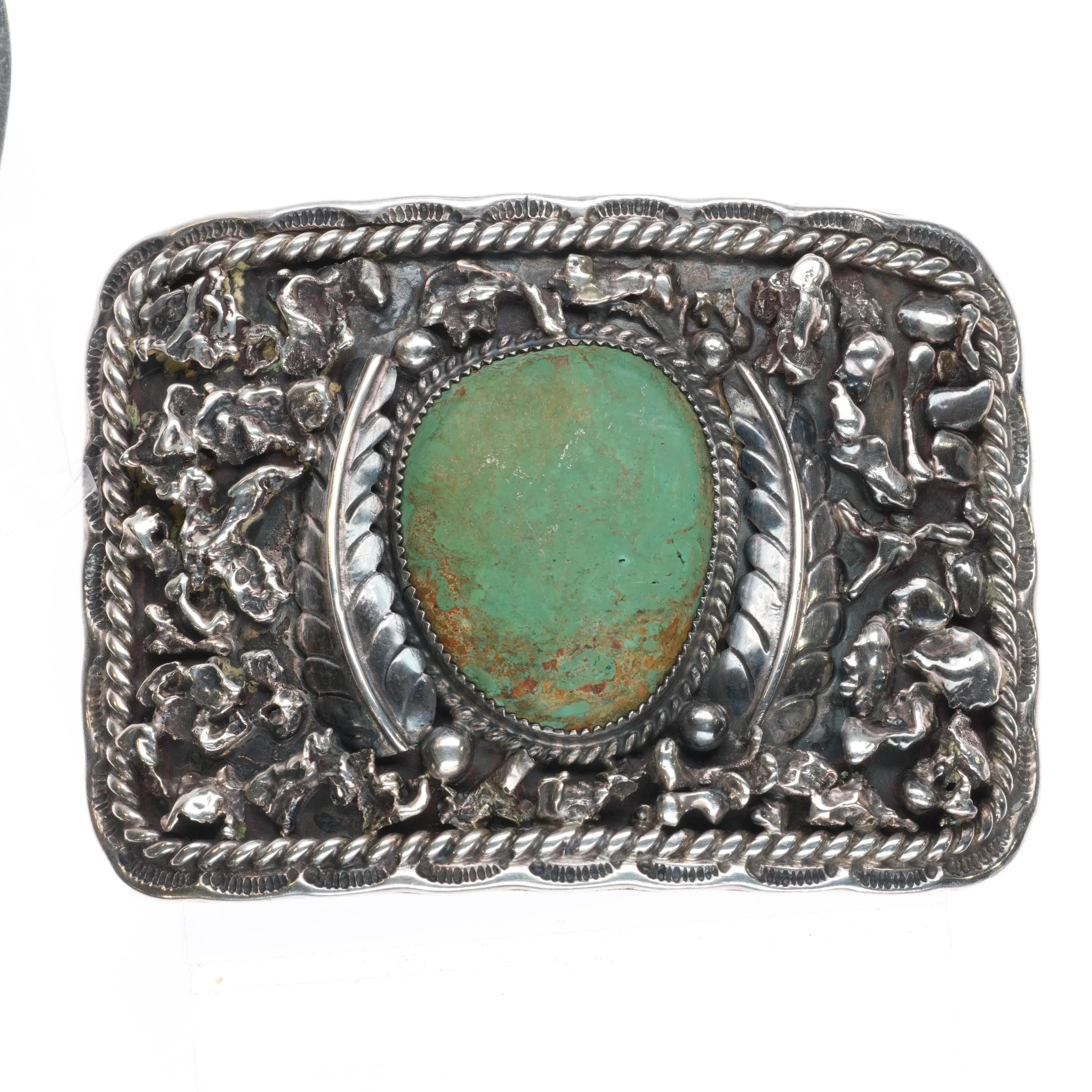 Big Vintage Southwestern sterling silver green Cerrillos turquoise belt buckle