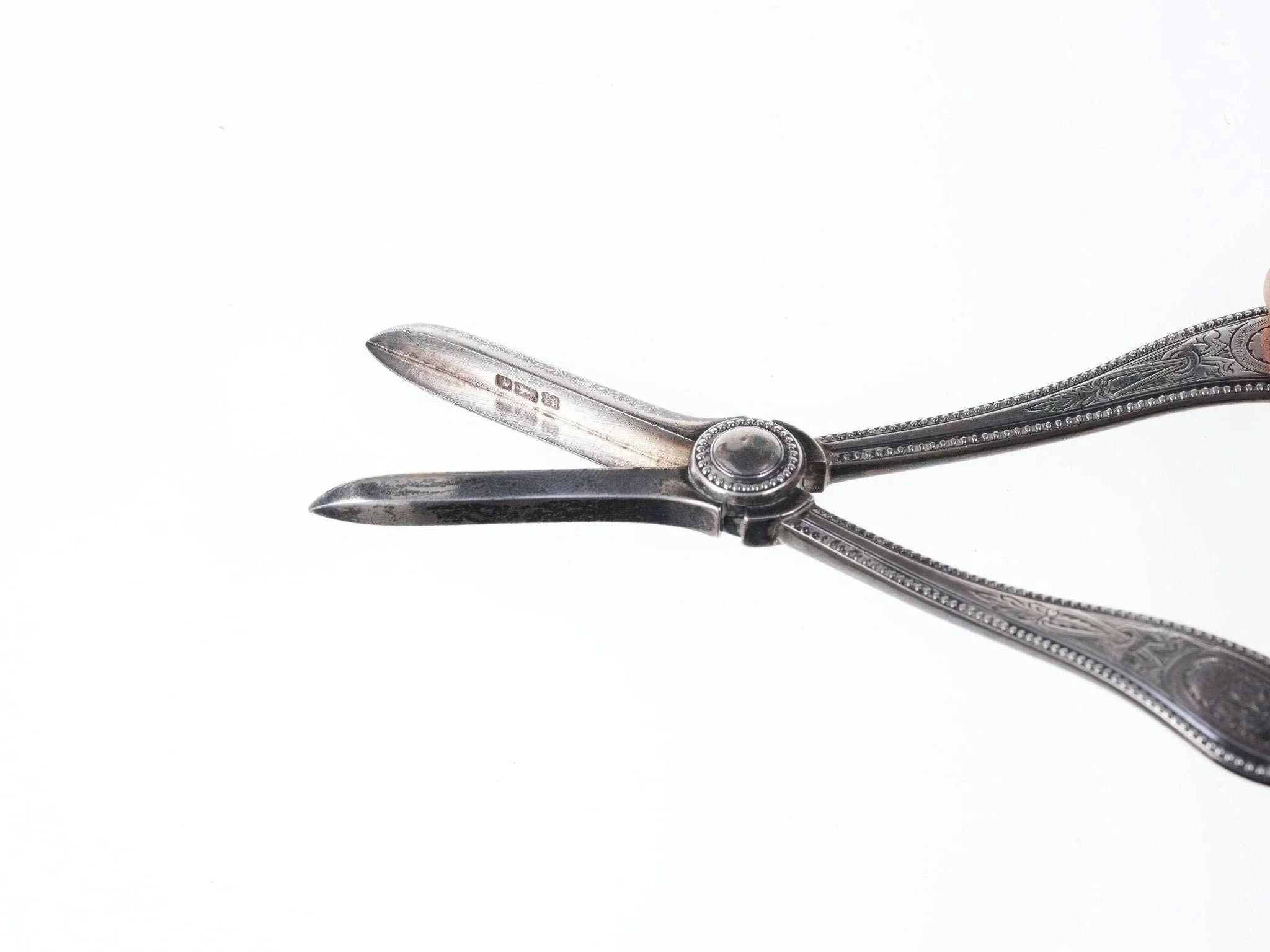 c1875 English Sterling Grape shears. 6 7/8" long 108.3 grams, solid and sharp with no issues.