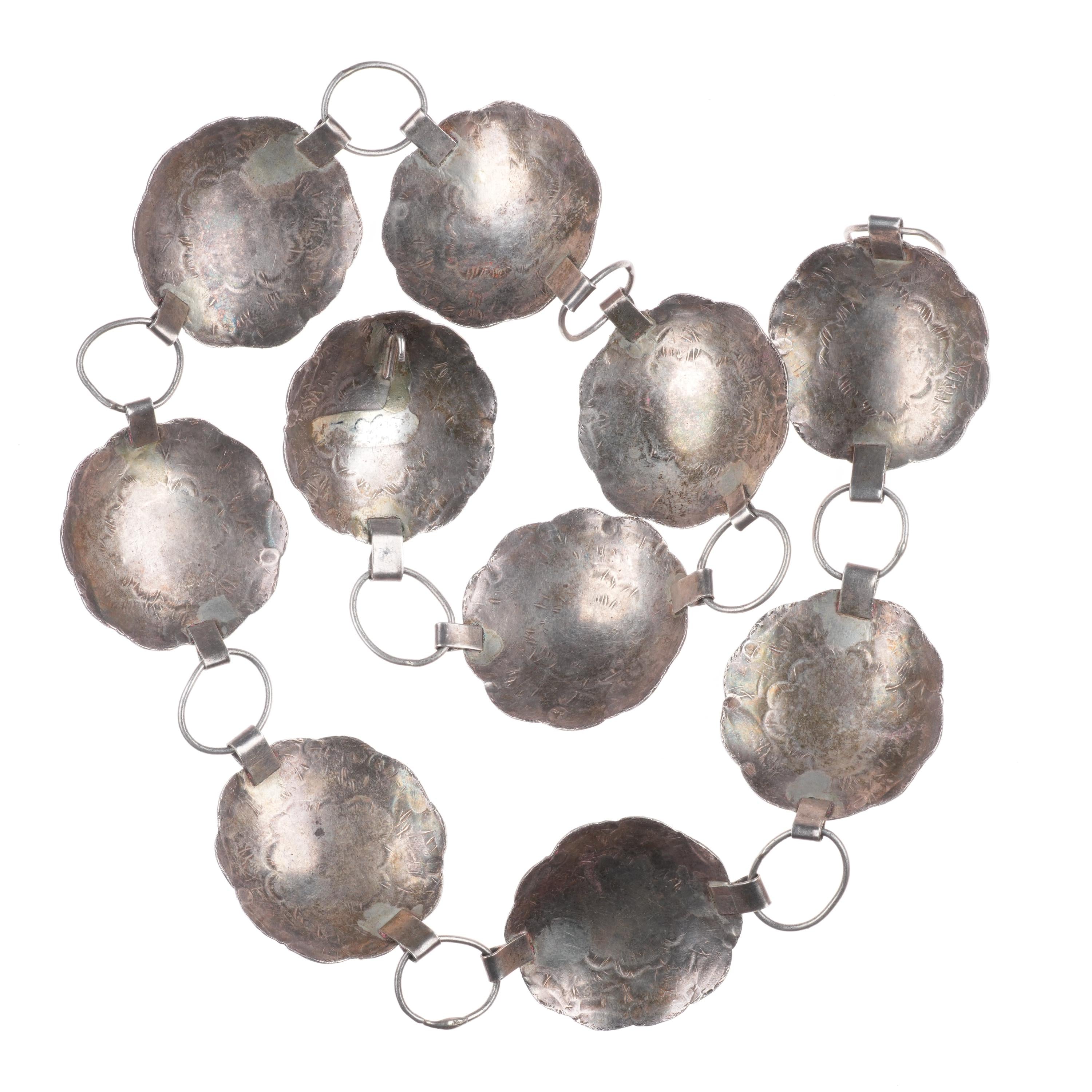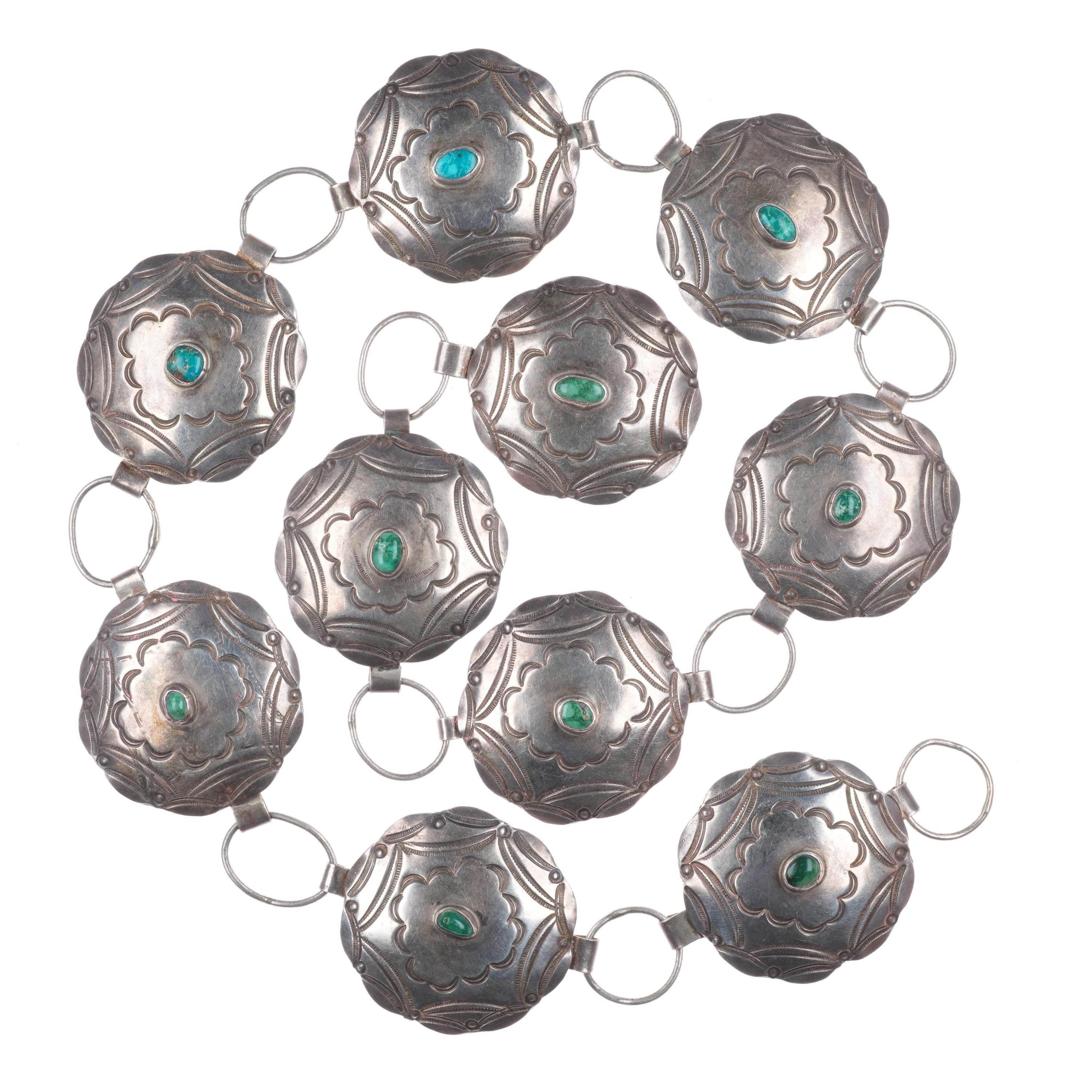 c1940 Large/Heavy Navajo hand stamped sterling silver link concho belt turquoise