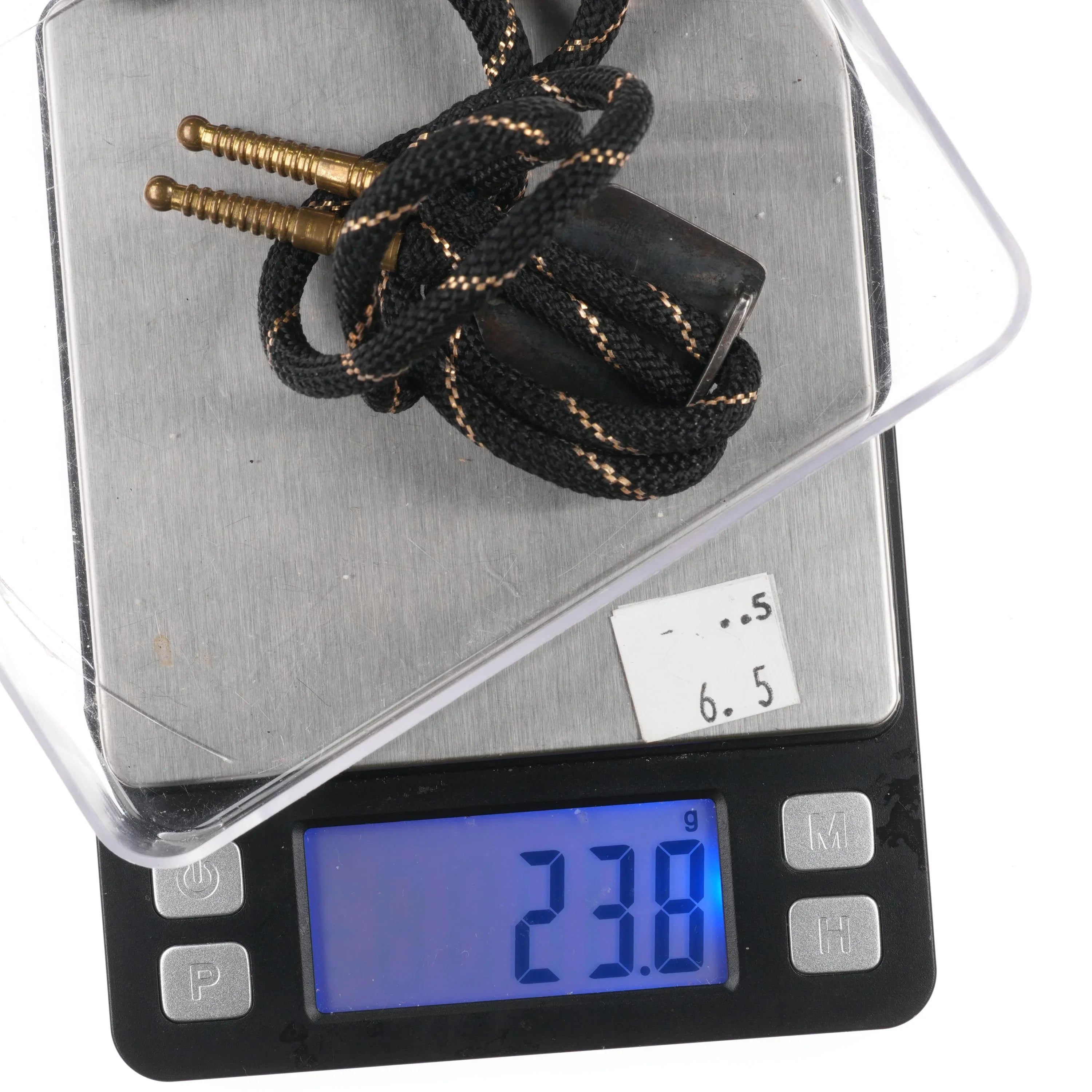 c1940‘s Navajo sterling silver bolo tie with nice Nevada turquoise. Tested and guaranteed solid sterling silver slide. Cord and tips are later replacements, tips not sterling. Weight and measurements in pictures. Great bolo, 34" long with no issues.