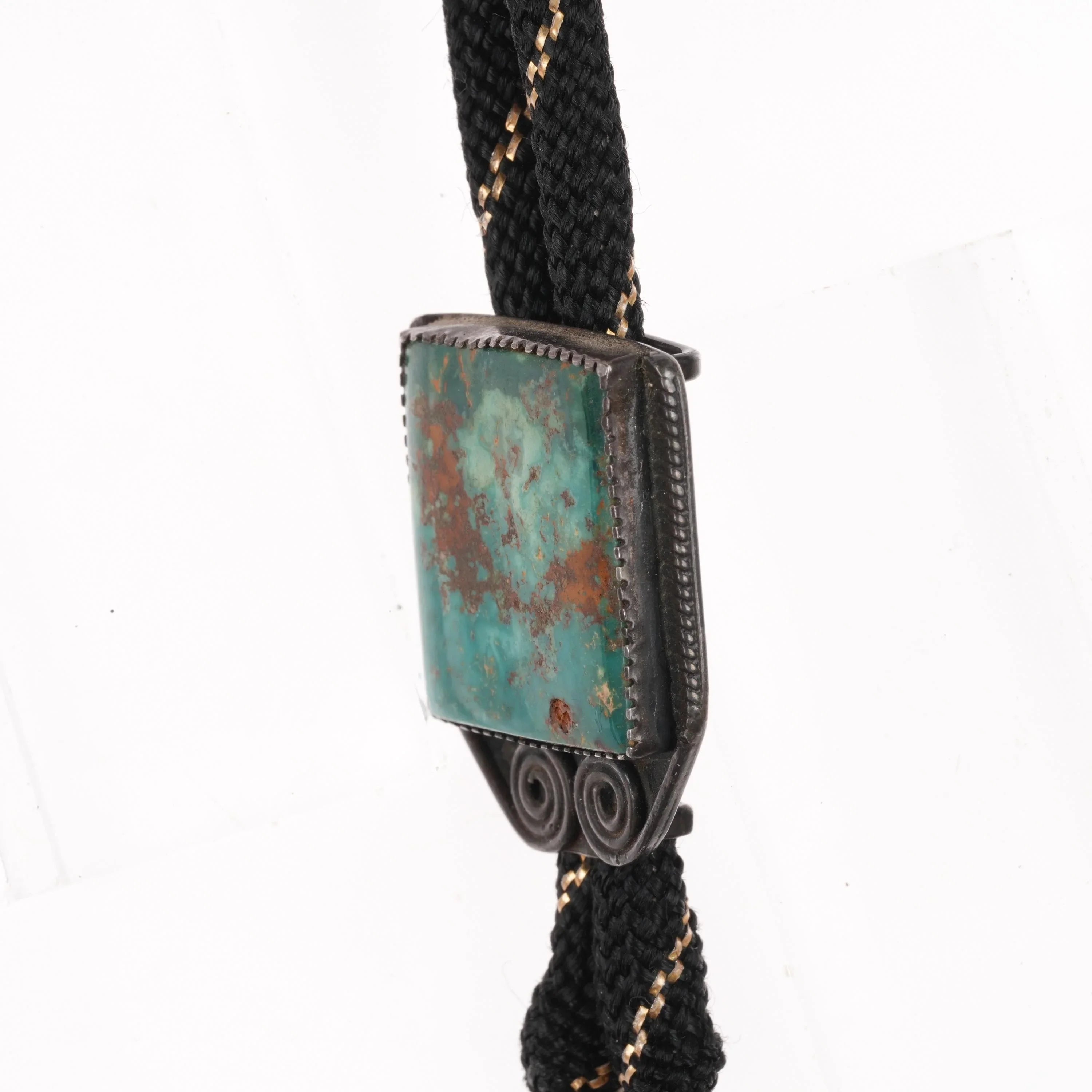 c1940's Navajo sterling silver bolo tie with nice Nevada turquoise
