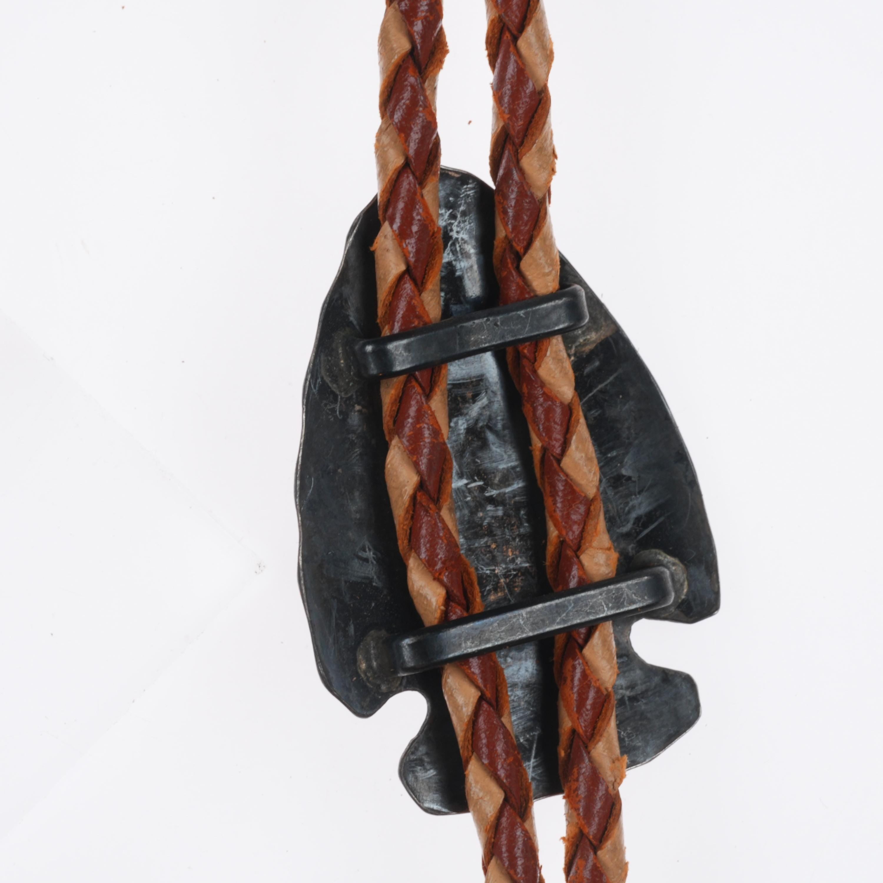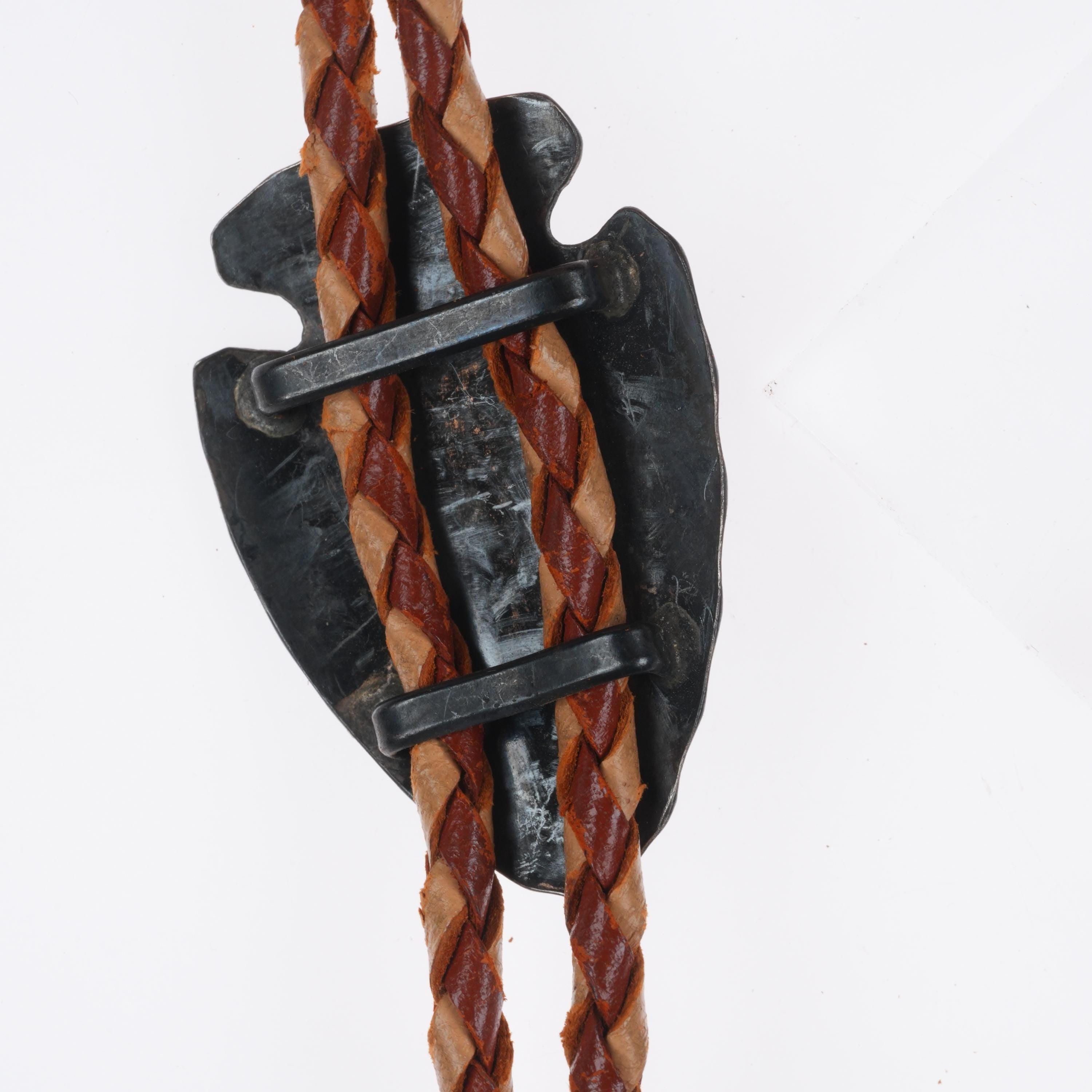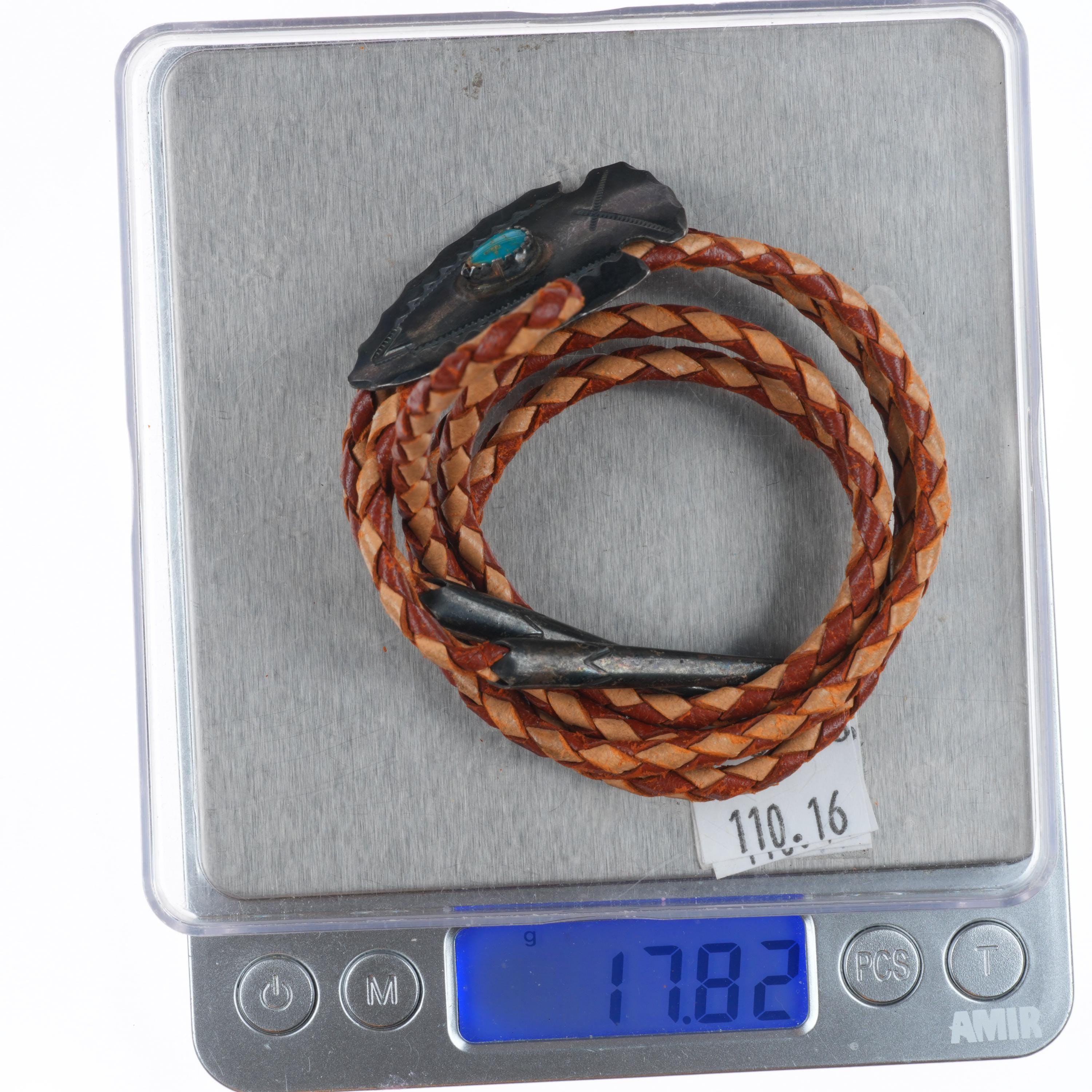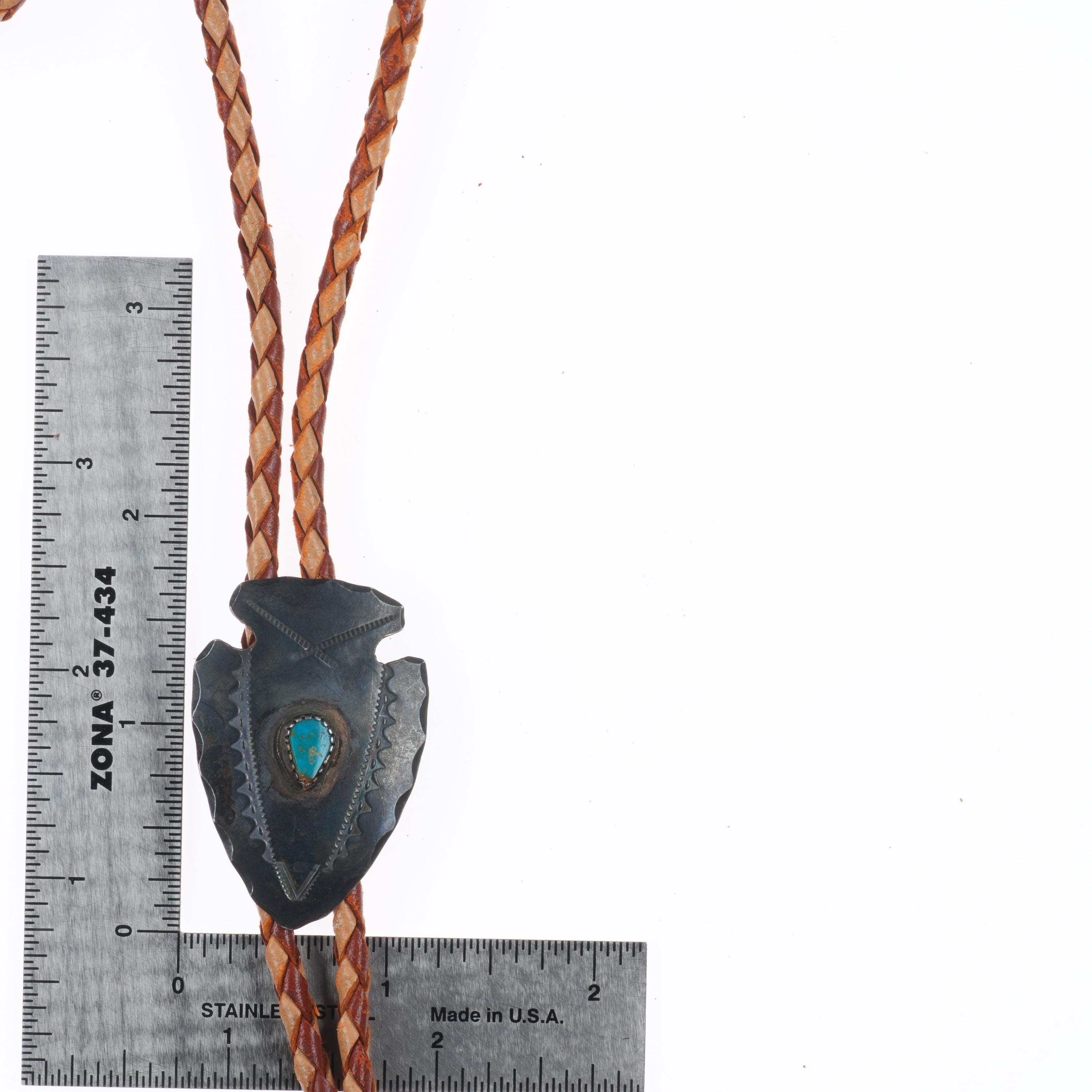 c1950 Vintage Navajo sterling silver Blue Gem turquoise arrowhead bolo tie