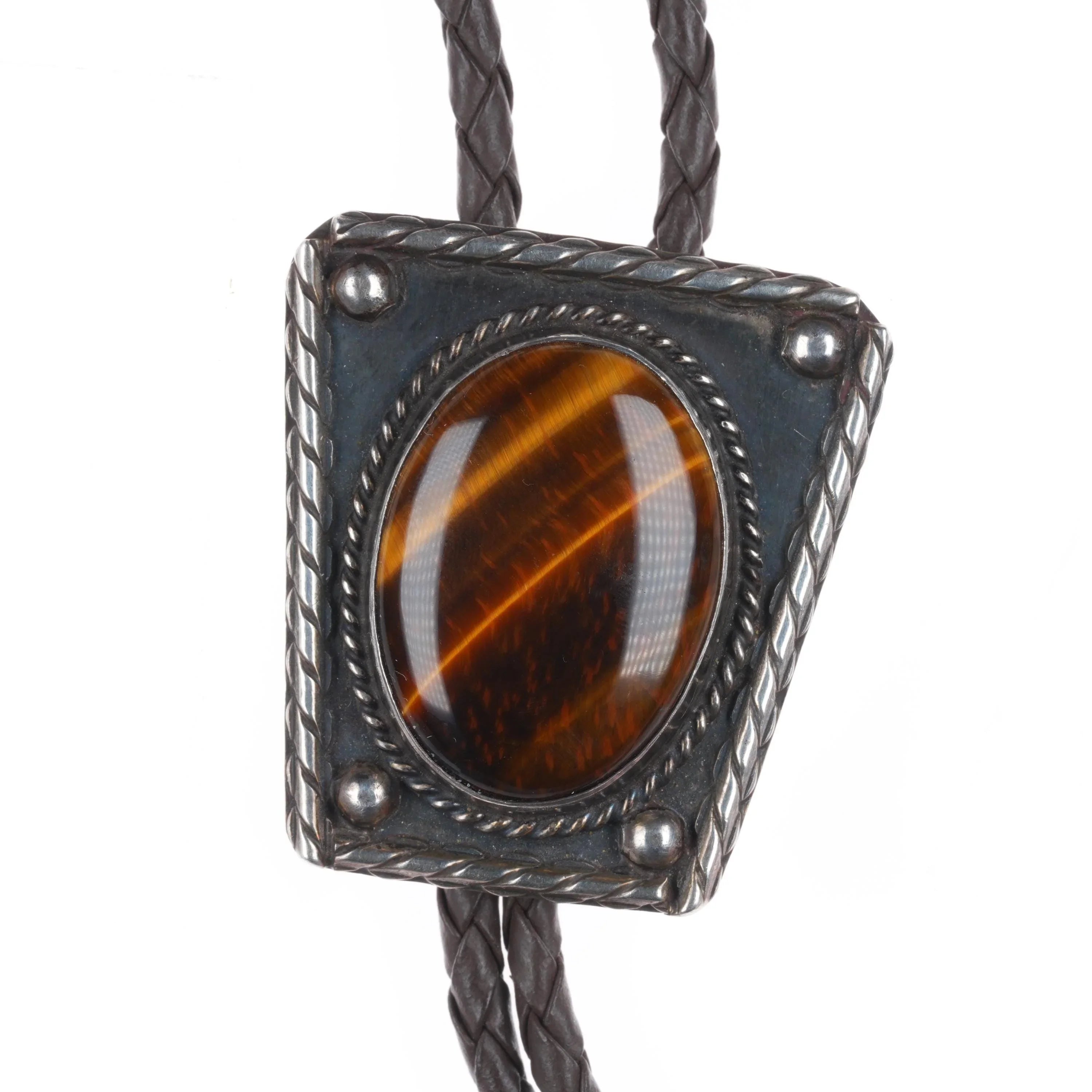 c1960 c-31 Navajo sterling silver tiger's eye stone bolo tie Vintage