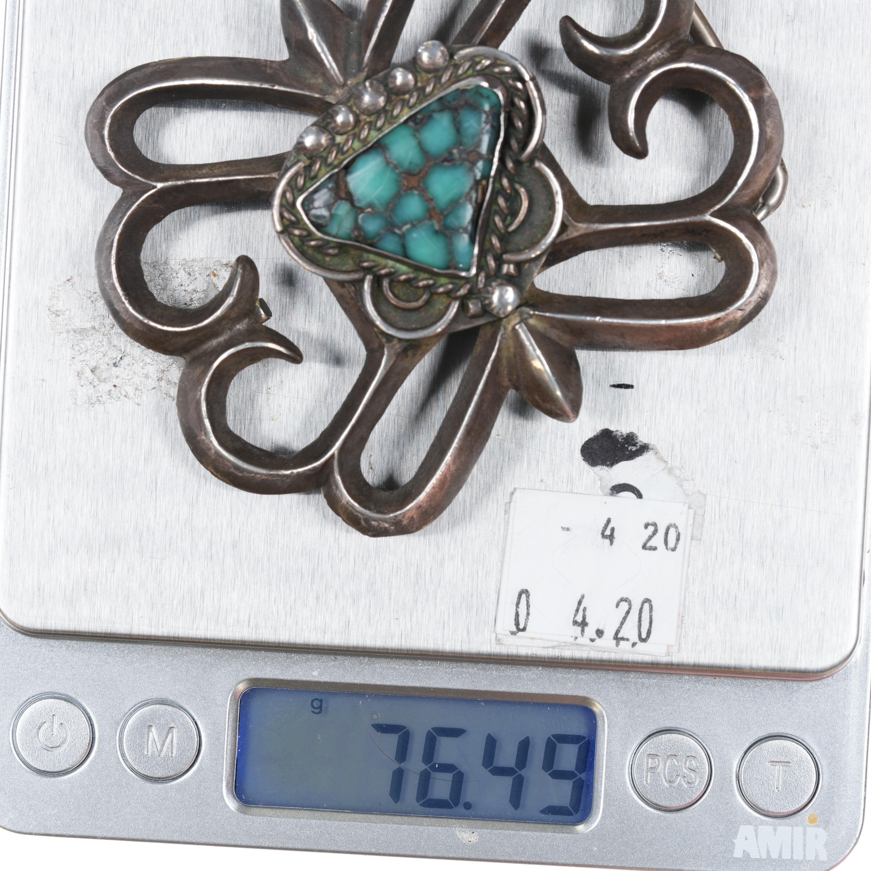 c1960's Vintage Navajo cast sterling silver belt buckle with spiderweb turquoise