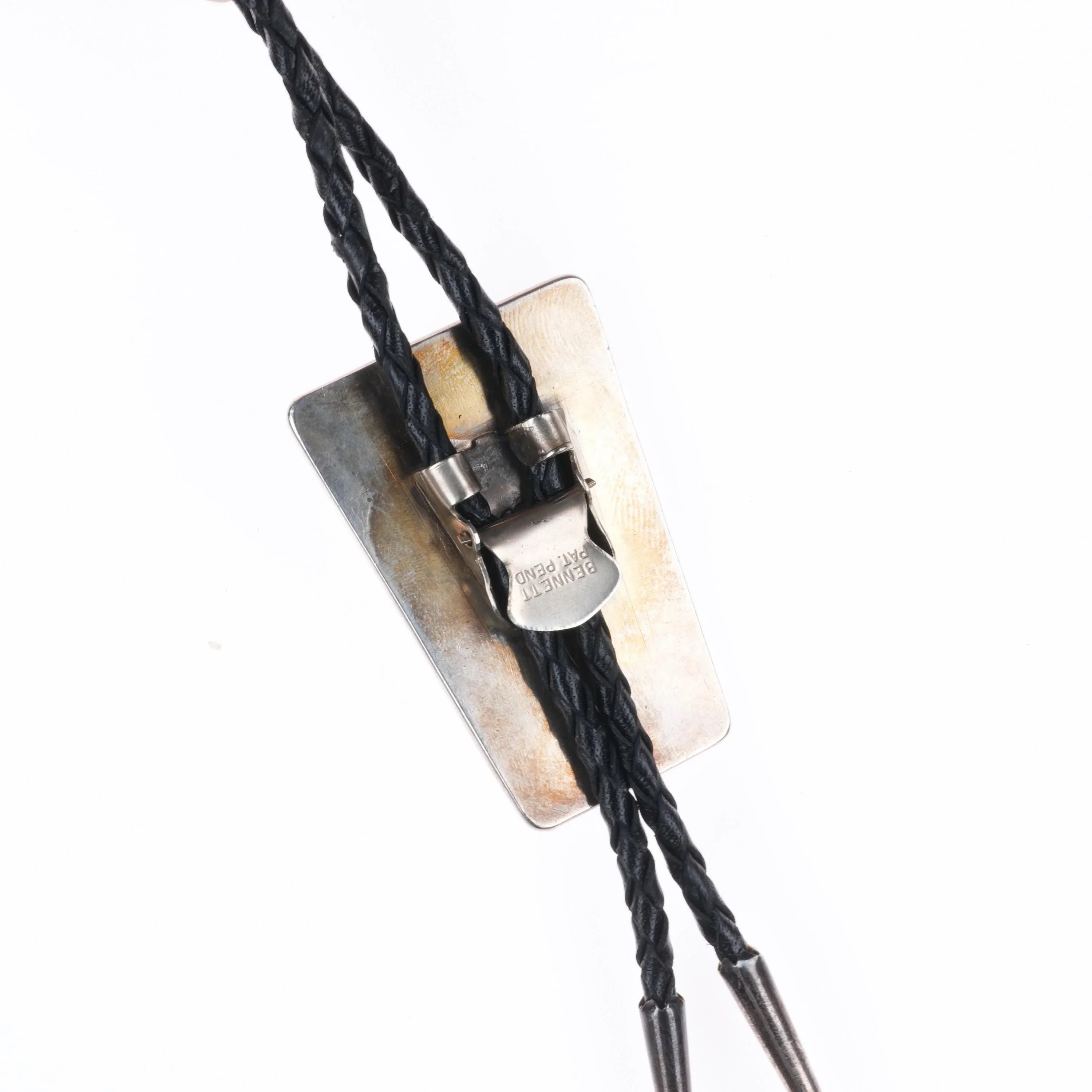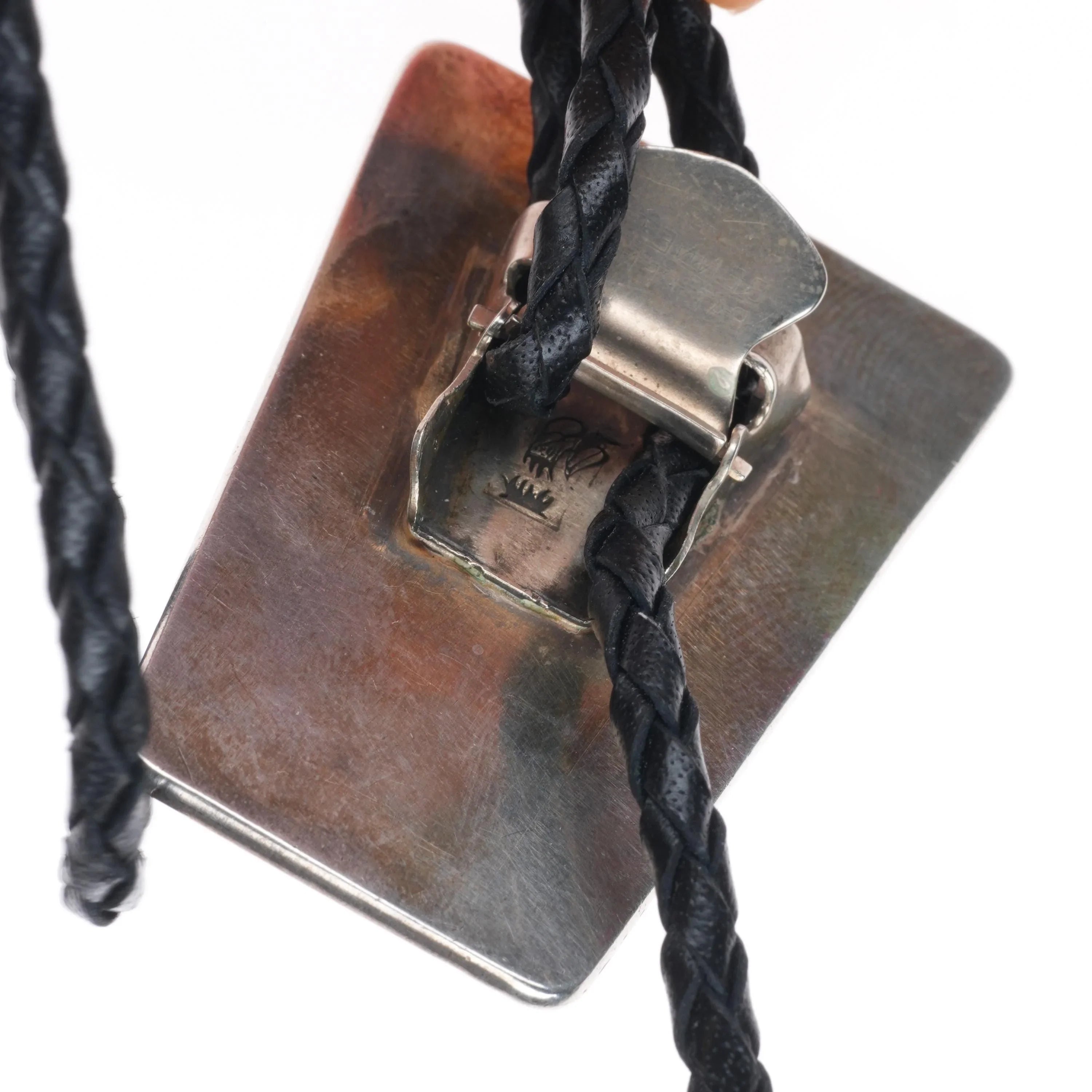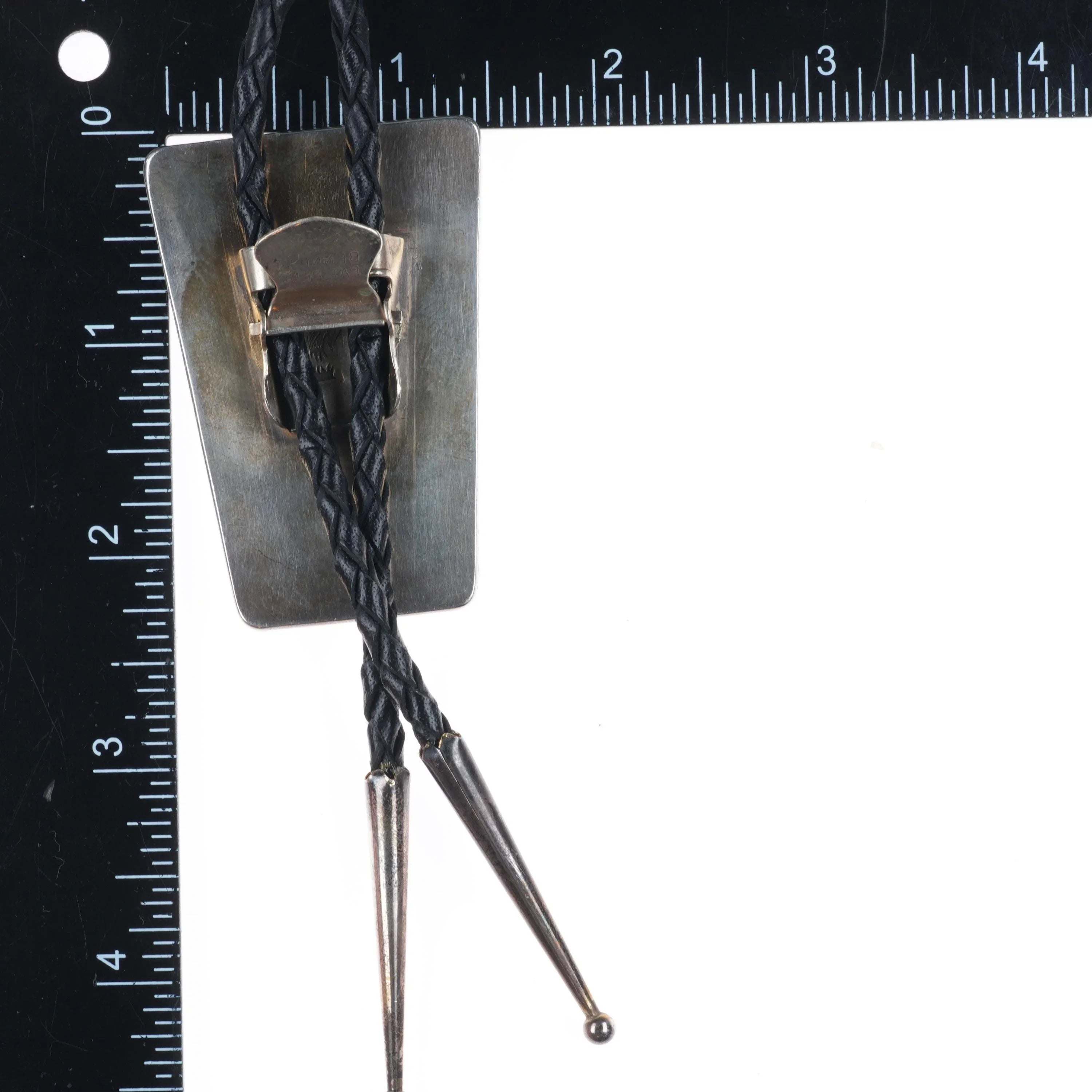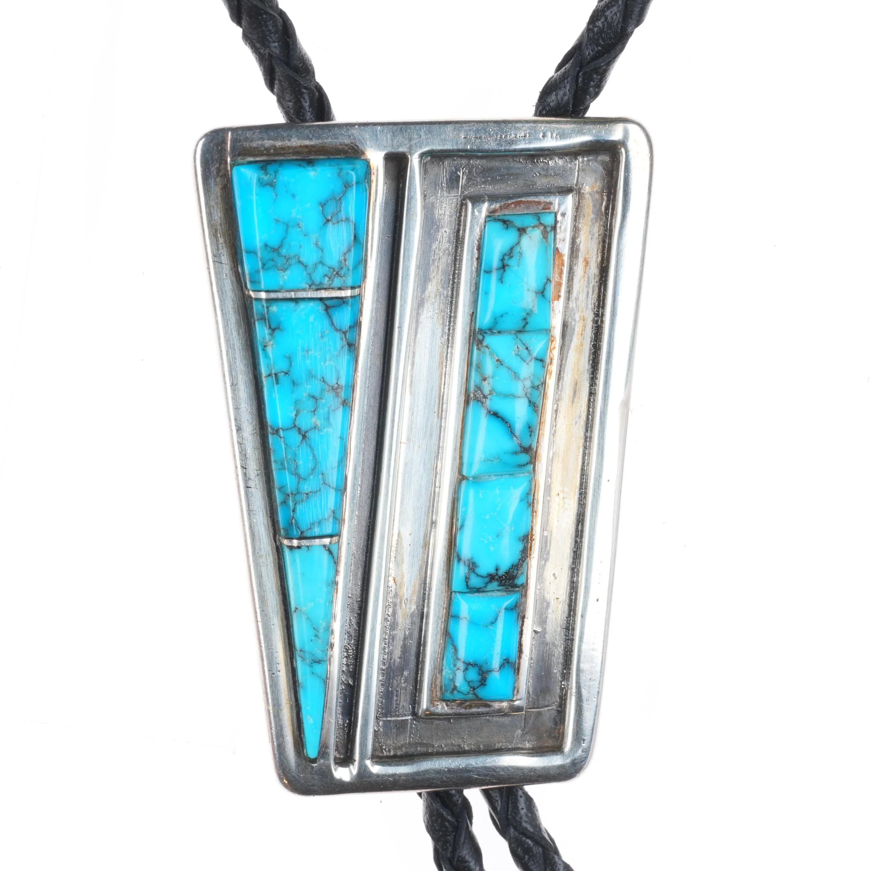c1970 Navajo sterling silver turquoise inlay modernist bolo tie Gilbert Ortega