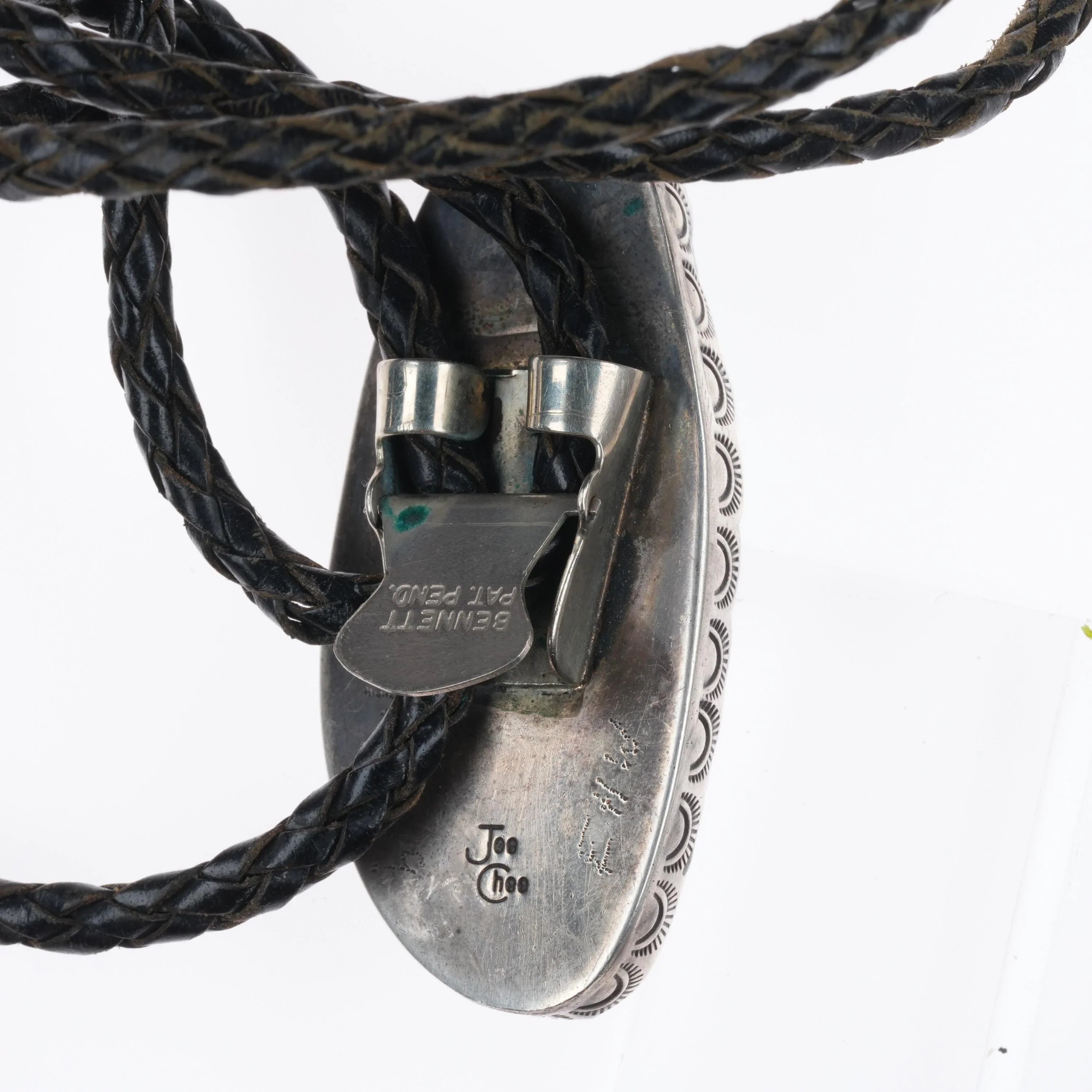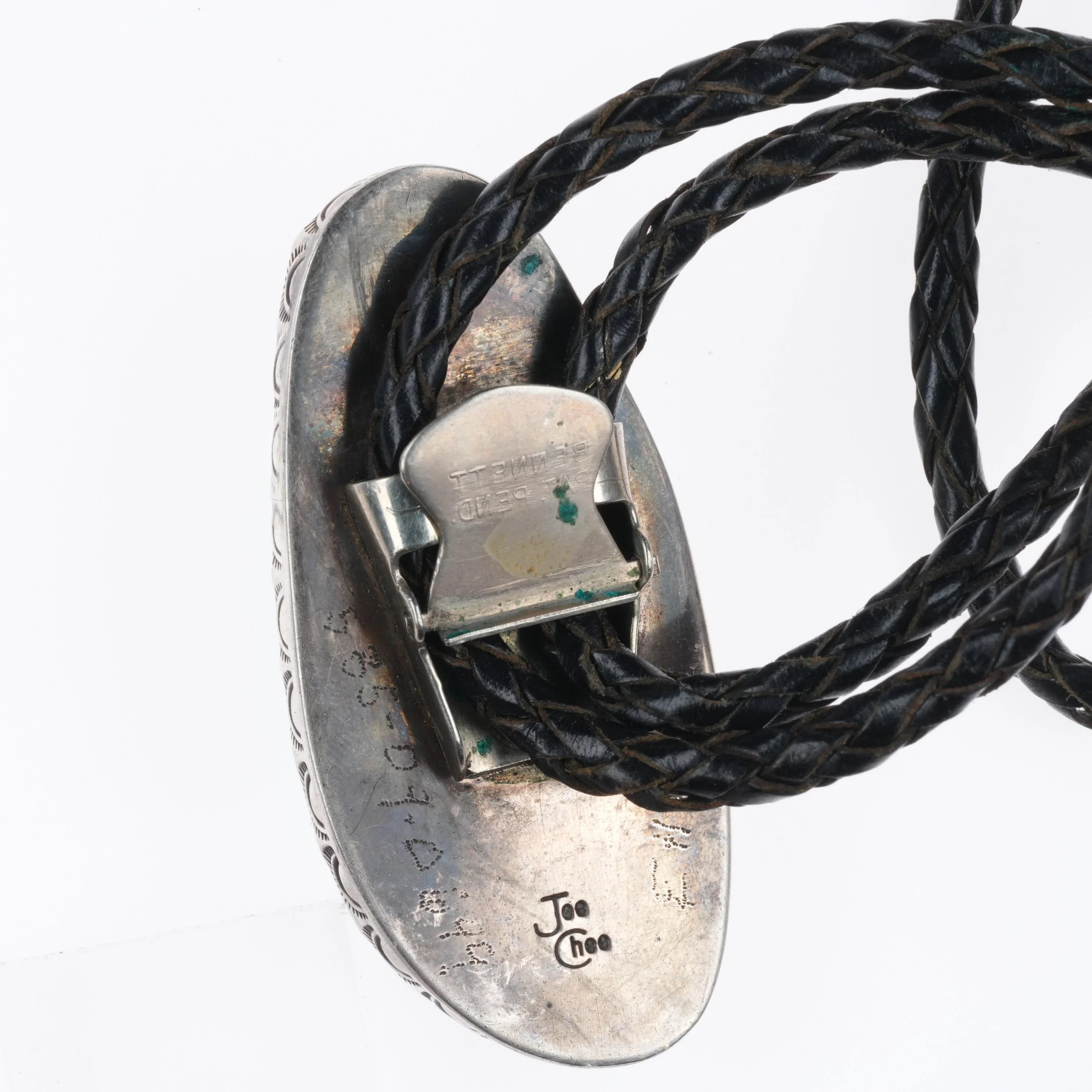 c1970 Vintage Navajo high grade turquoise bolo tie sterling silver Joe Chee