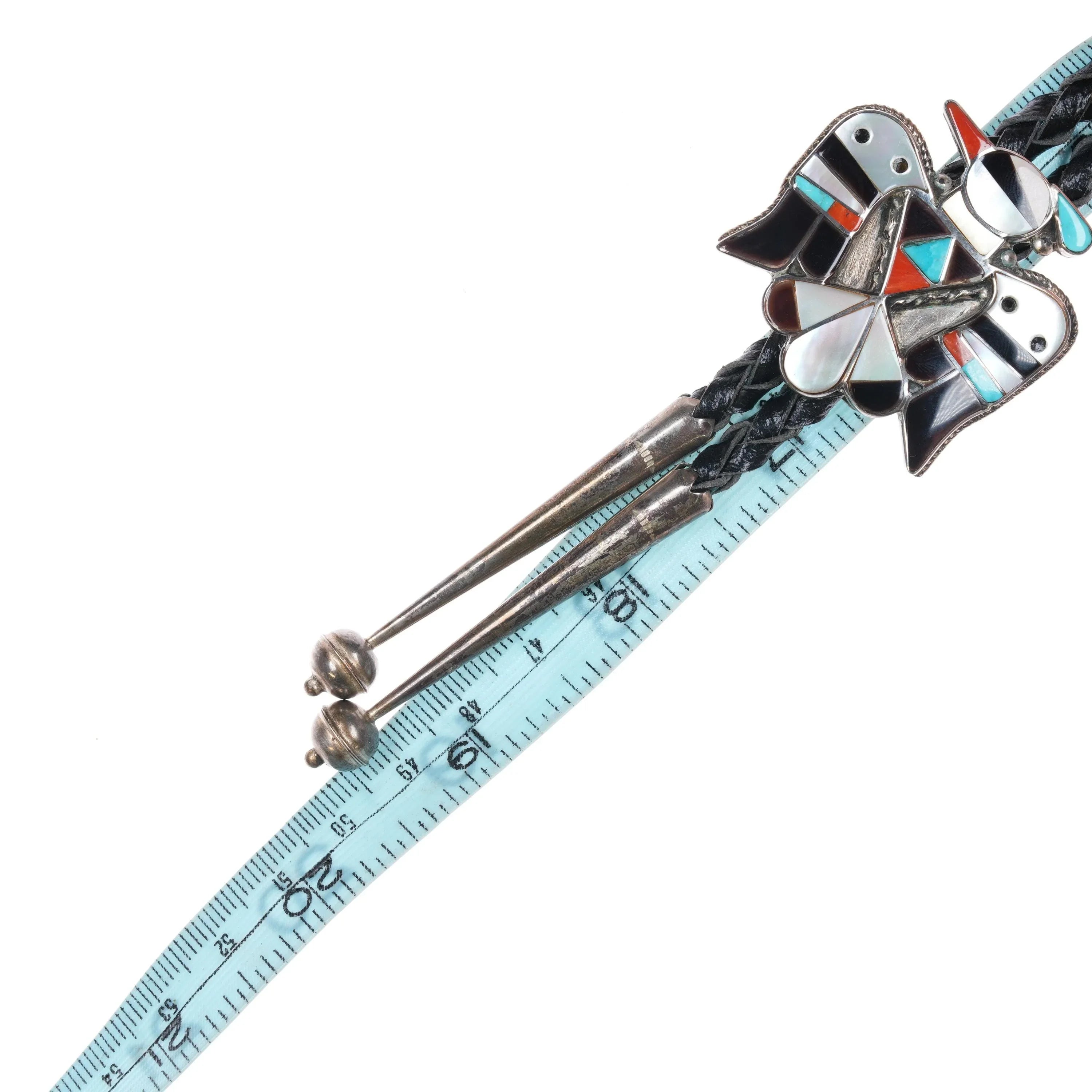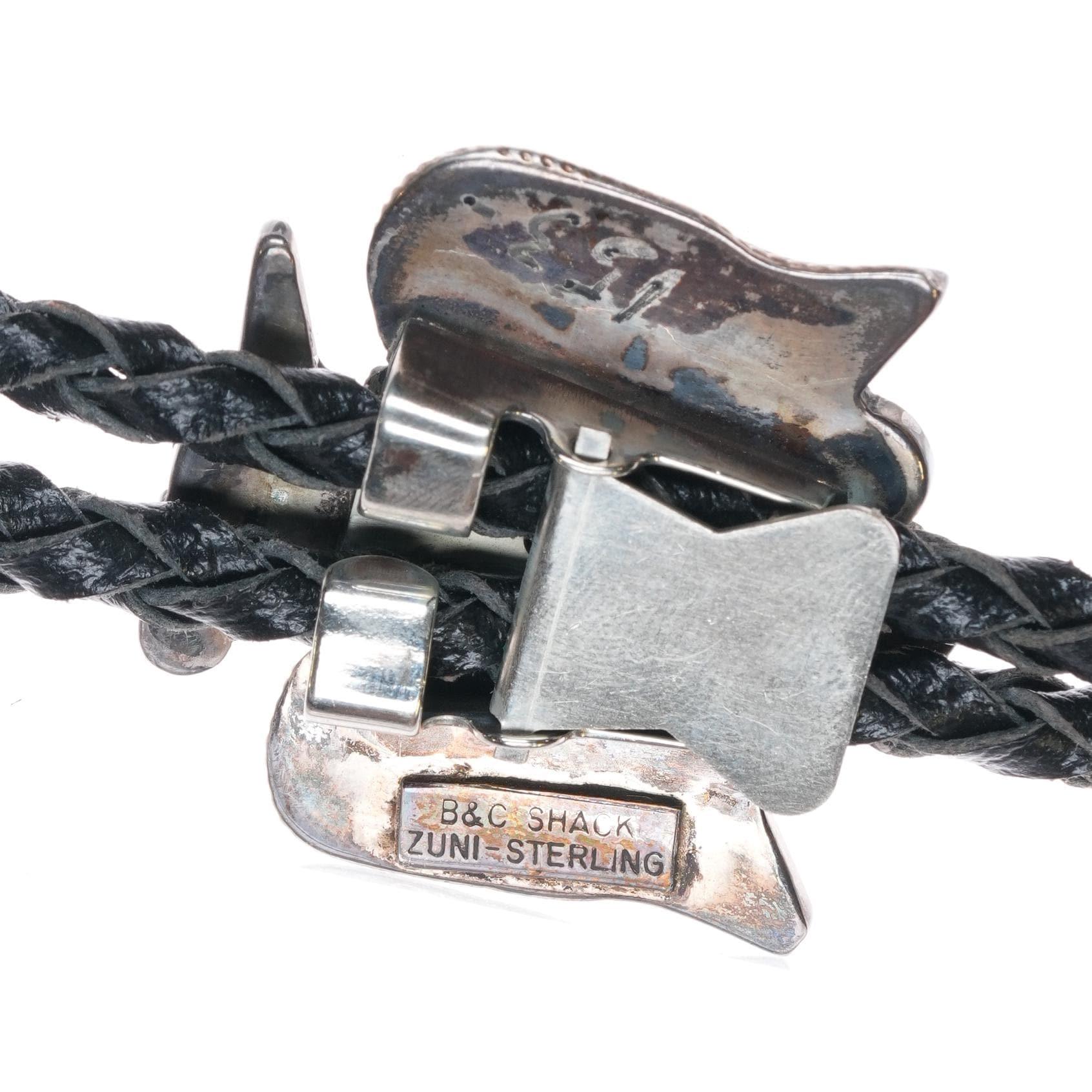 c1980 Vintage B&C Shack Zuni sterling silver thunderbird inlay bolo tie