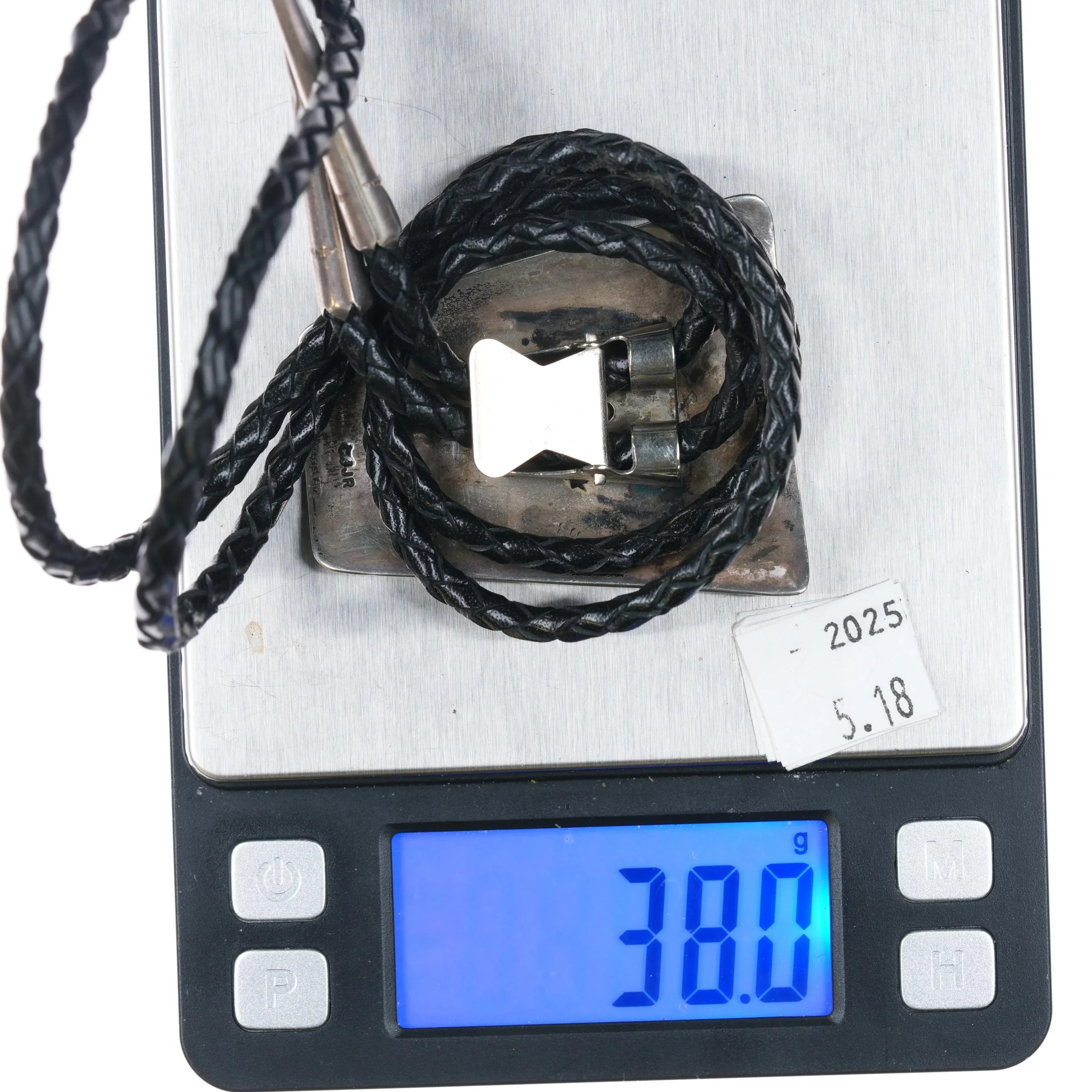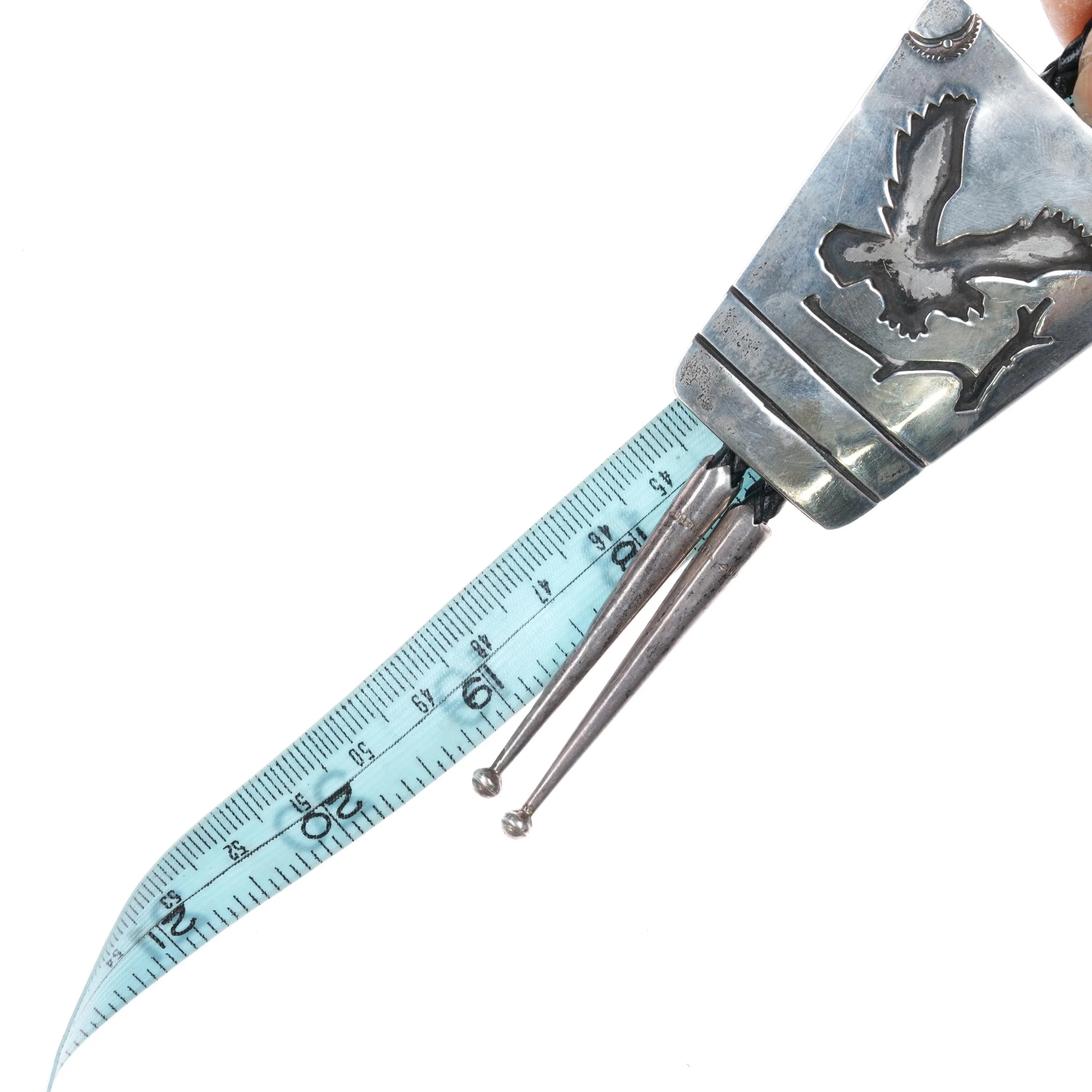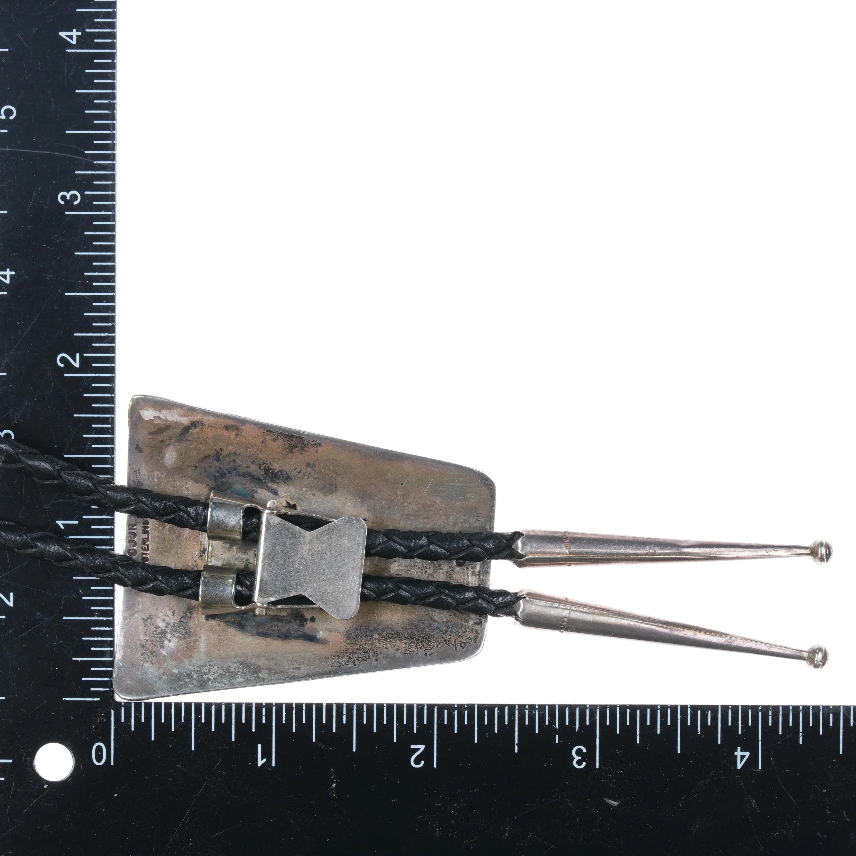 c1980 Vintage CJ Jr Navajo Sterling silver eagle bolo tie in overlay style