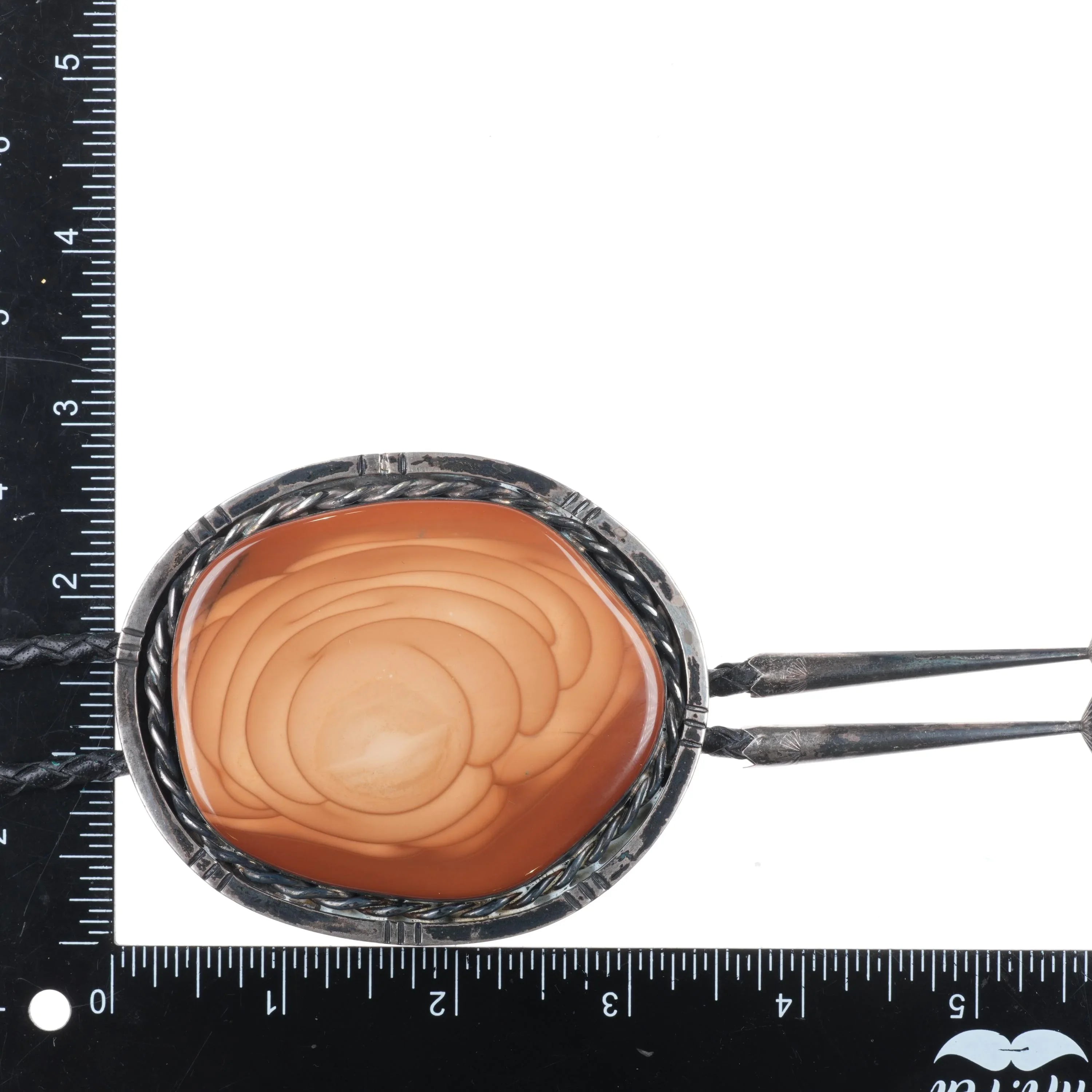 c1980's Huge Vintage Navajo Sterling silver Bruneau Jasper slab bolo tie