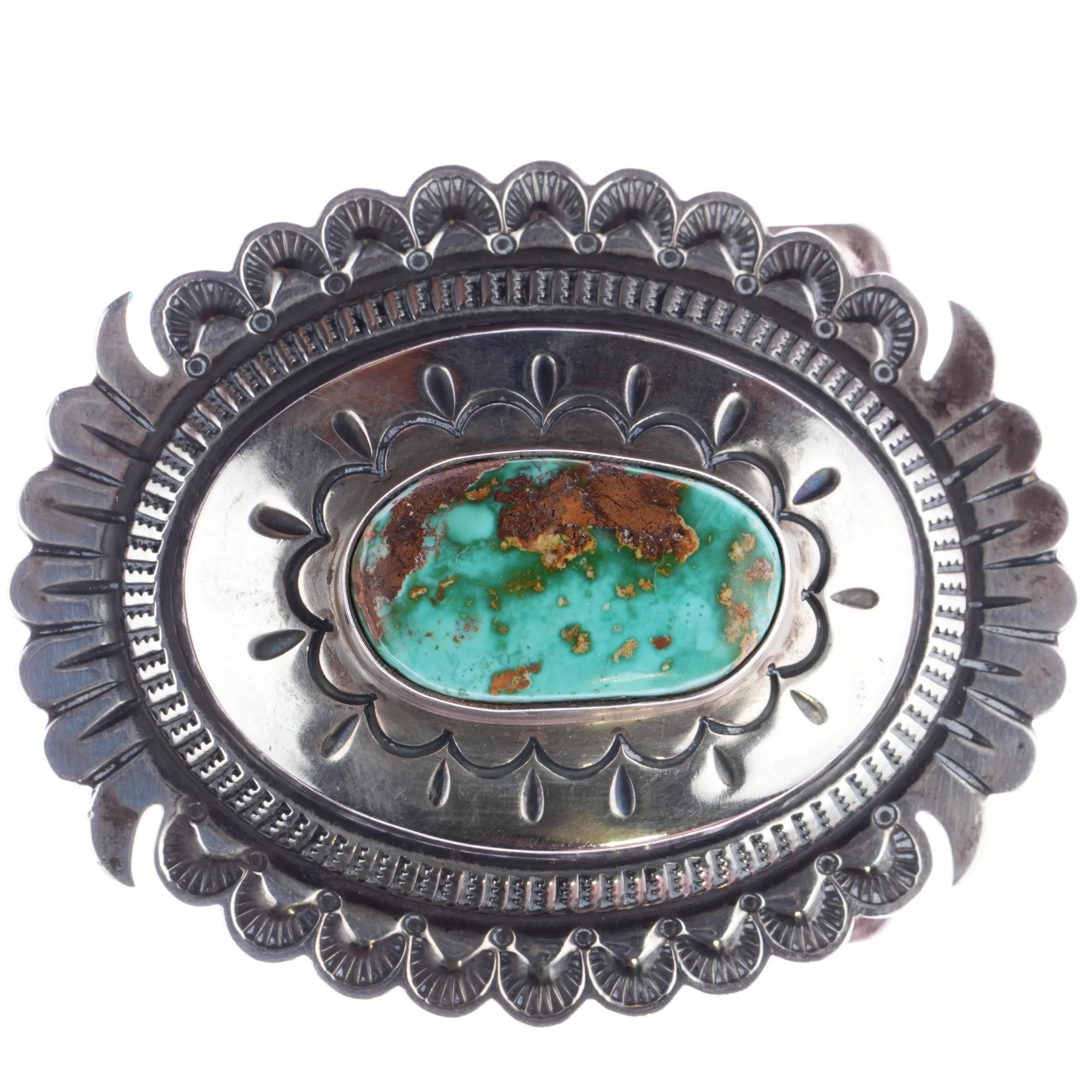 Curtis Pete for Rocking Horse Ranch Stamped silver Royston turquoise belt buckle. I believe this is unworn. Amazing workmanship, not a large buckle. Weight and measurements in pics. Fully functional with some expected wear, good condition with no significant issues.