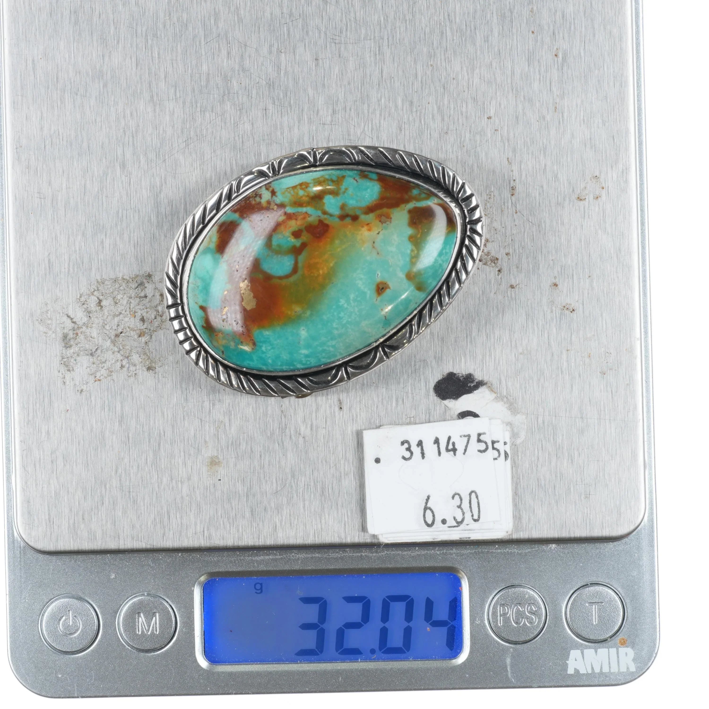 ED Retro Southwestern sterling silver lg stone Royston turquoise belt buckle