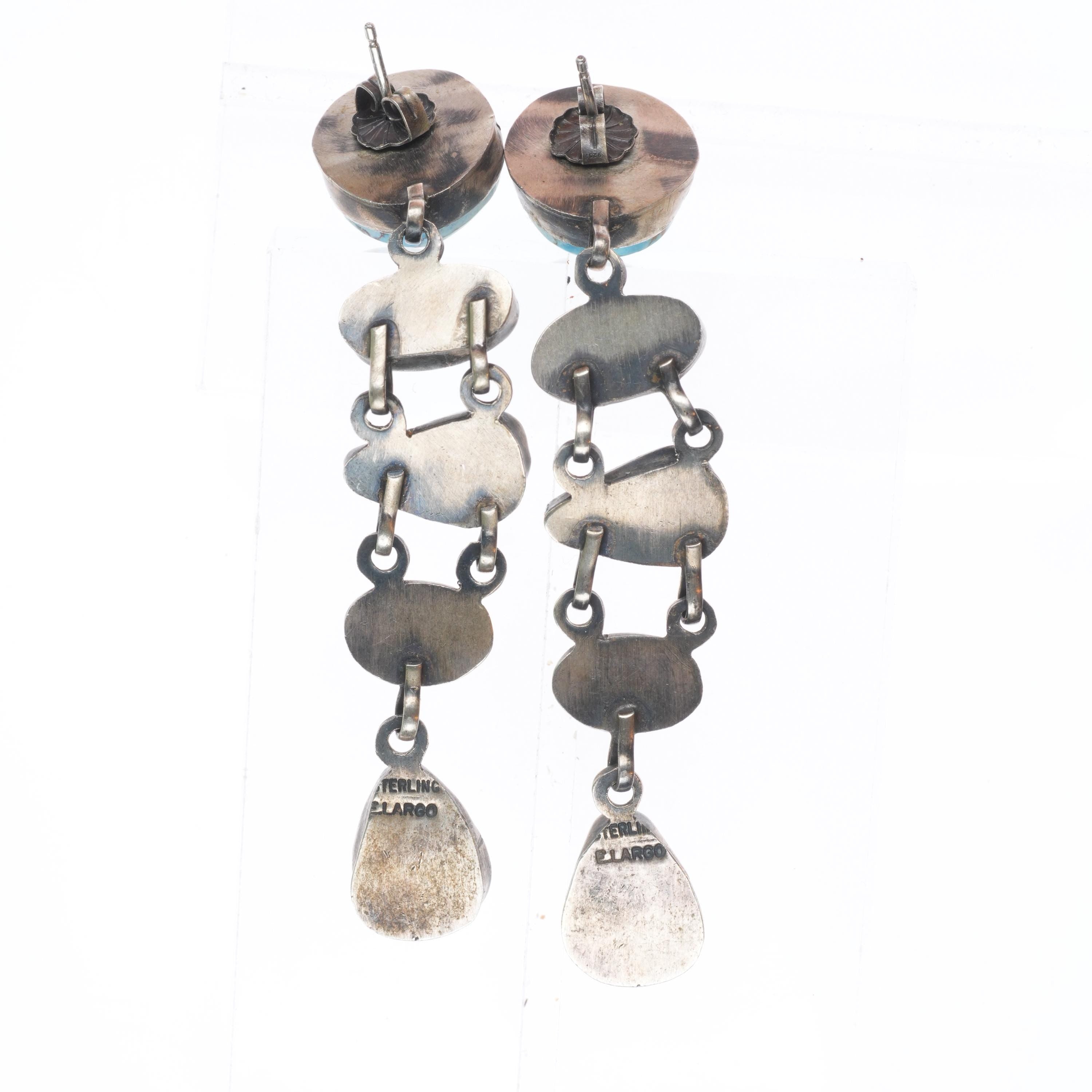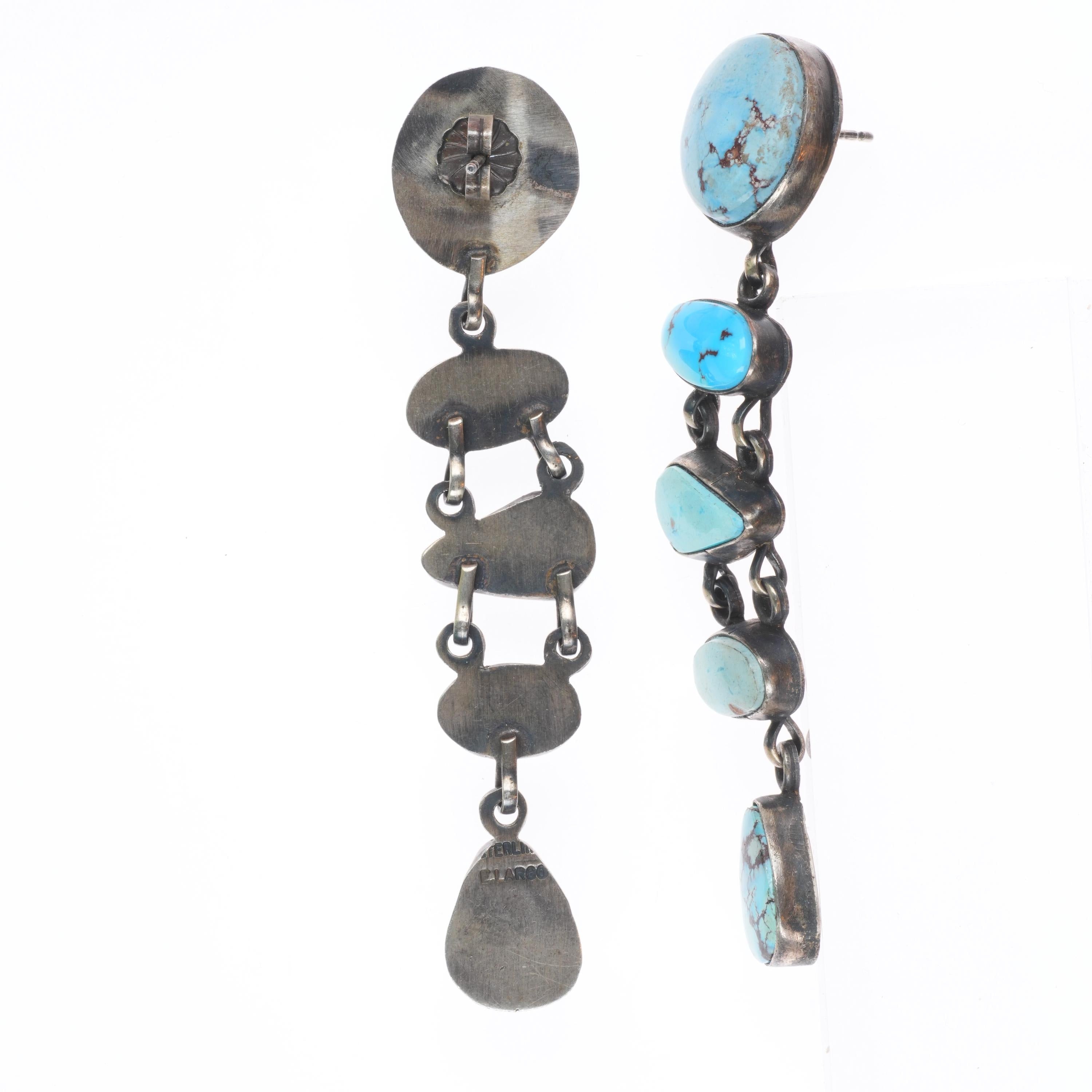 Elanor Largo Navajo sterling silver Golden Hills turquoise long dangle earrings