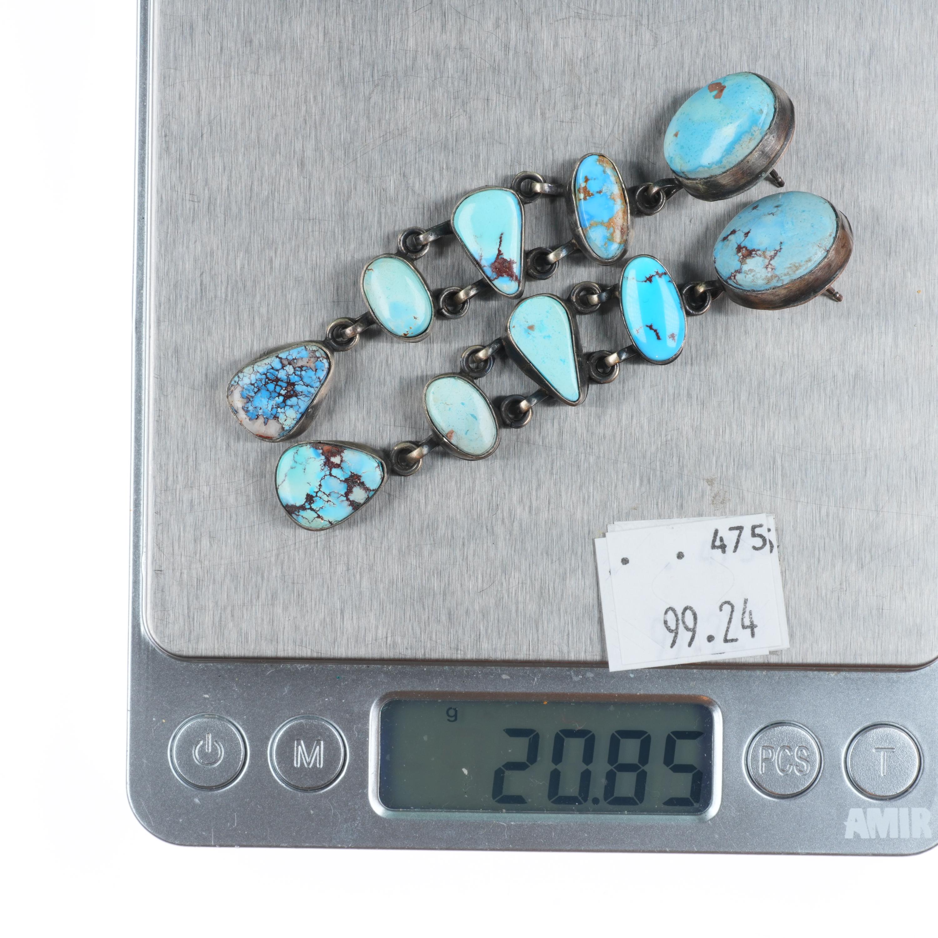 Elanor Largo Navajo sterling silver Golden Hills turquoise long dangle earrings. Great earrings with no issues, tested and guaranteed solid sterling silver, any marks detected, weight, and measurements will be shown in the pictures. Circa last quarter of the 20th century.