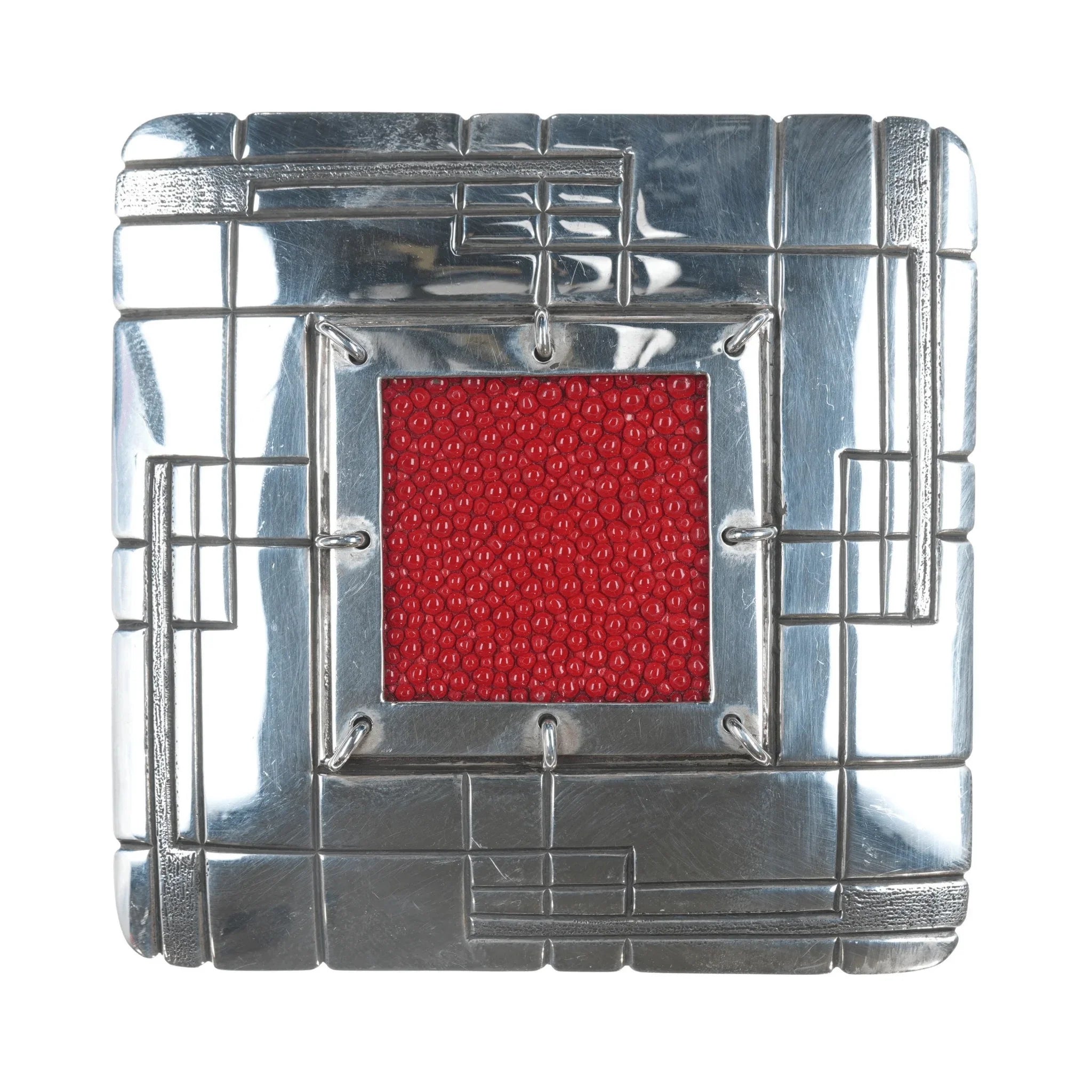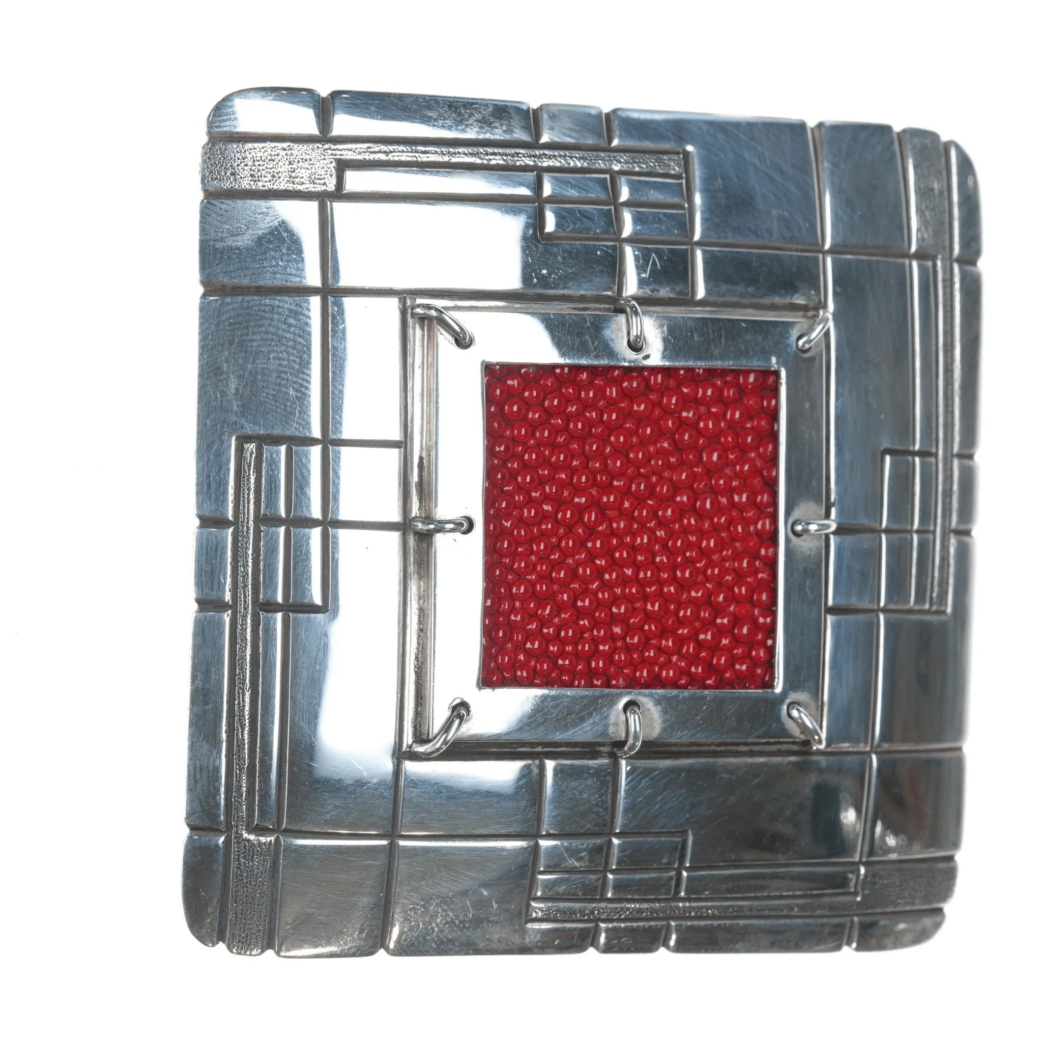 Ernest Thomas Bilagody Sr Navajo Sterling and Stingray skin belt buckle 3" square, fits a 1.5" belt, appears unworn. 87.5 grams.