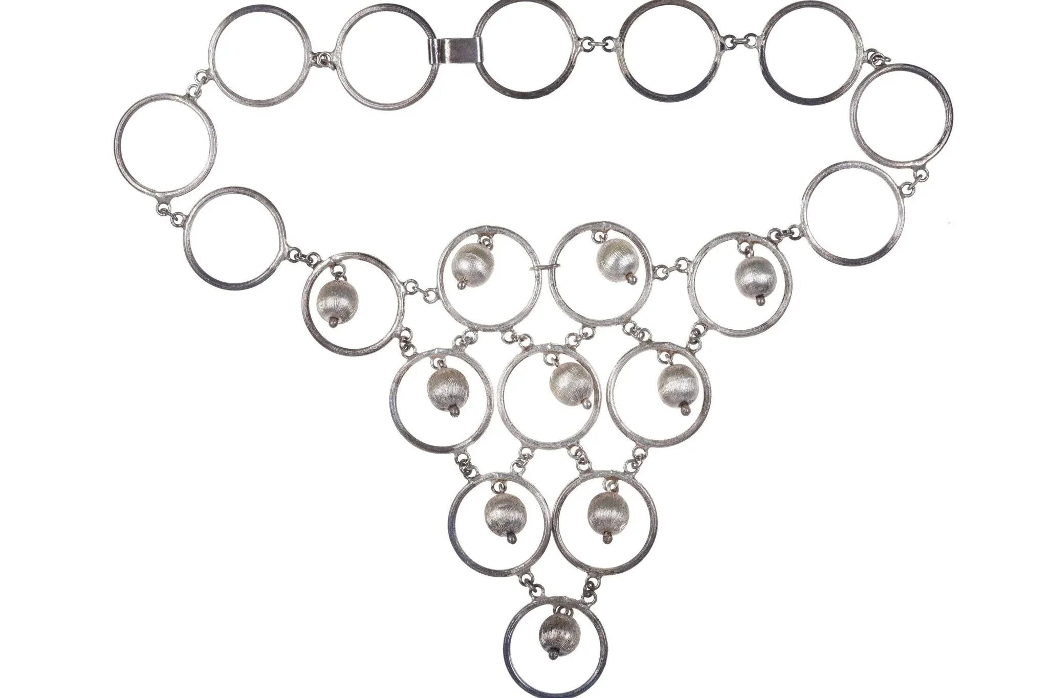 16" Vintage Mexican Sterling necklace and brooch. Simply marked Made in Mexico, (tested) sterling. 1.25" brooch, 16" long necklace 48.2 grams total