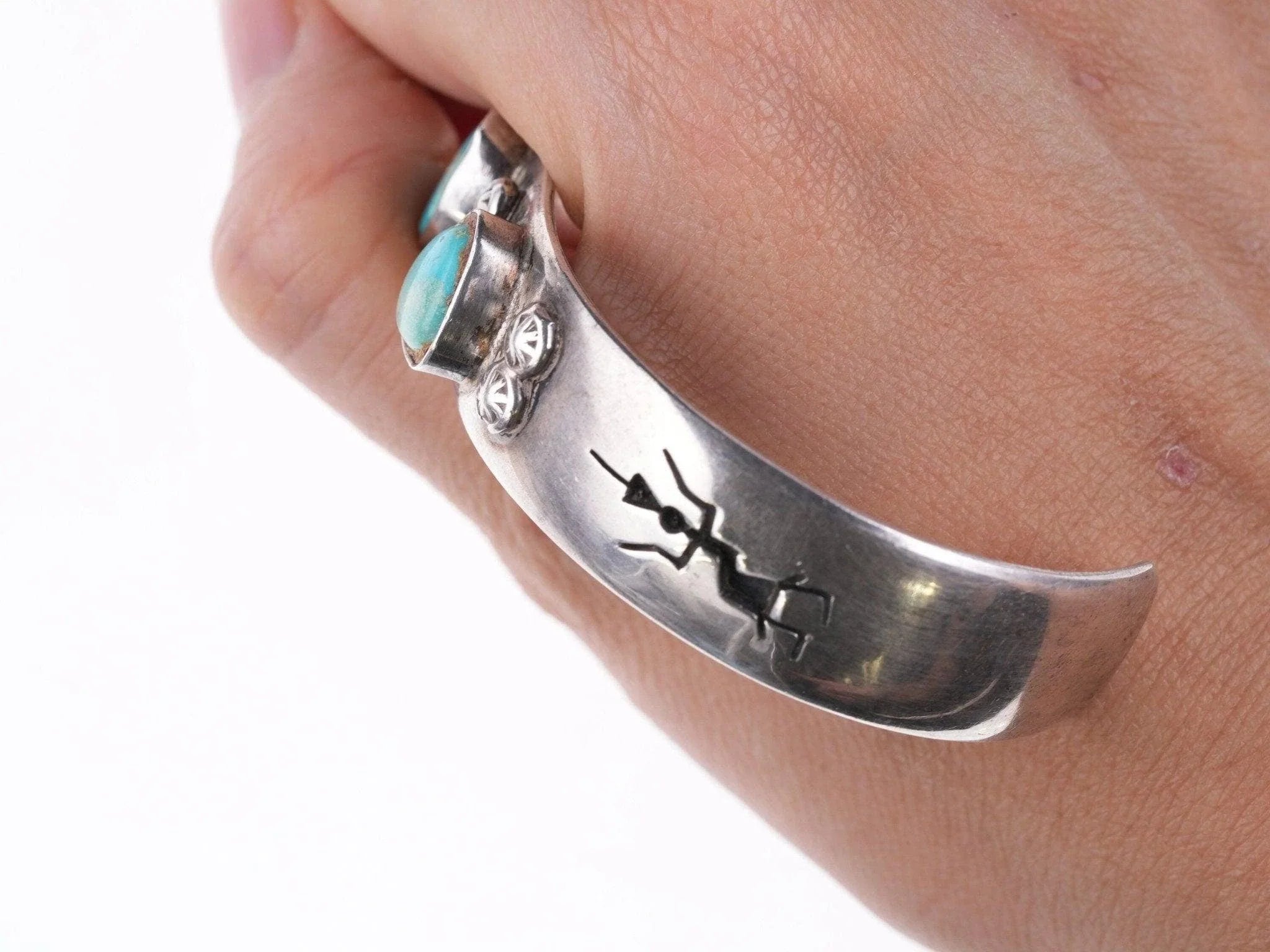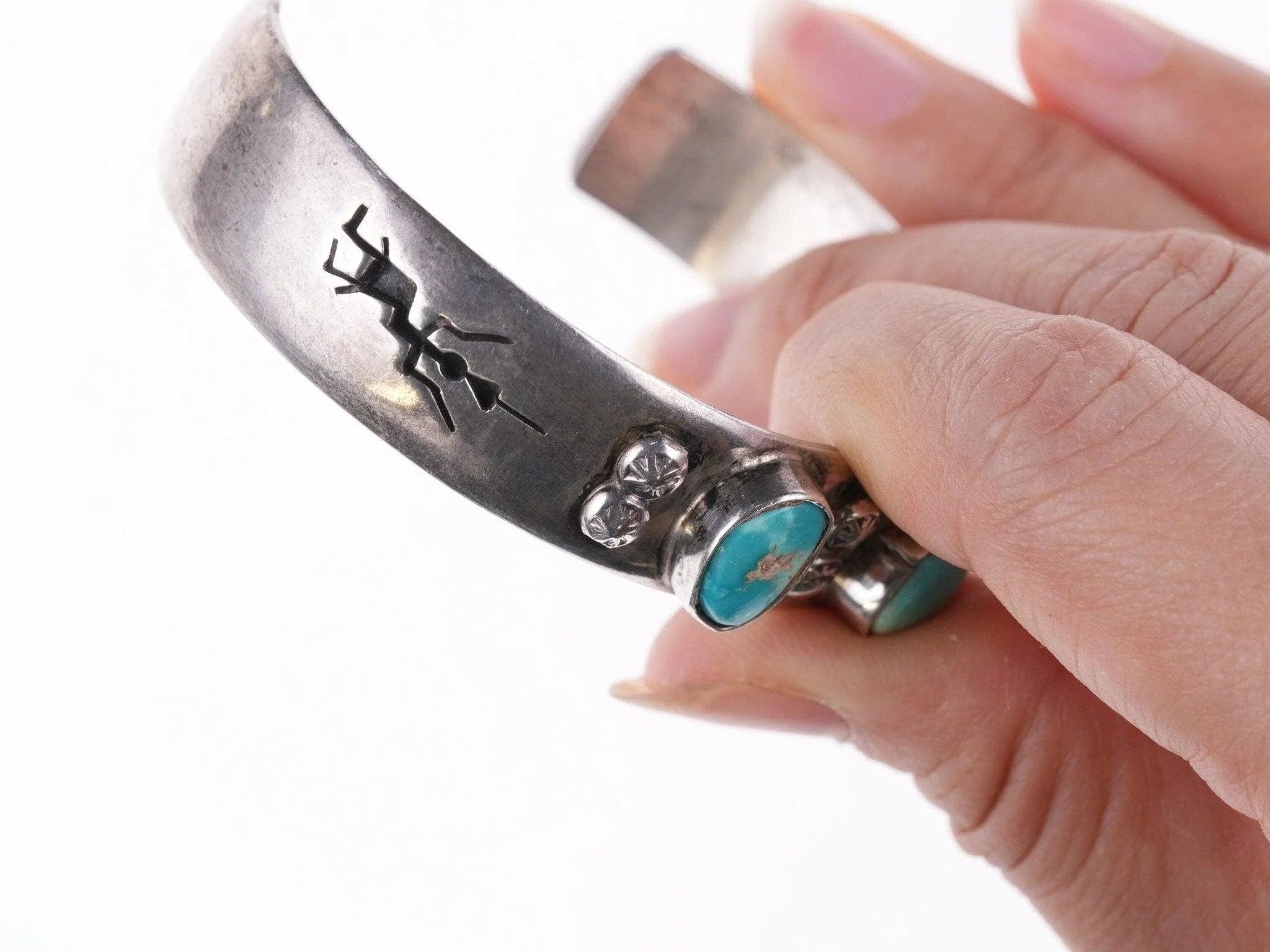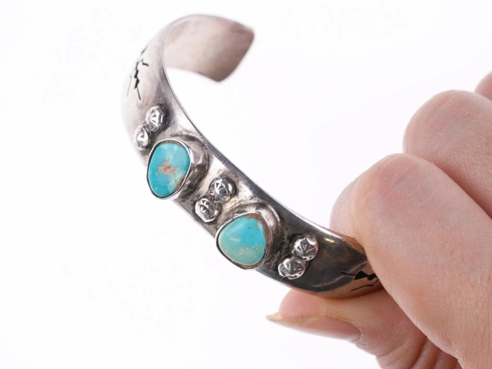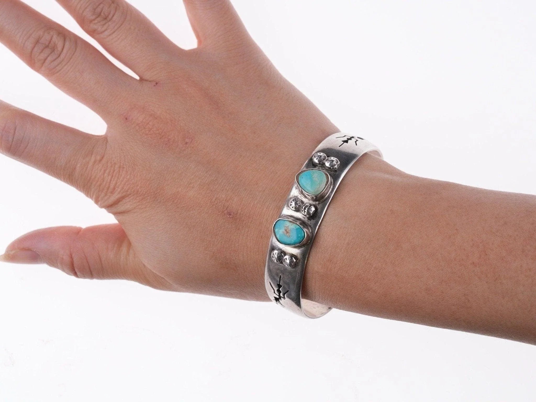 6.75" Vintage Navajo shadowbox silver turquoise cuff bracelet