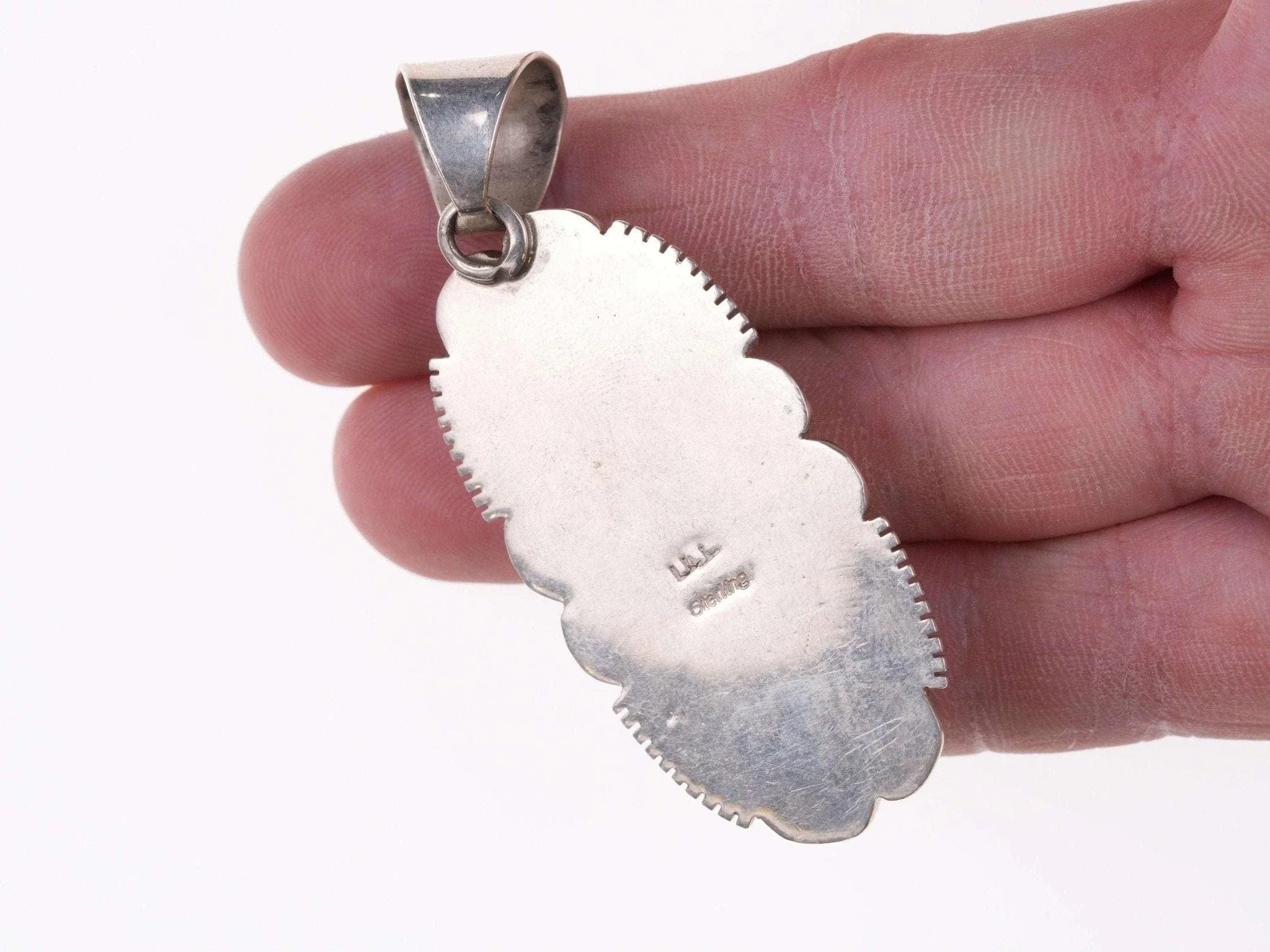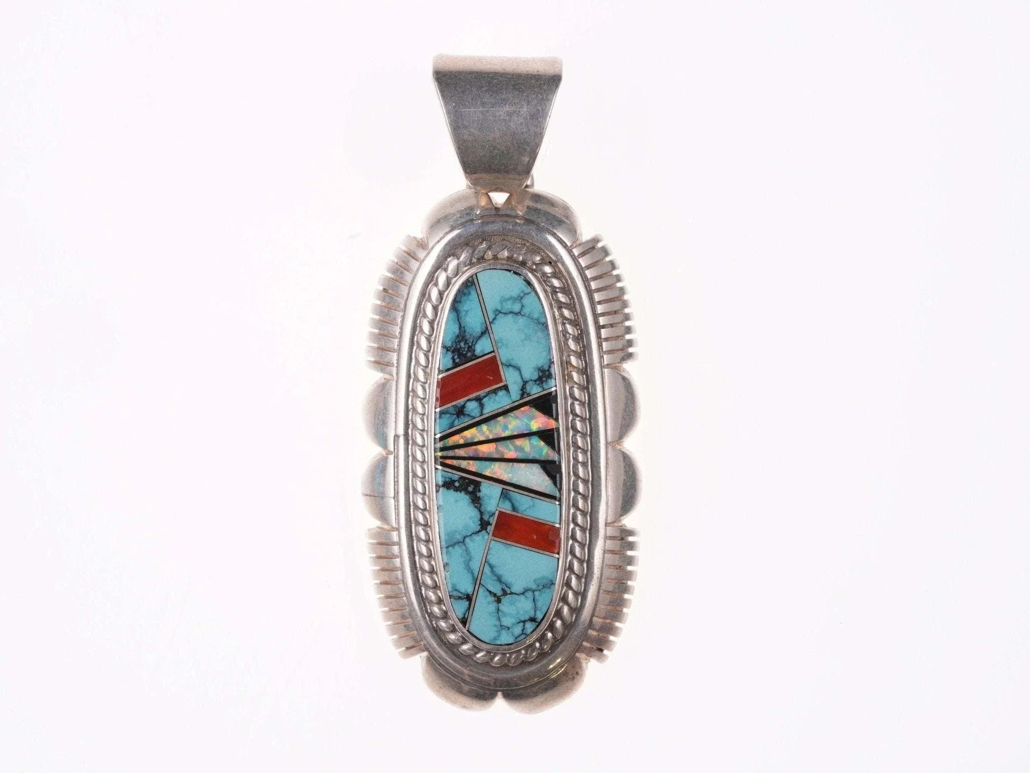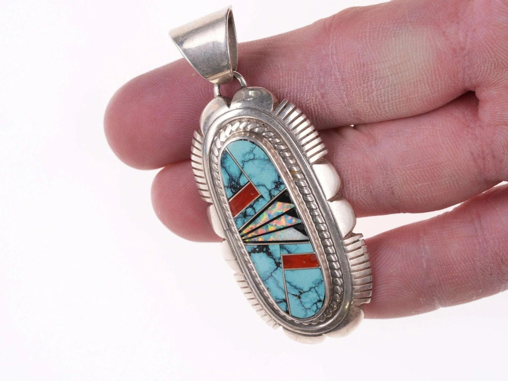 Large Native American Sterling Multi-stone channel inlay pendant 2 5/8" with bail x 1 1/8" x 34 grams.
