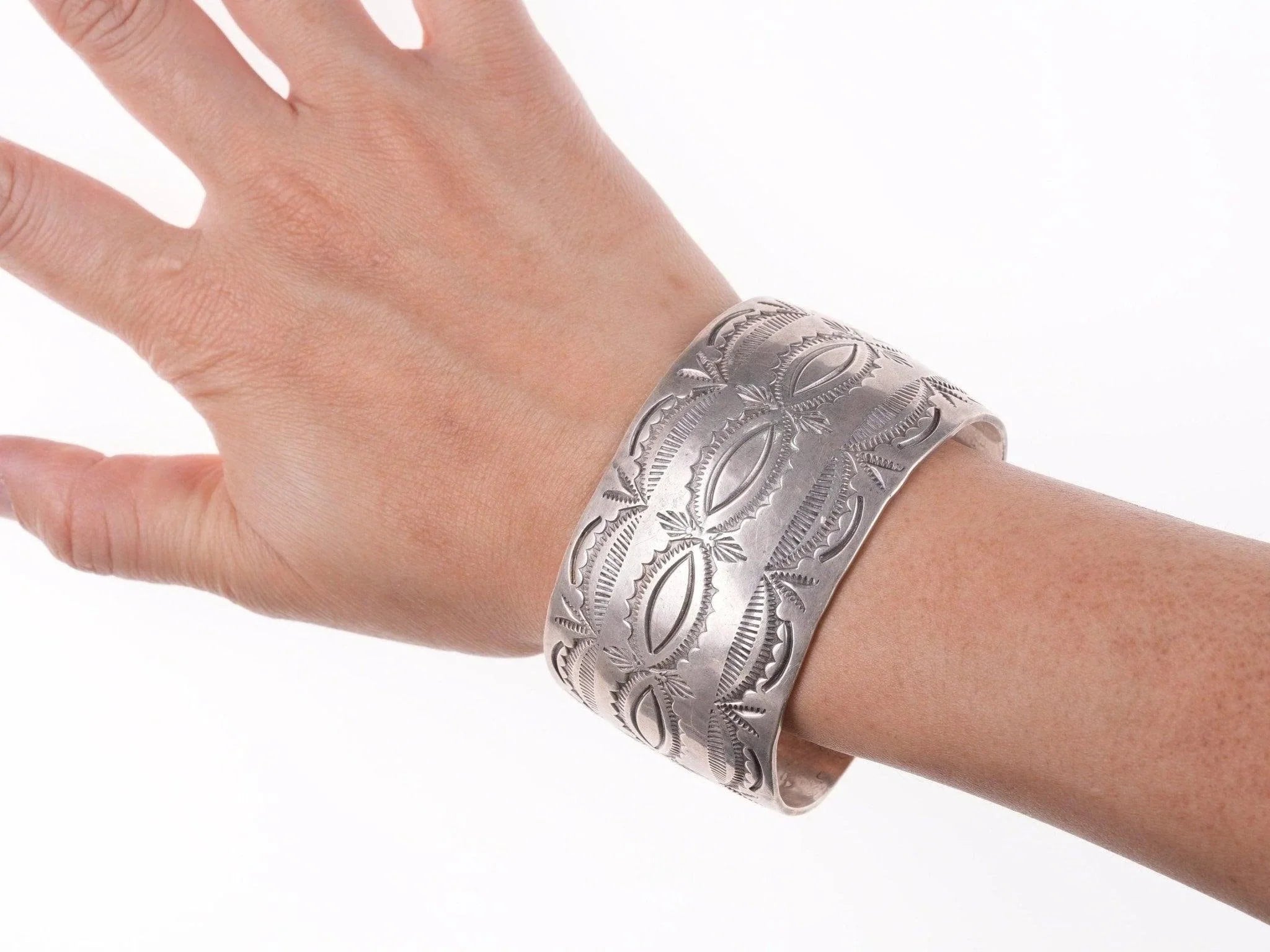 7.25" Vintage Sandoval Navajo Heavy stamped sterling bracelet