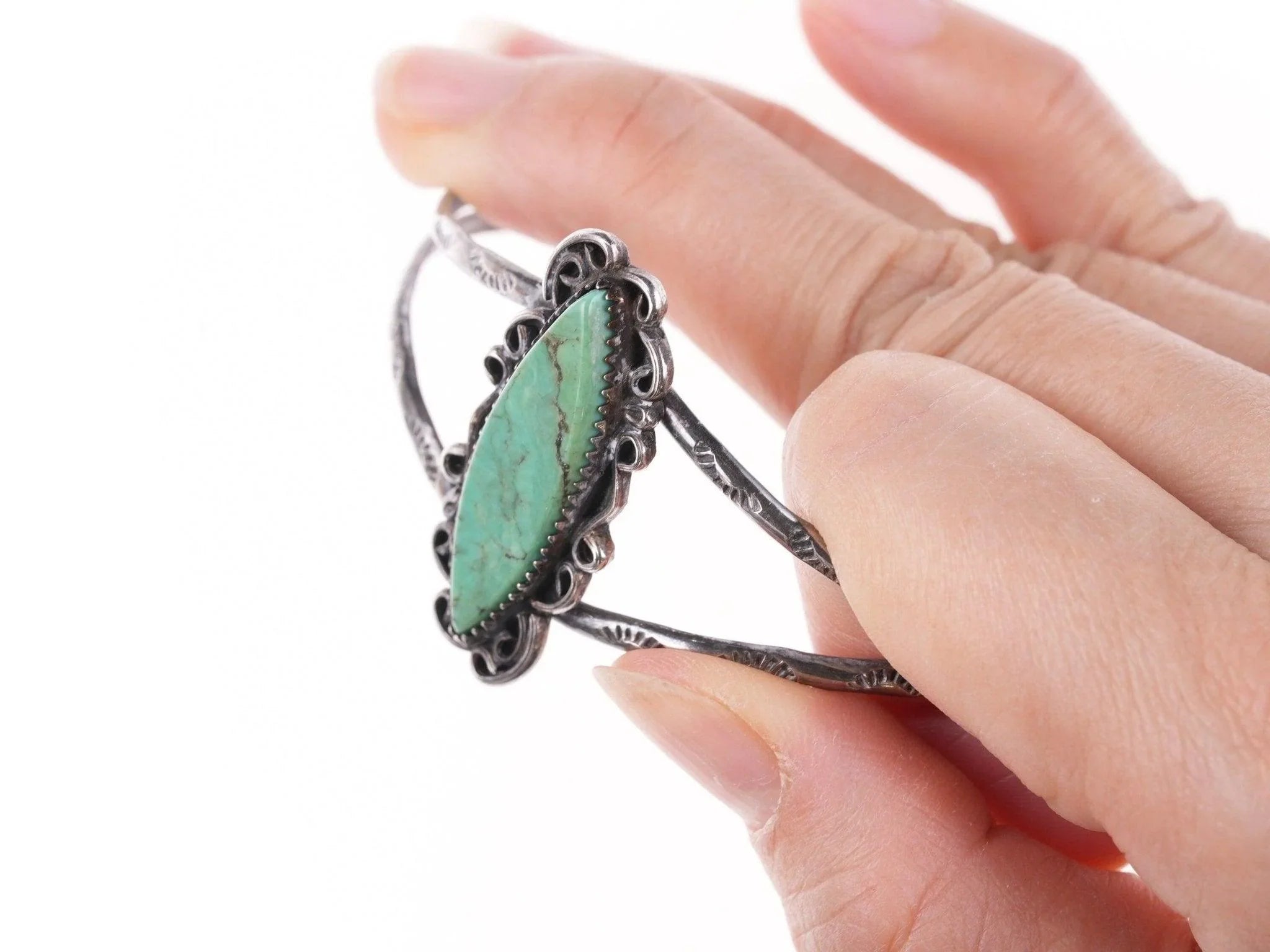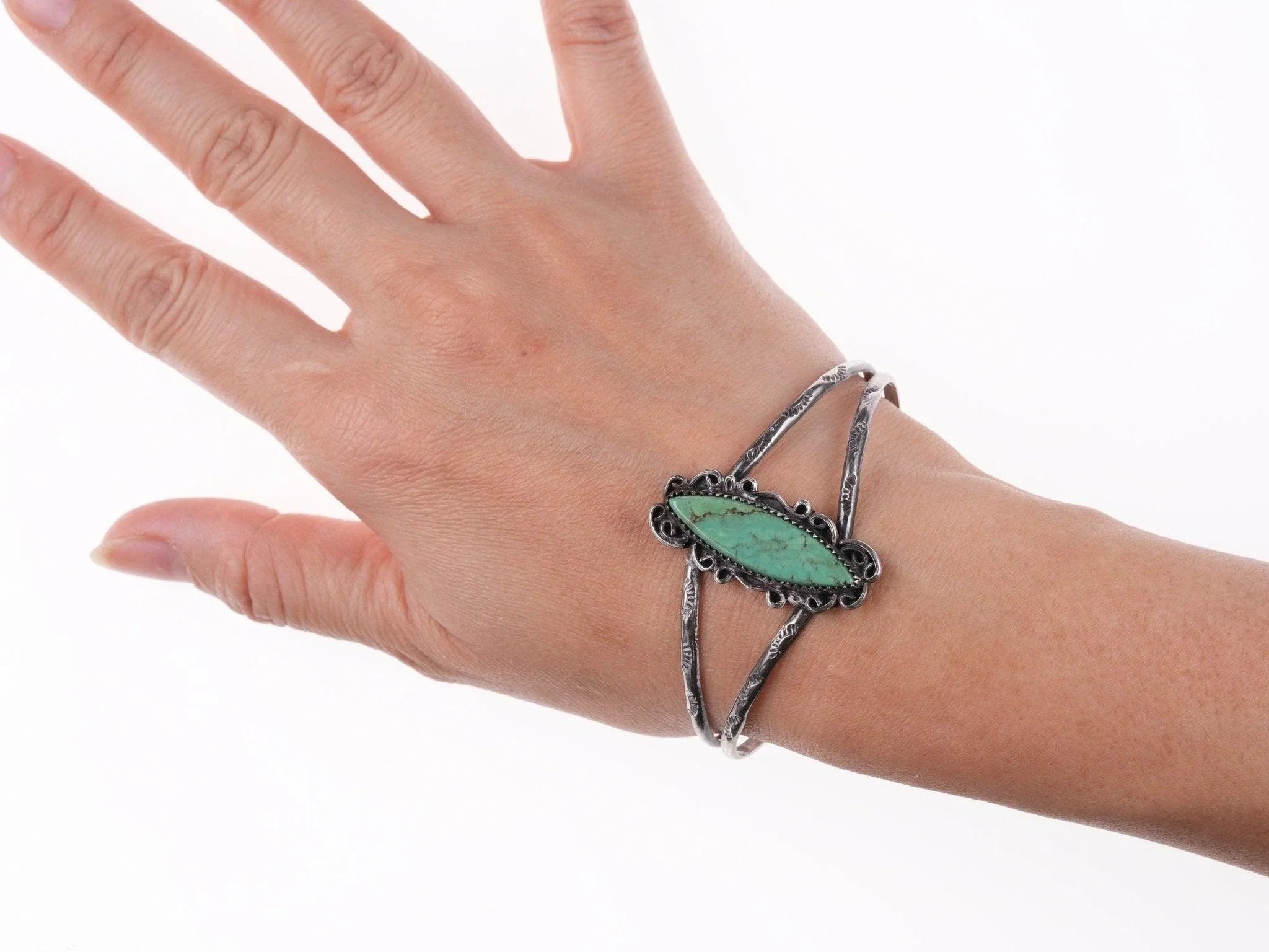 6.5" Vintage Navajo sterling and turquoise bracelet All precious metals are tested and guaranteed,