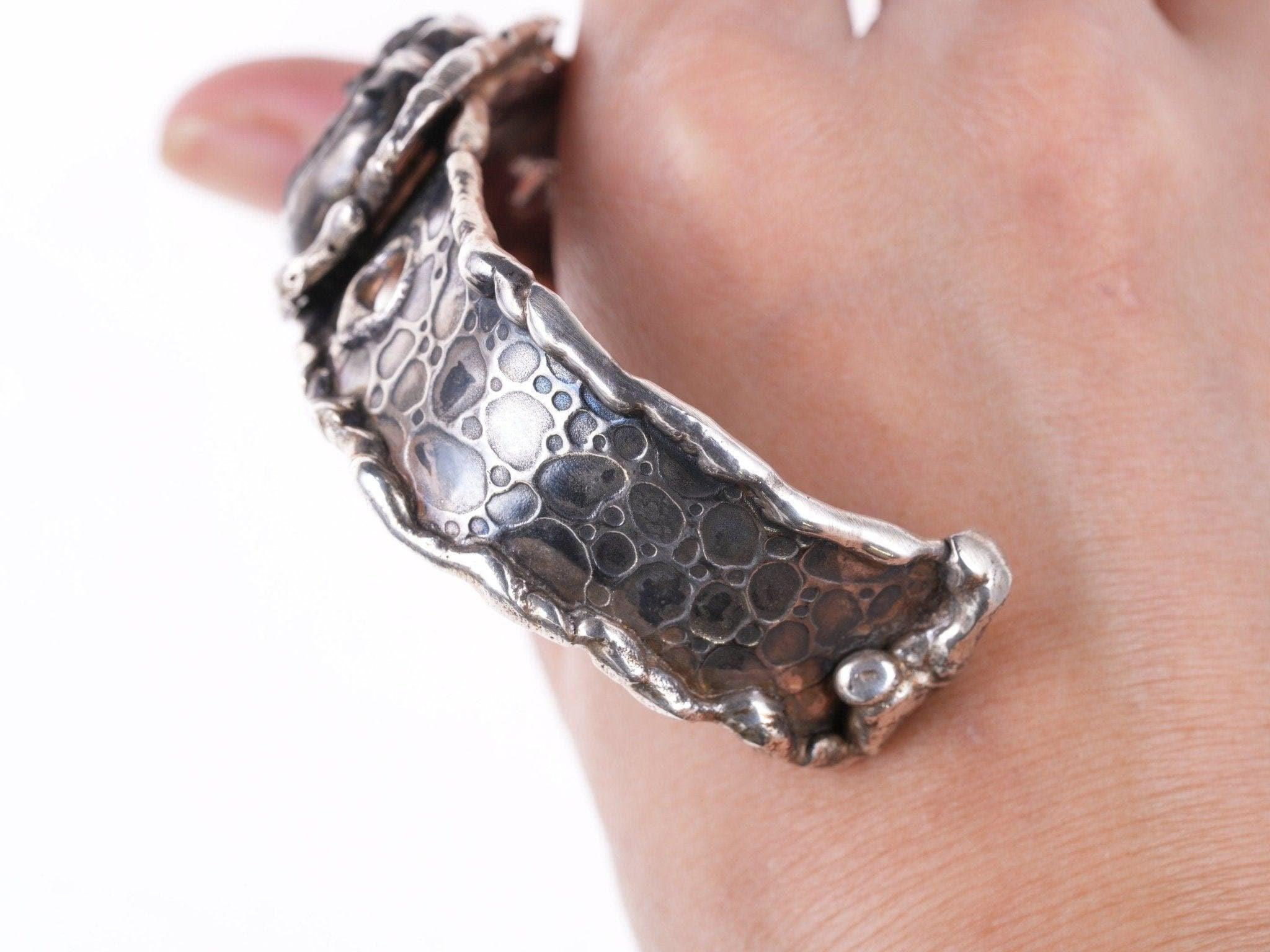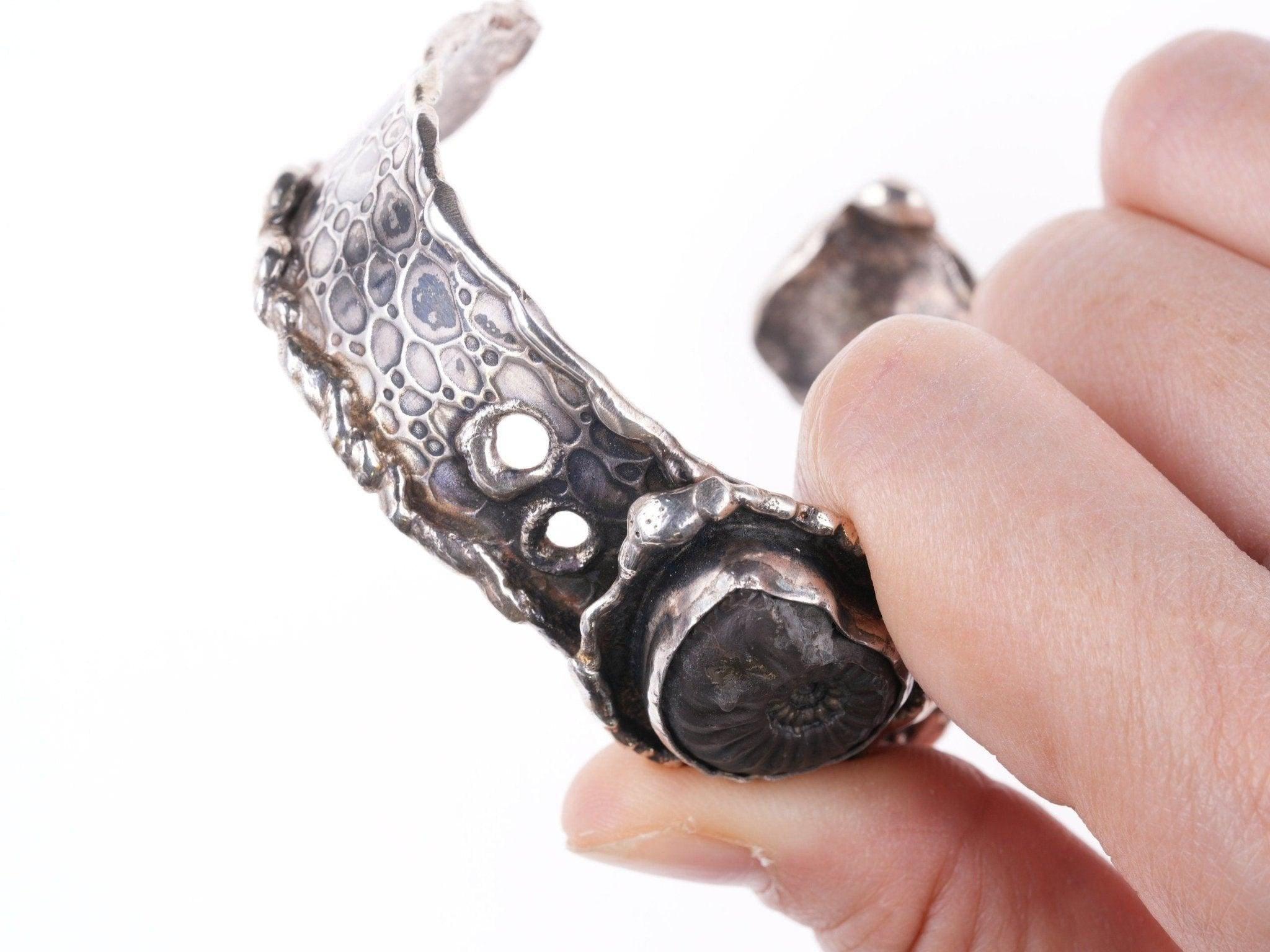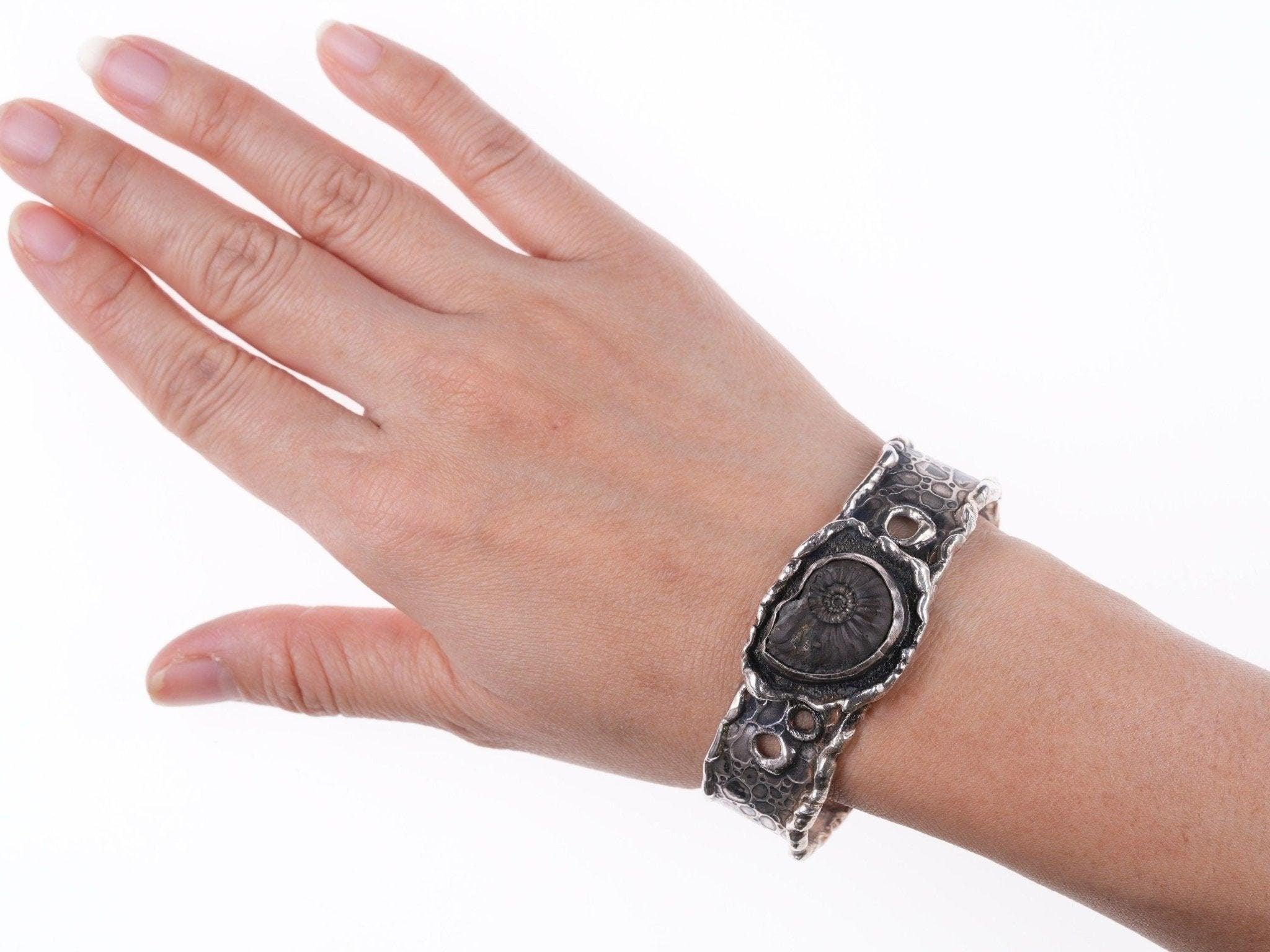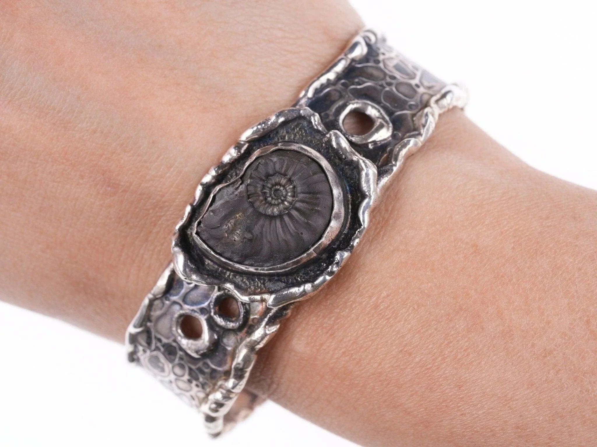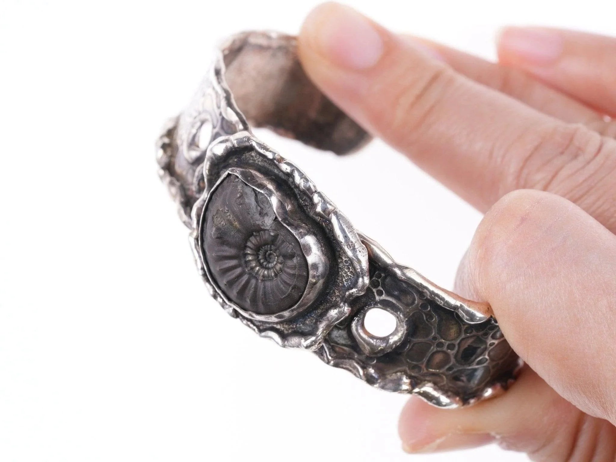 6.75" Southwestern Artisan sterling Ammonite fossil cuff bracelet