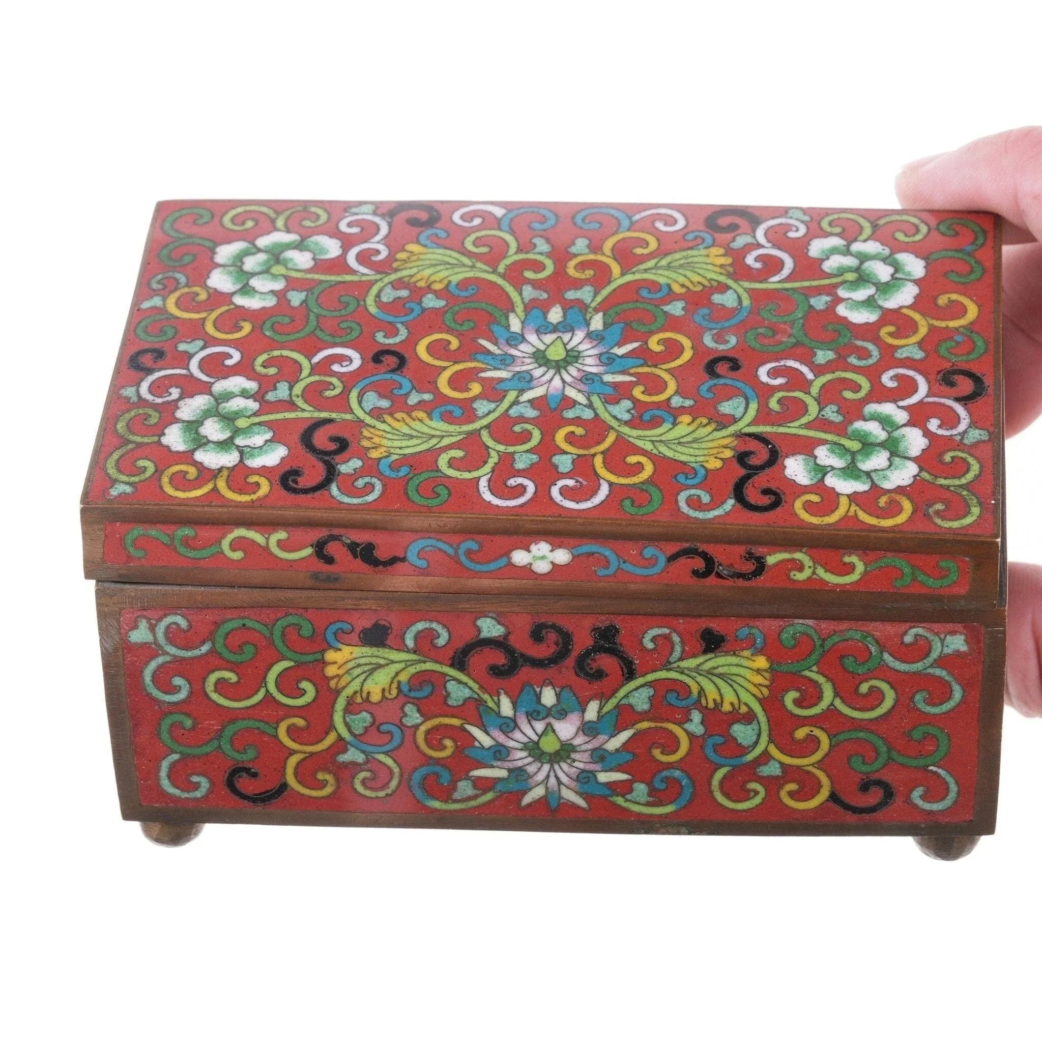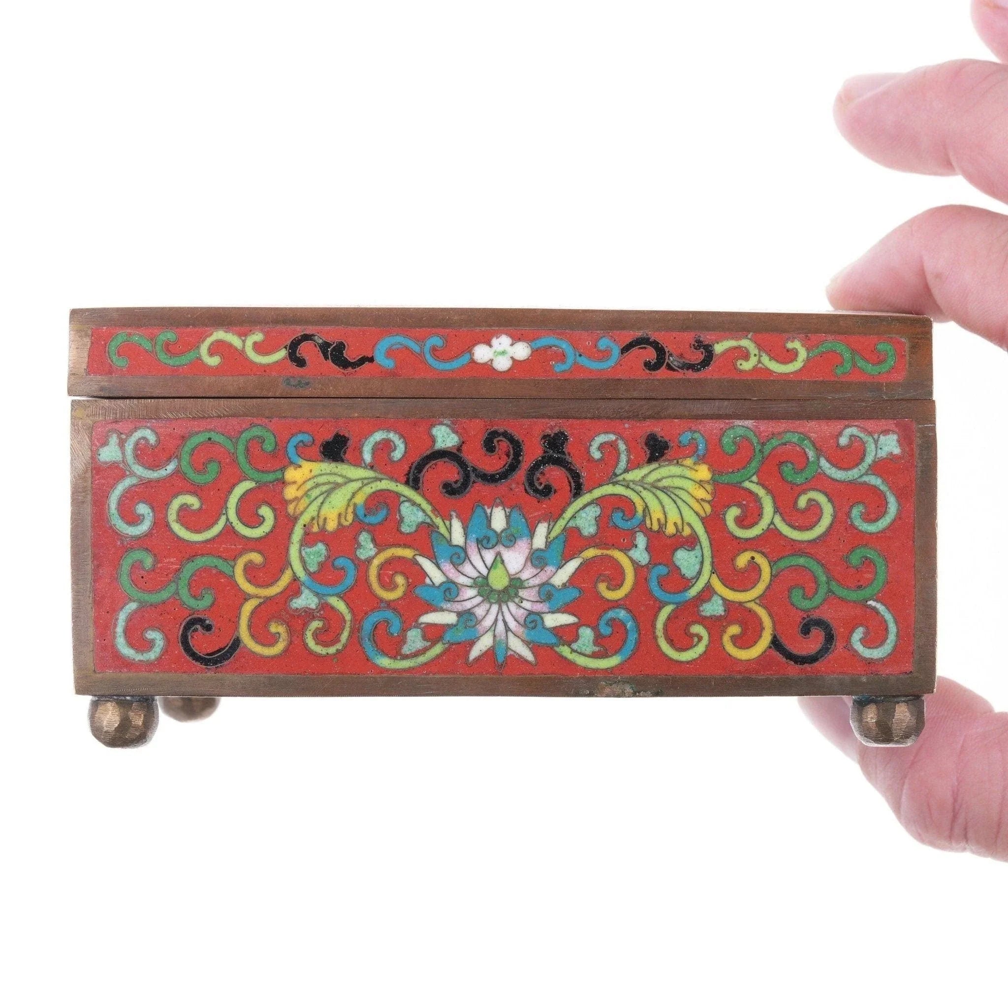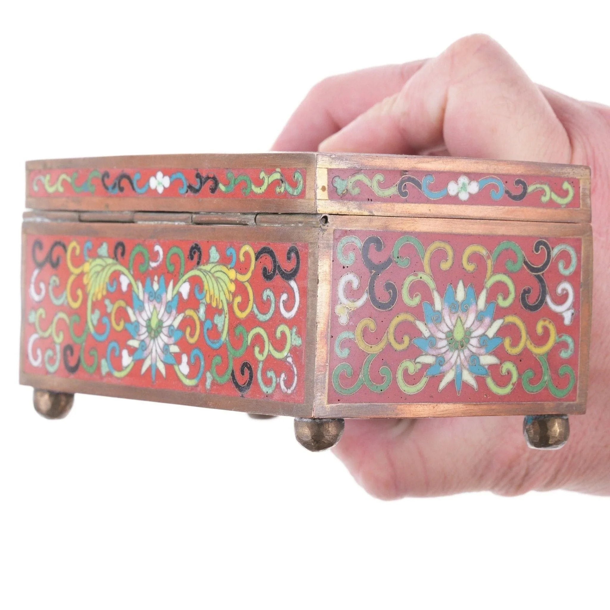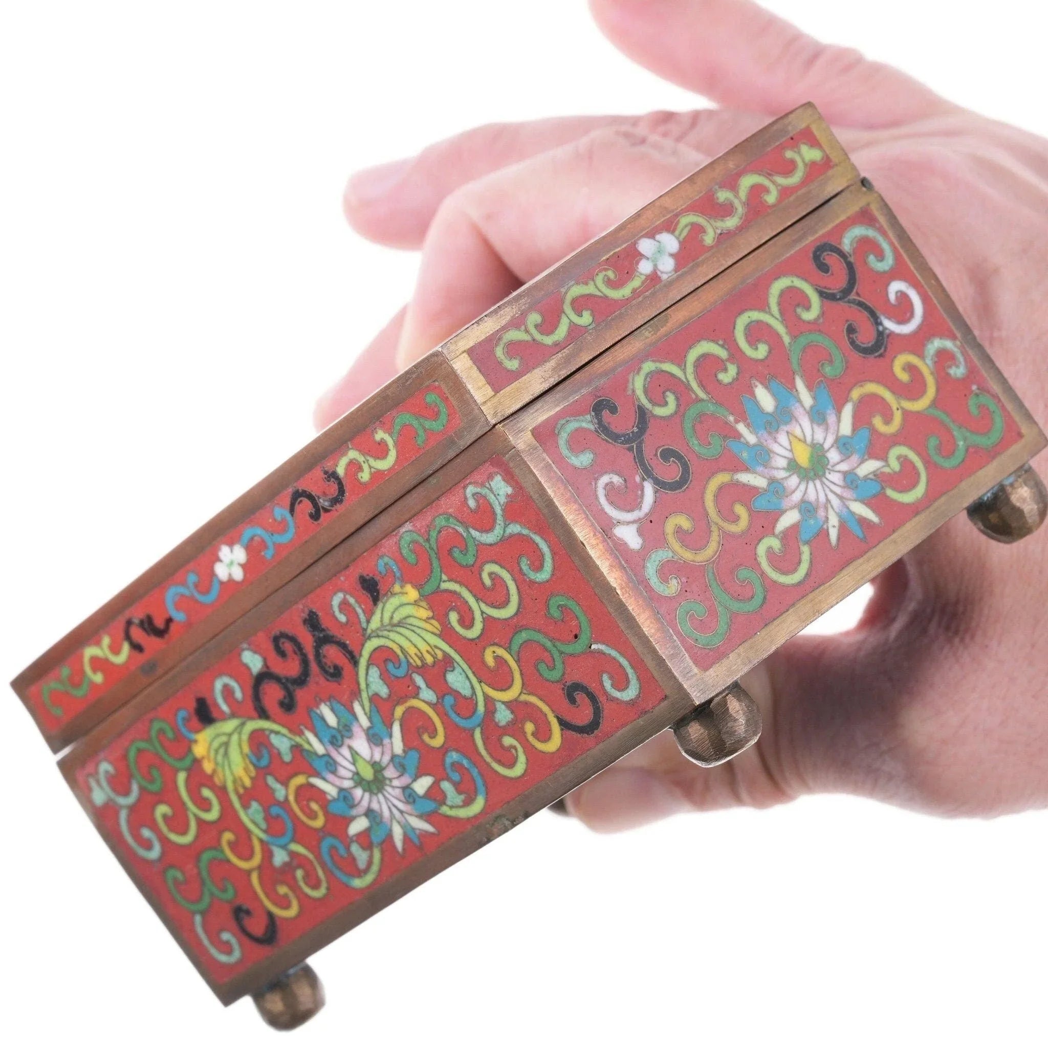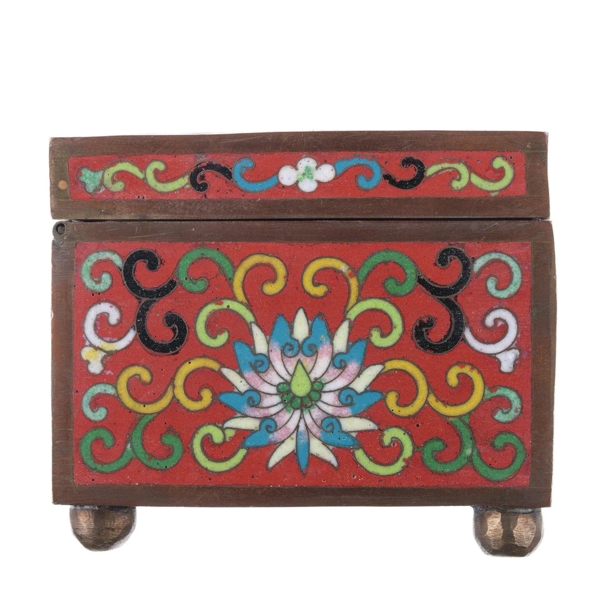 Antique Chinese Republic Period Cloisonne Box 5" x 3" x 2.5" with no damage,<br>over 100 years old. Marked in Enamel "ANIHC" which of course is China backwards.