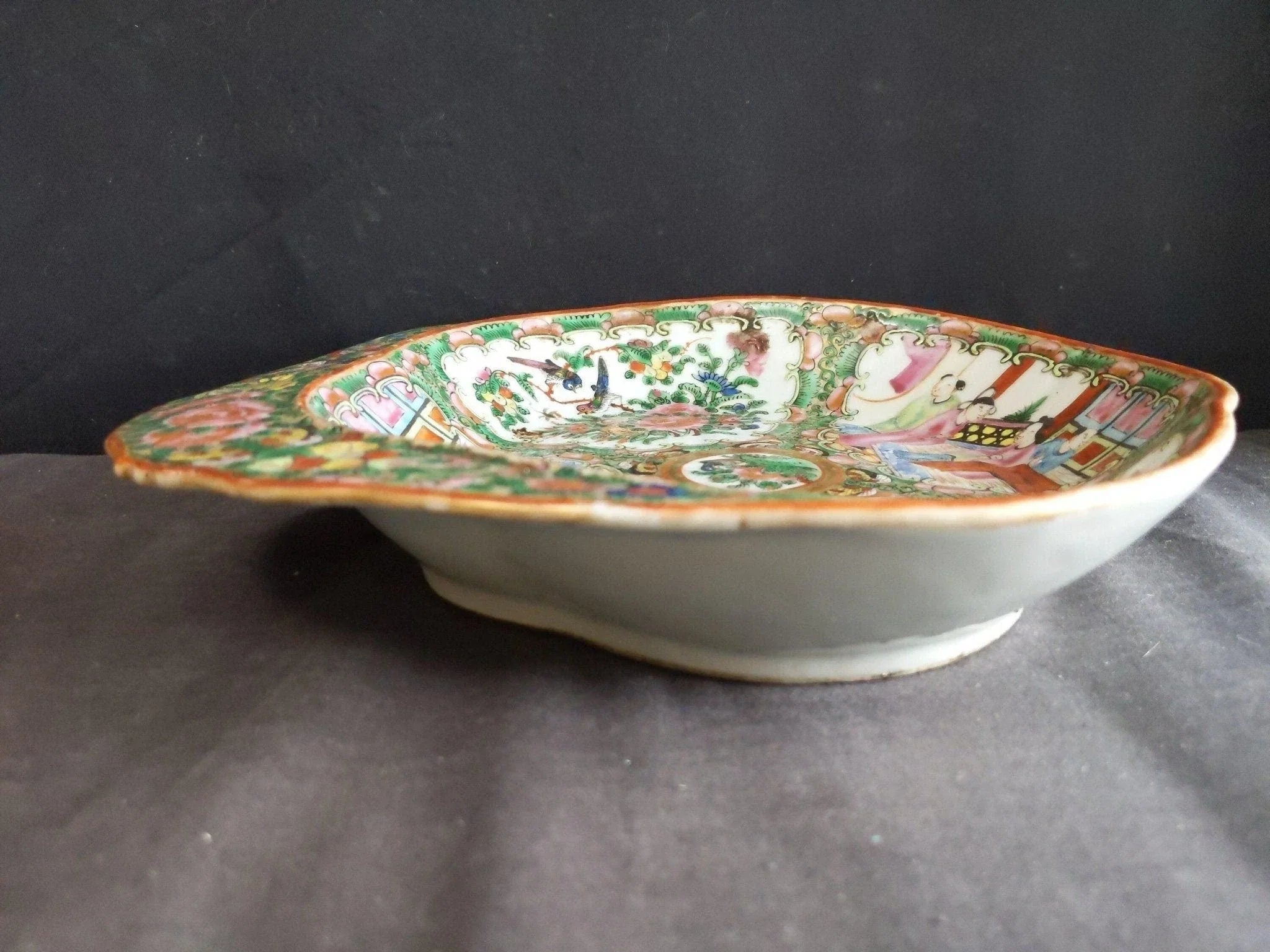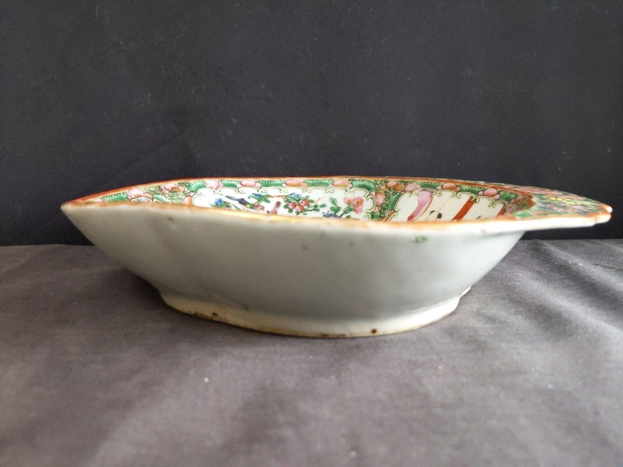 Antique Chinese Famille Rose Medallion Shrimp Dish Bowl