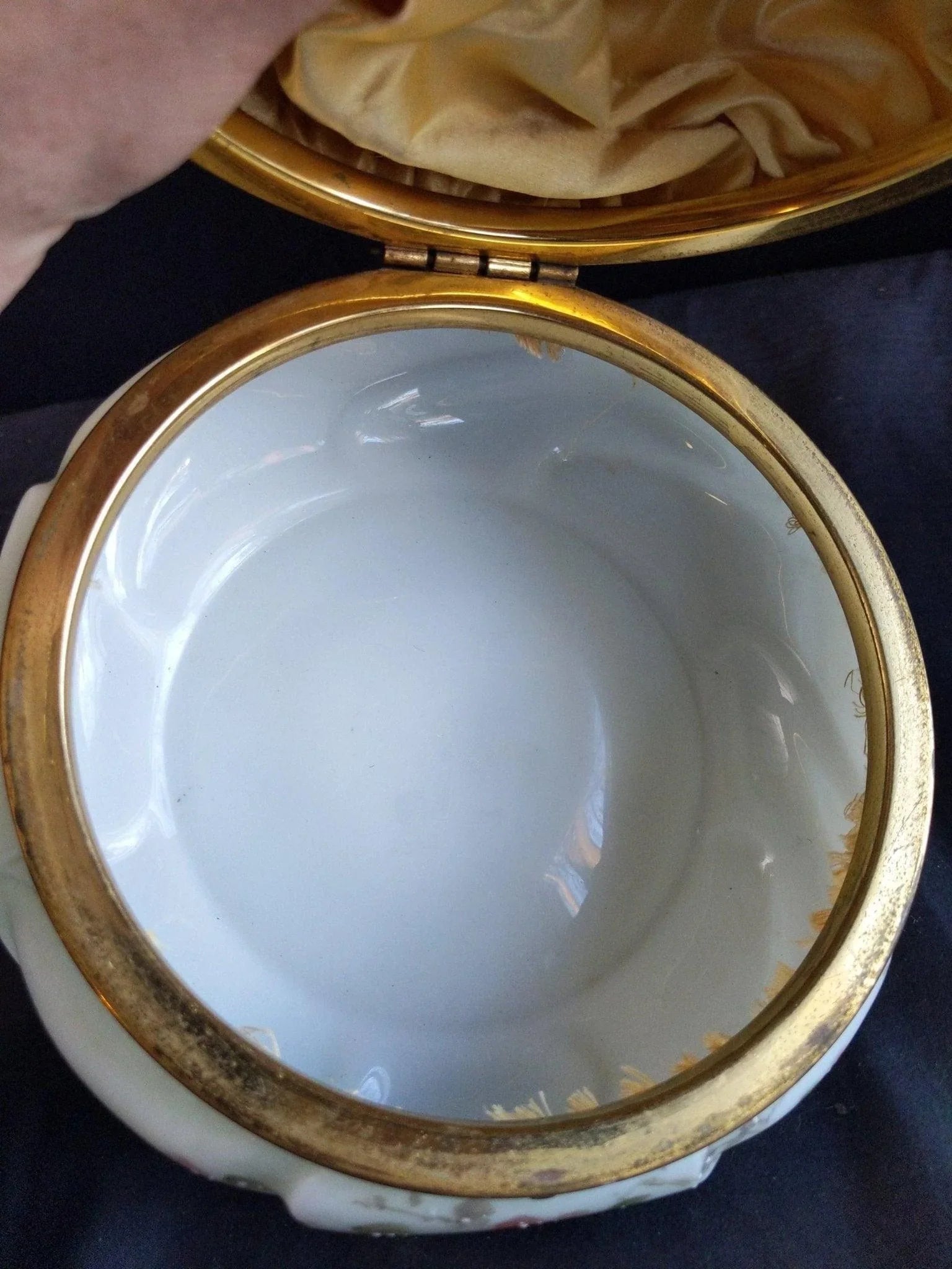 7.5" c.1890 Wavecrest Dresser Box Hand Painted Flowers 4" tall