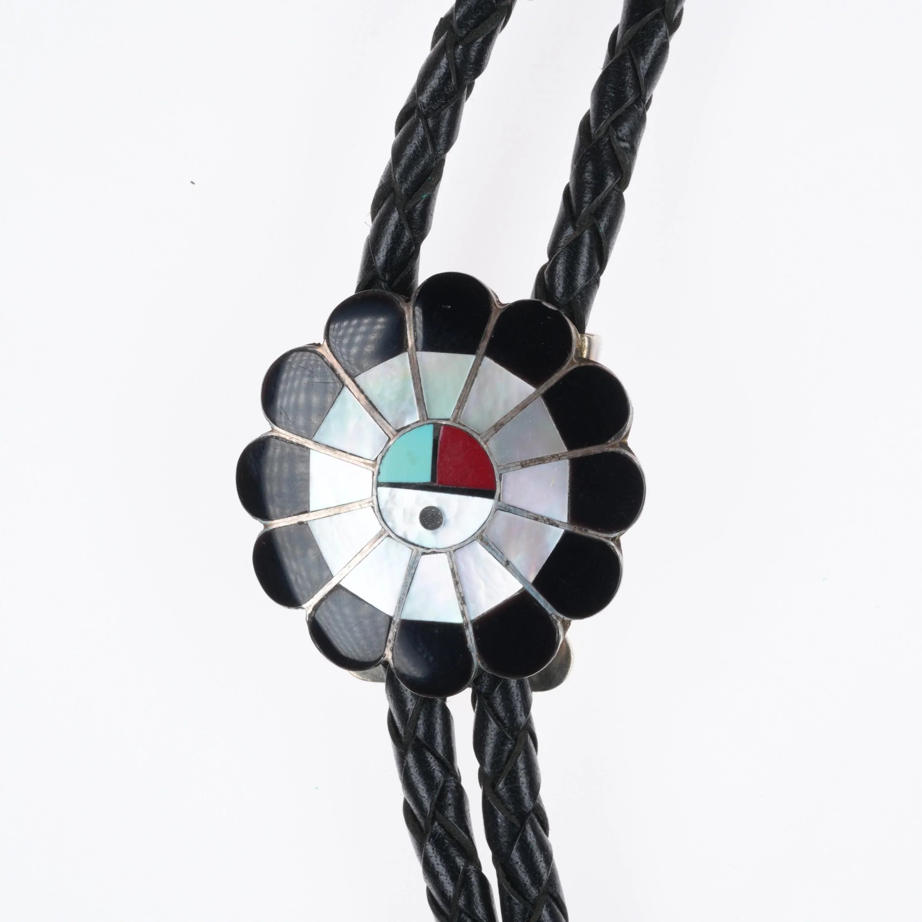 Frederick-Denise Suitza Zuni sterling silver sunface shell/stone inlay bolo tie