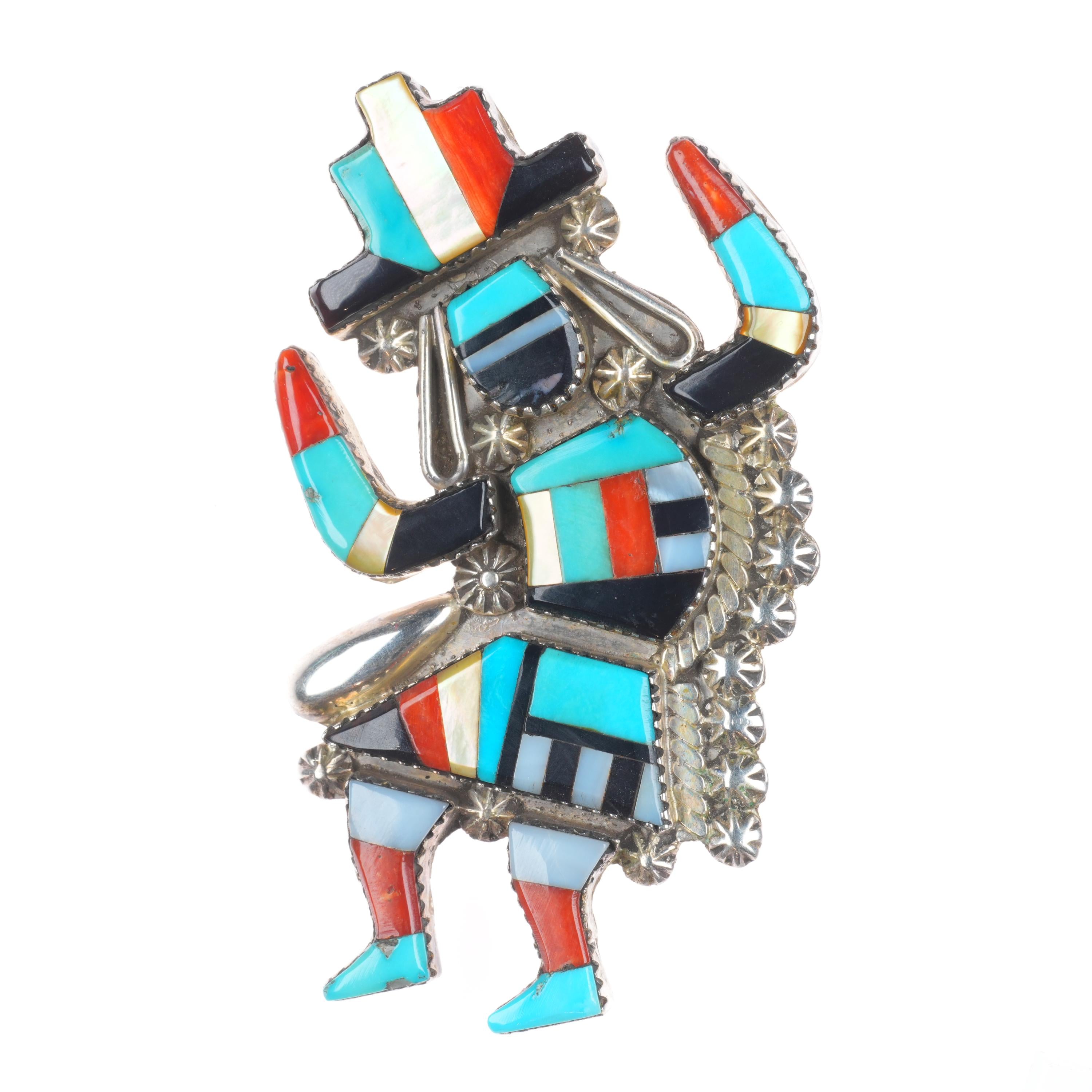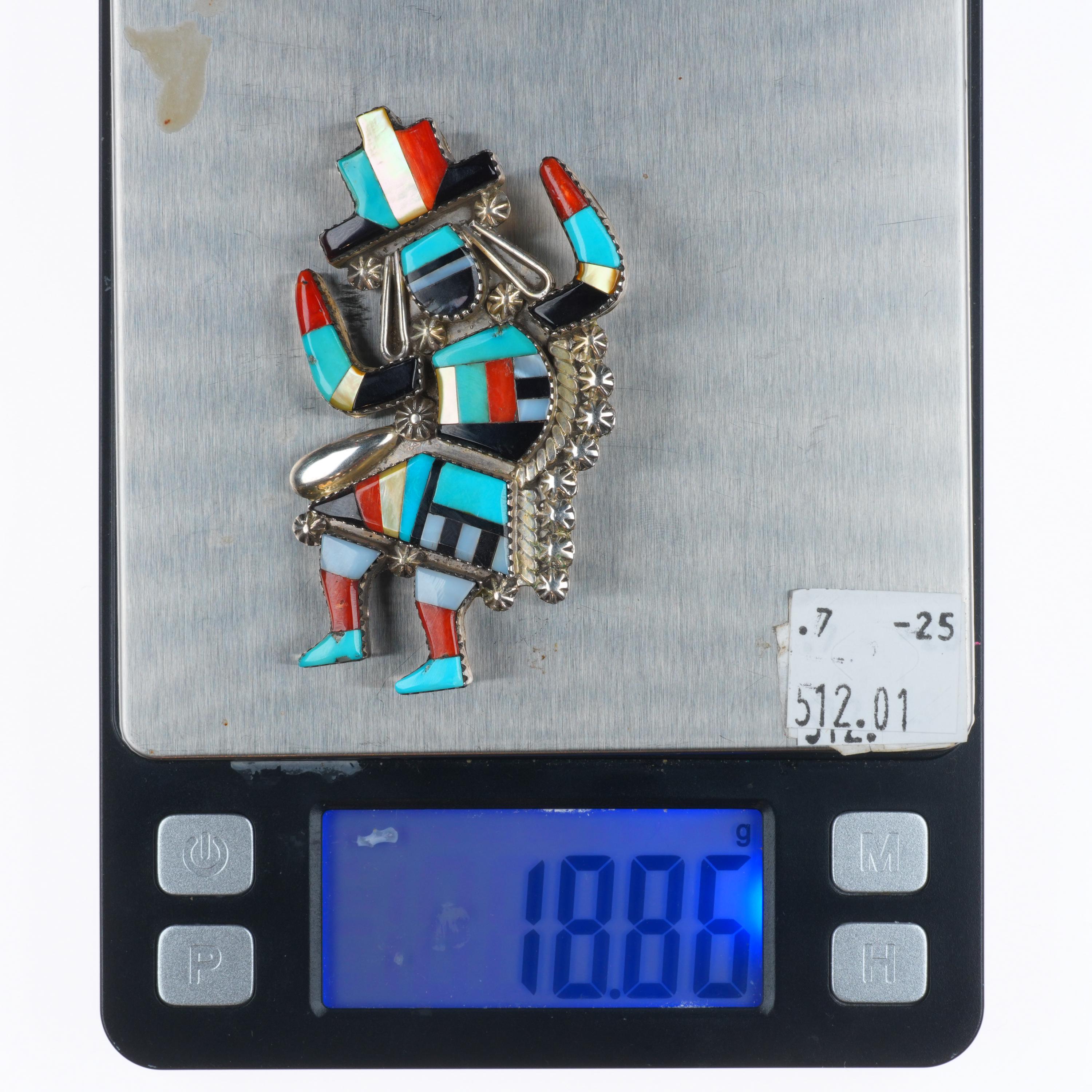 Gary-Pauline Vacit Zuni sterling silver turquoise rainbow dancer pendant/pin. Tested and guaranteed solid sterling silver with weight and measurements in pictures. Marked as shown, circa last quarter of the 20th century.