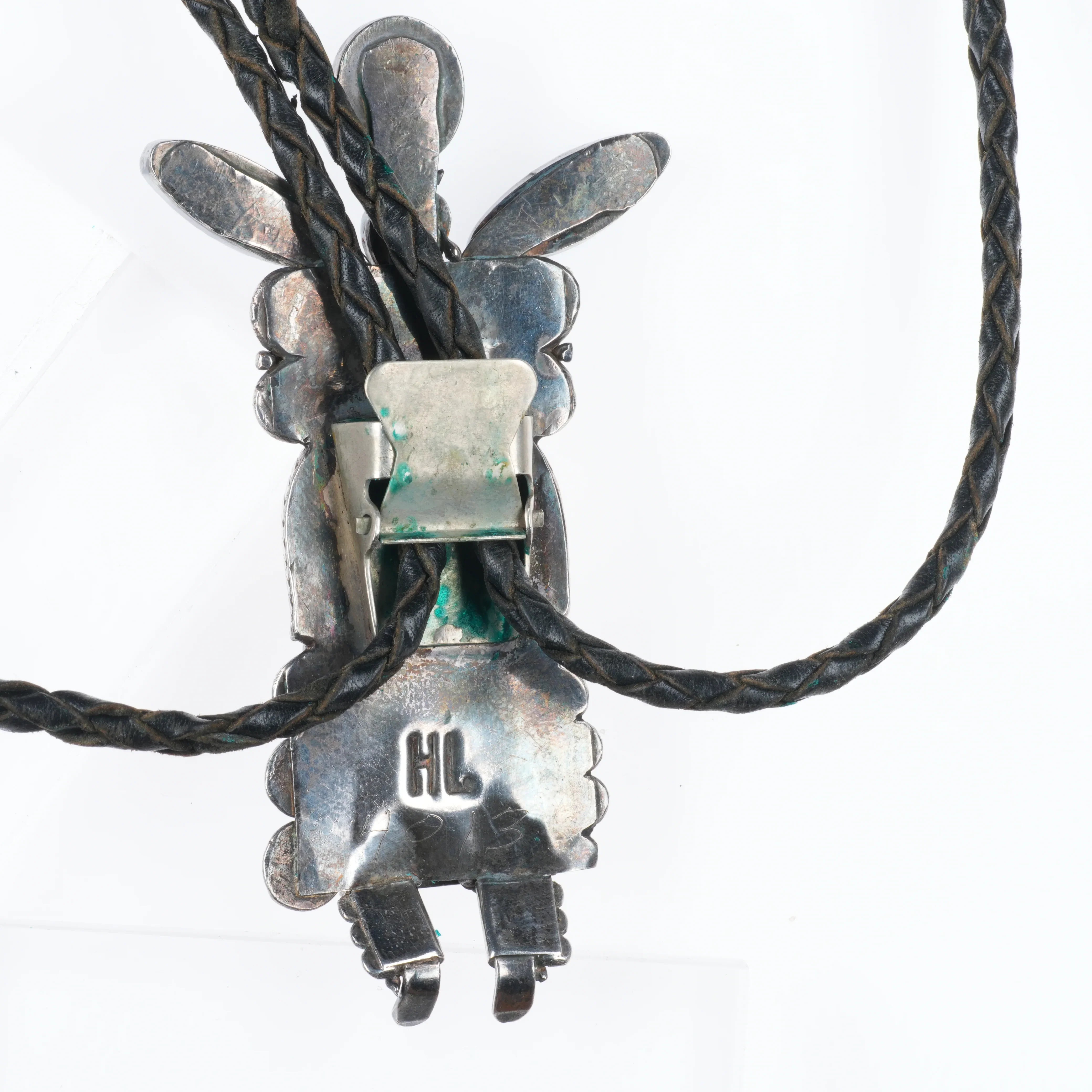 Vintage Helen Long Navajo Sterling silver high grade turquoise Kachina bolo tie.. Tested and guaranteed solid sterling silver slide and tips. Weight and measurements in pictures. Great bolo, 44" long with no issues. Tray is tared out, so weight shown is just the bolo of course. Great bolo from the third quarter of the 20th century.