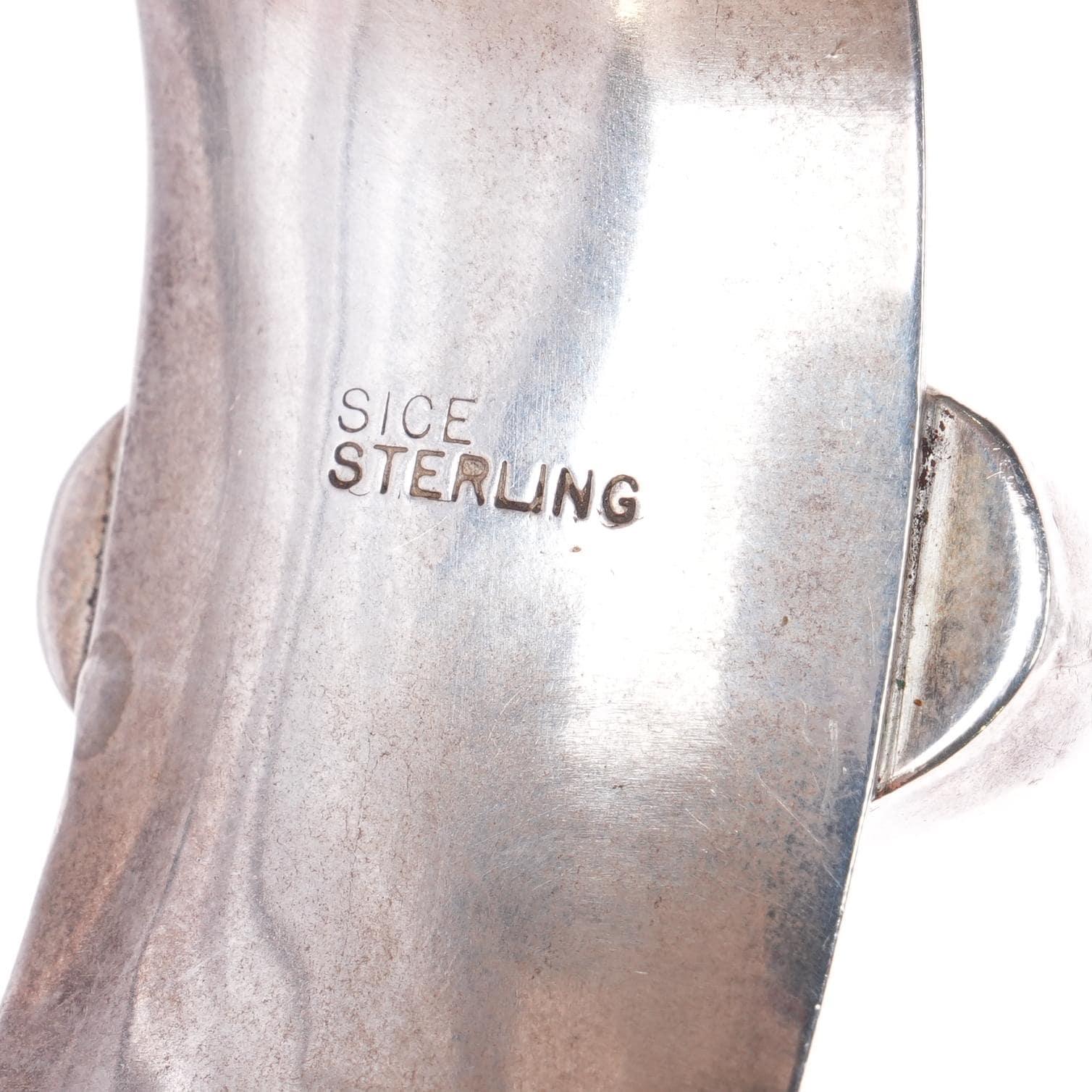 Howard Sice (Hopi - Laguna) Sterling silver waterweb turquoise cuff bracelet. Tested and guaranteed solid sterling silver with sterling mark. Weight and measurements in pictures. Nice bracelet from the last quarter of the 20th century with no issues. Collected, but never worn it seems.