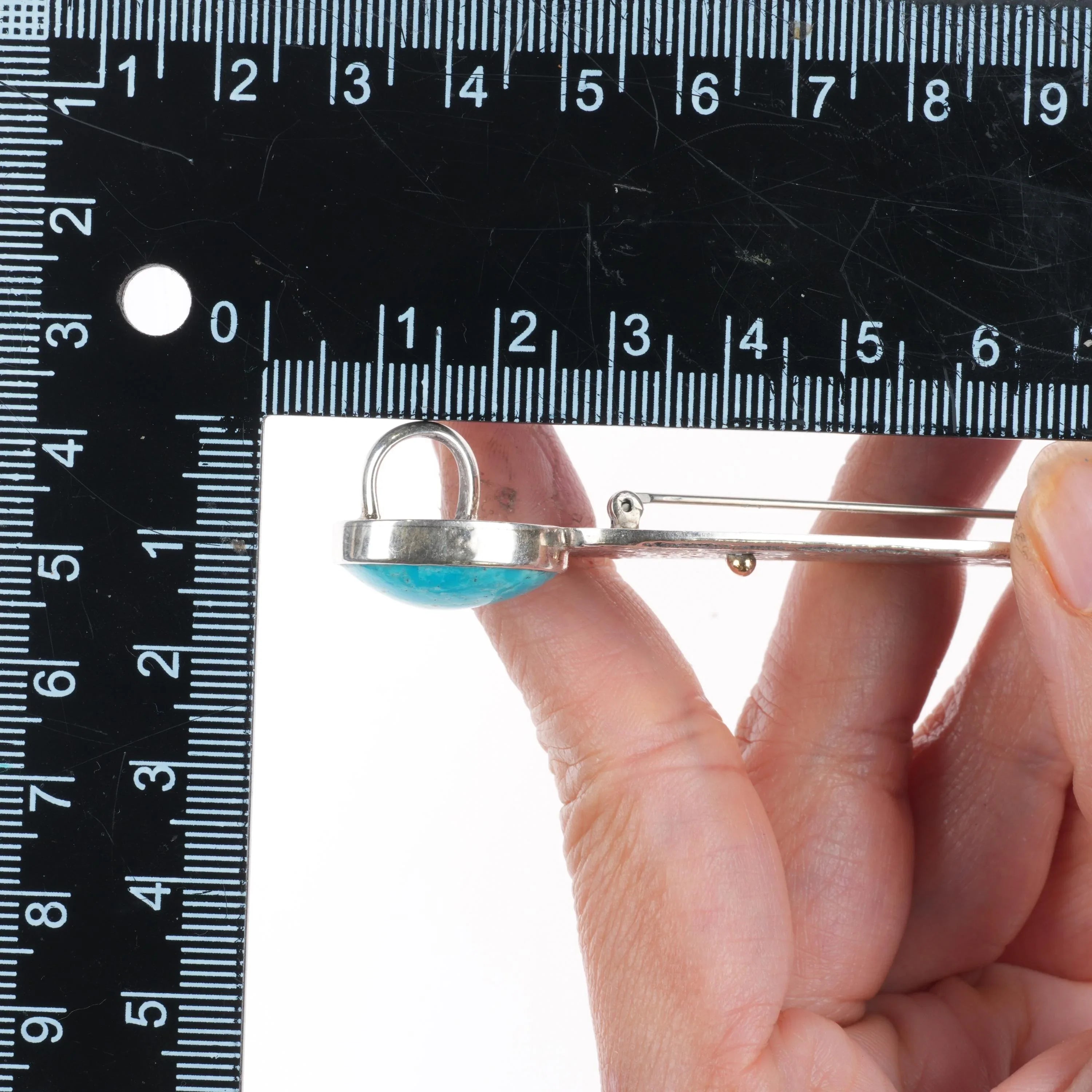 Ira Custer Navajo Tufa Cast sterling silver/14k gold turquoise pendant/pin. Solid sterling silver with solid 14k gold bead accent, marked as shown with weight and measurements in the pictures. No damage or significant wear.